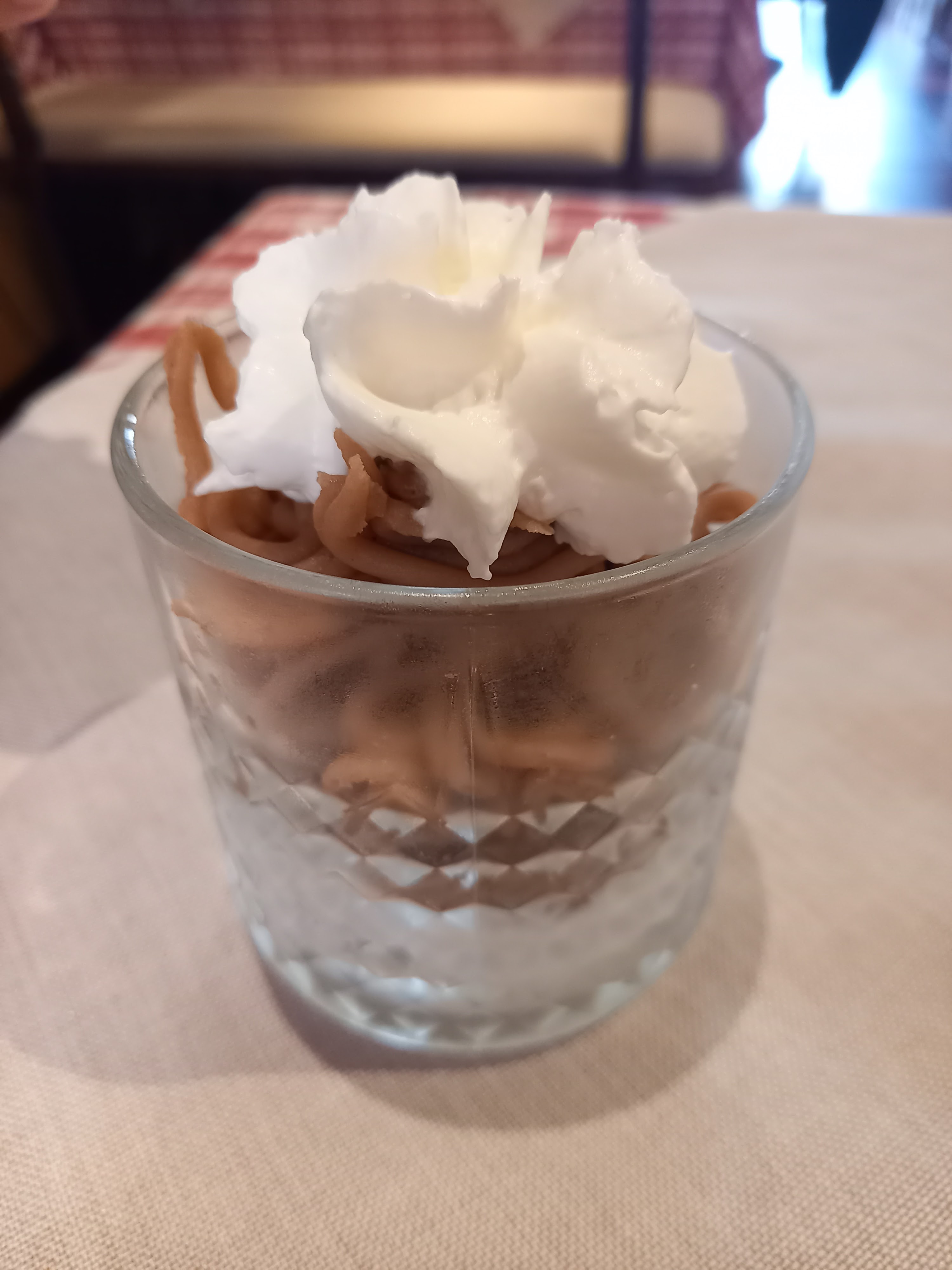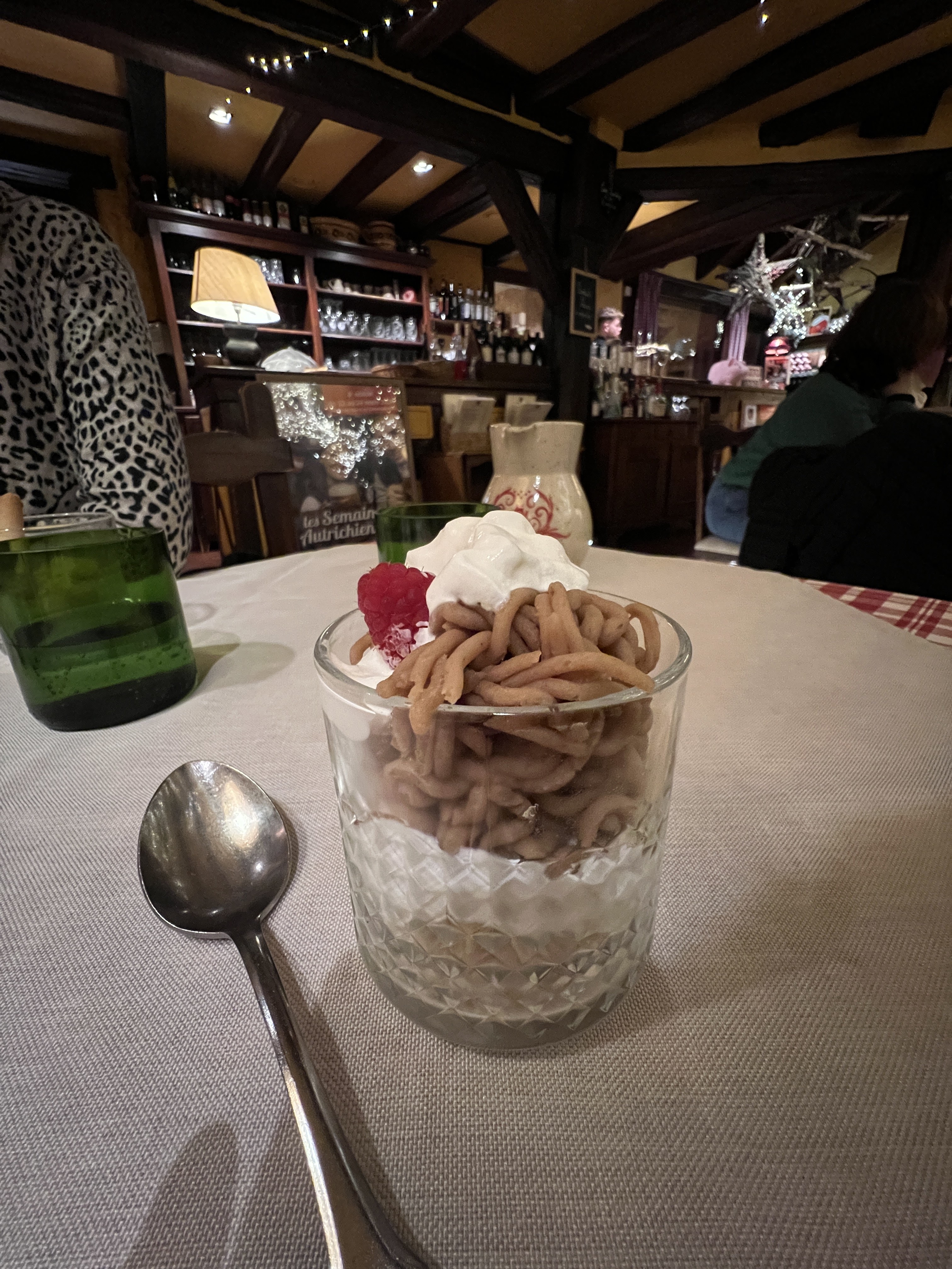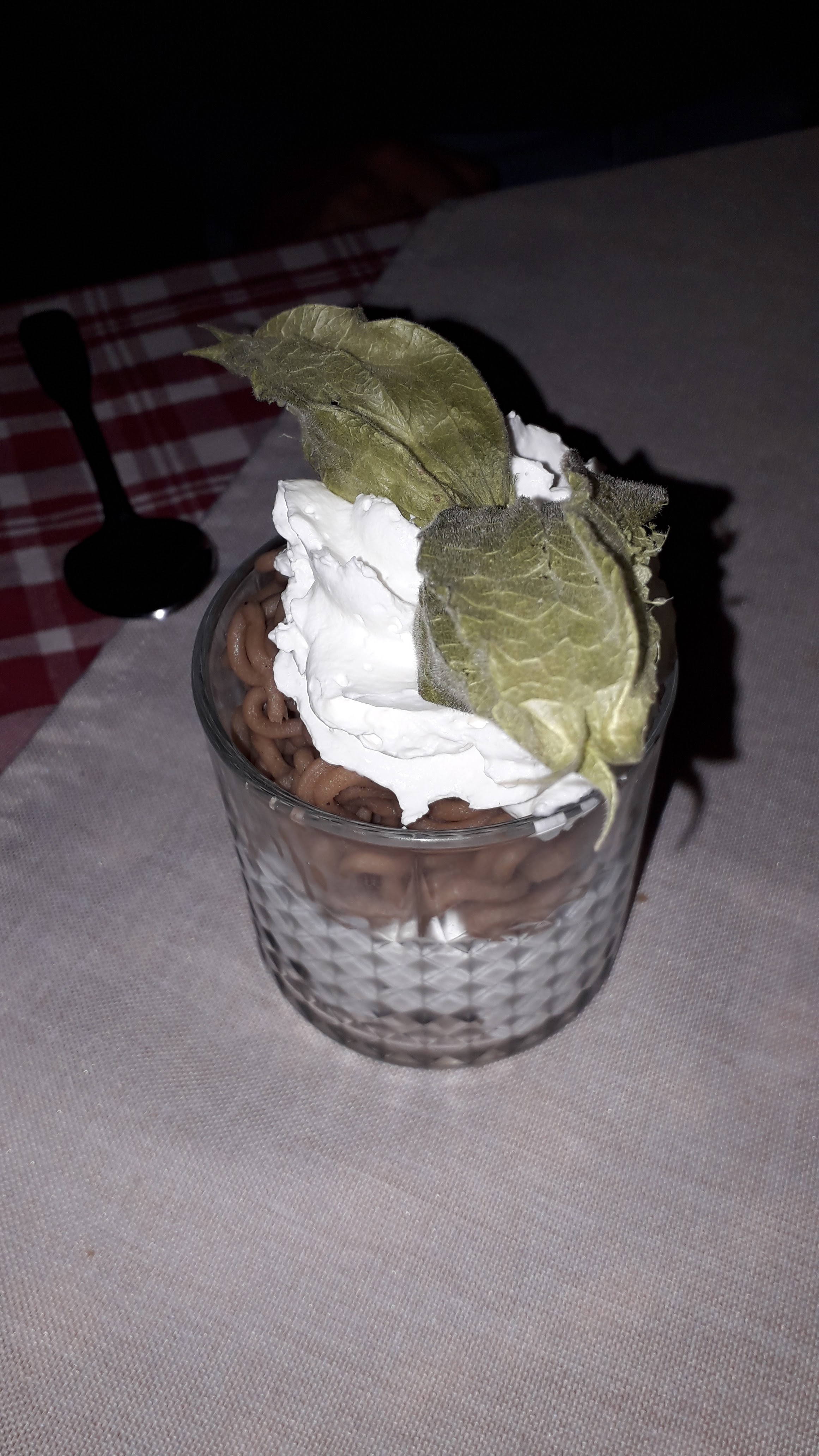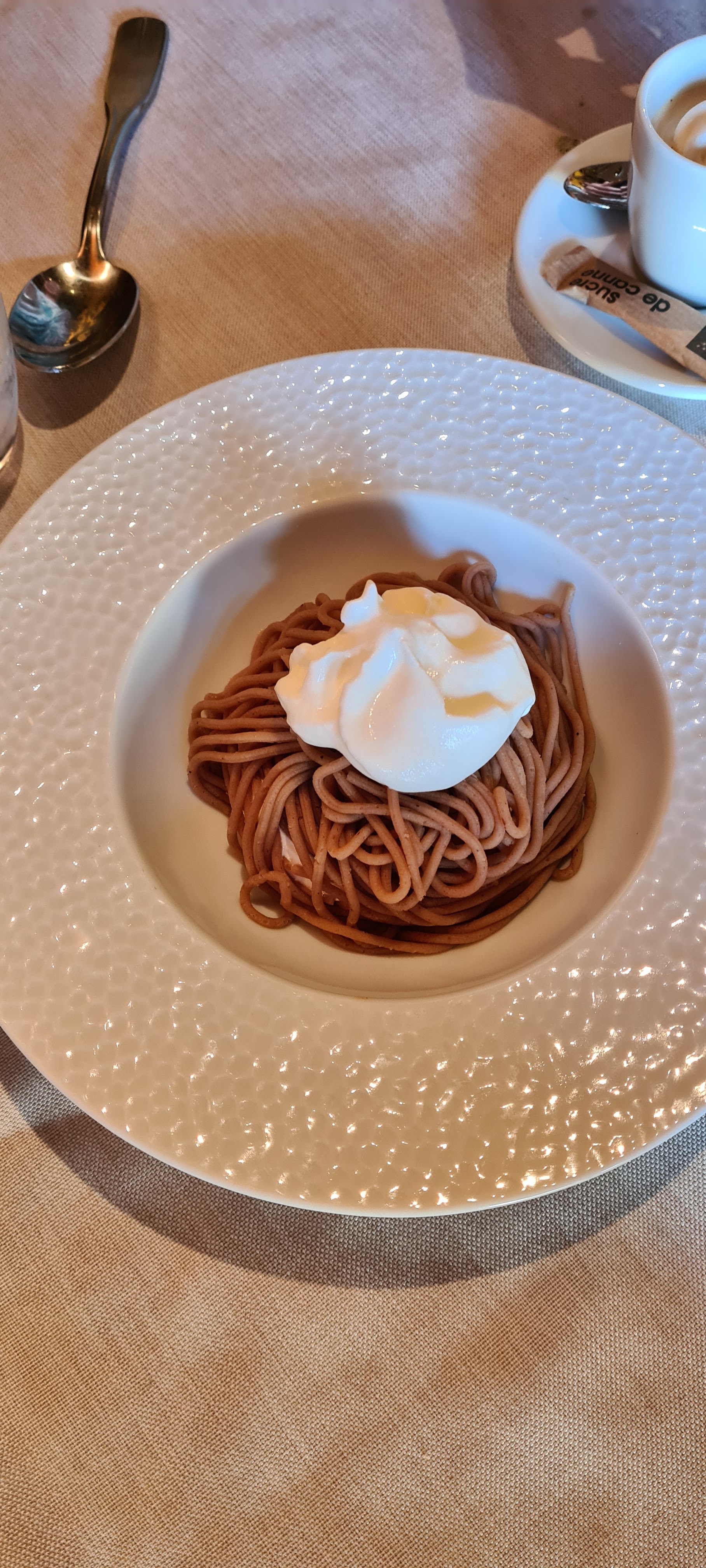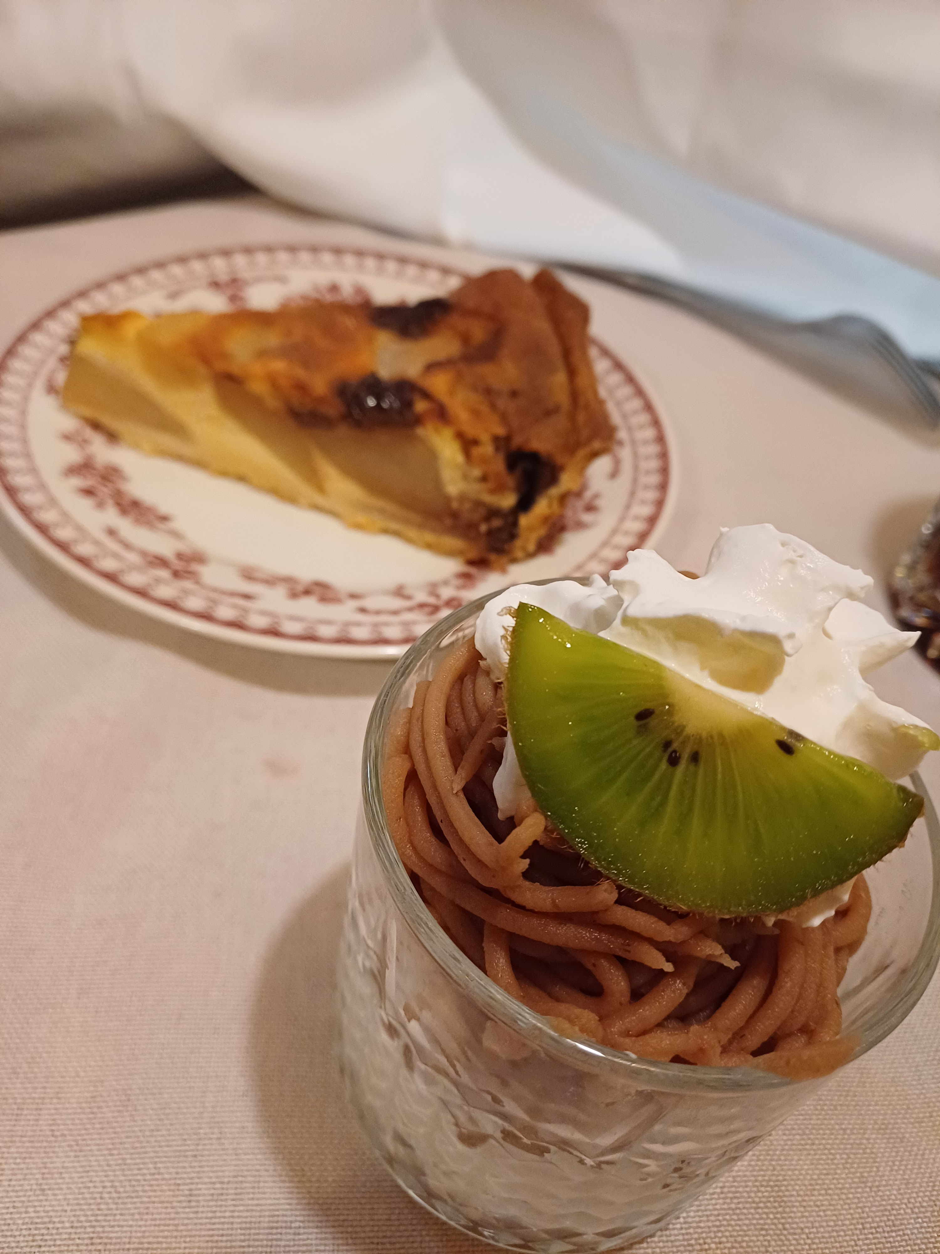 Accueil très agréable, notre repas était bon,assez dessus par la torche aux marrons,j'adore ce dessert,il était collant,épais, le contraire d'une torche aux marrons ,et la musique un peu forte