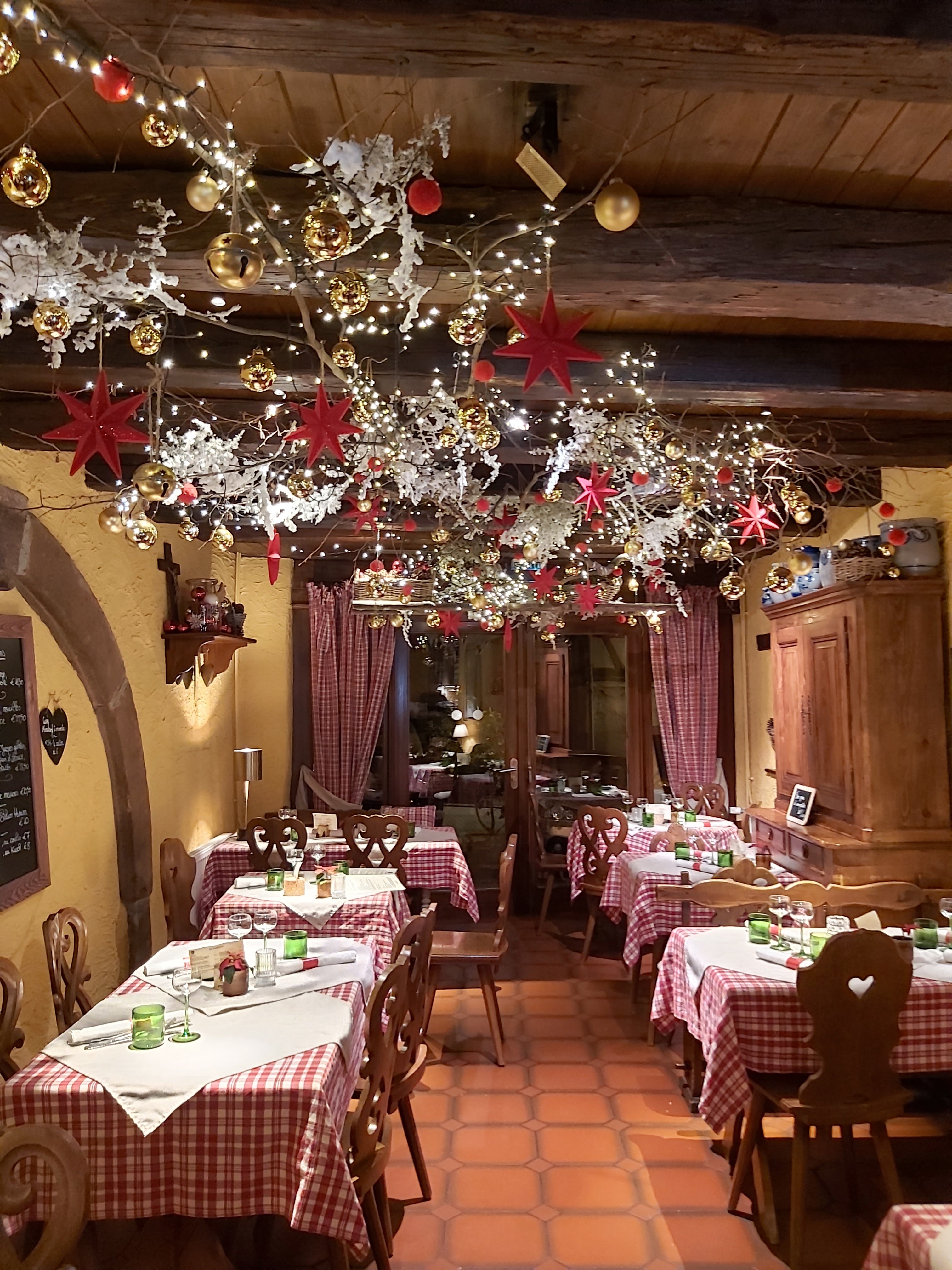 Très bel établissement où nous avons très bien dîné et où nous nous sentions très bien jusqu’au moment où …. Où en plein dessert on nous demande de régler notre note! Je comprends que cette période de marchés de Noël est très chargée et que ce restaurant est très sollicité mais si nous avions su qu’il fallait que l’on mange en un temps donné et si la façon de nous amener la note et de débarquer avec le TPE avaient été réalisés de manière plus diplomate et avec plus de tact la pilule serait mieux passée. J’ai vu sur d’autre commentaires que nous aurions peut être pu arriver plus tôt pour prendre l aperitif, nous n’en avons pas été informés et pourtant nous avons eu des échanges avec le restaurant en amont afin de commander des plats. Une expérience en demie teinte sur le service et la fin du repas mais nous retenons le bon moment que nous avons passé avec de bons plats alsaciens et une jolie décoration.