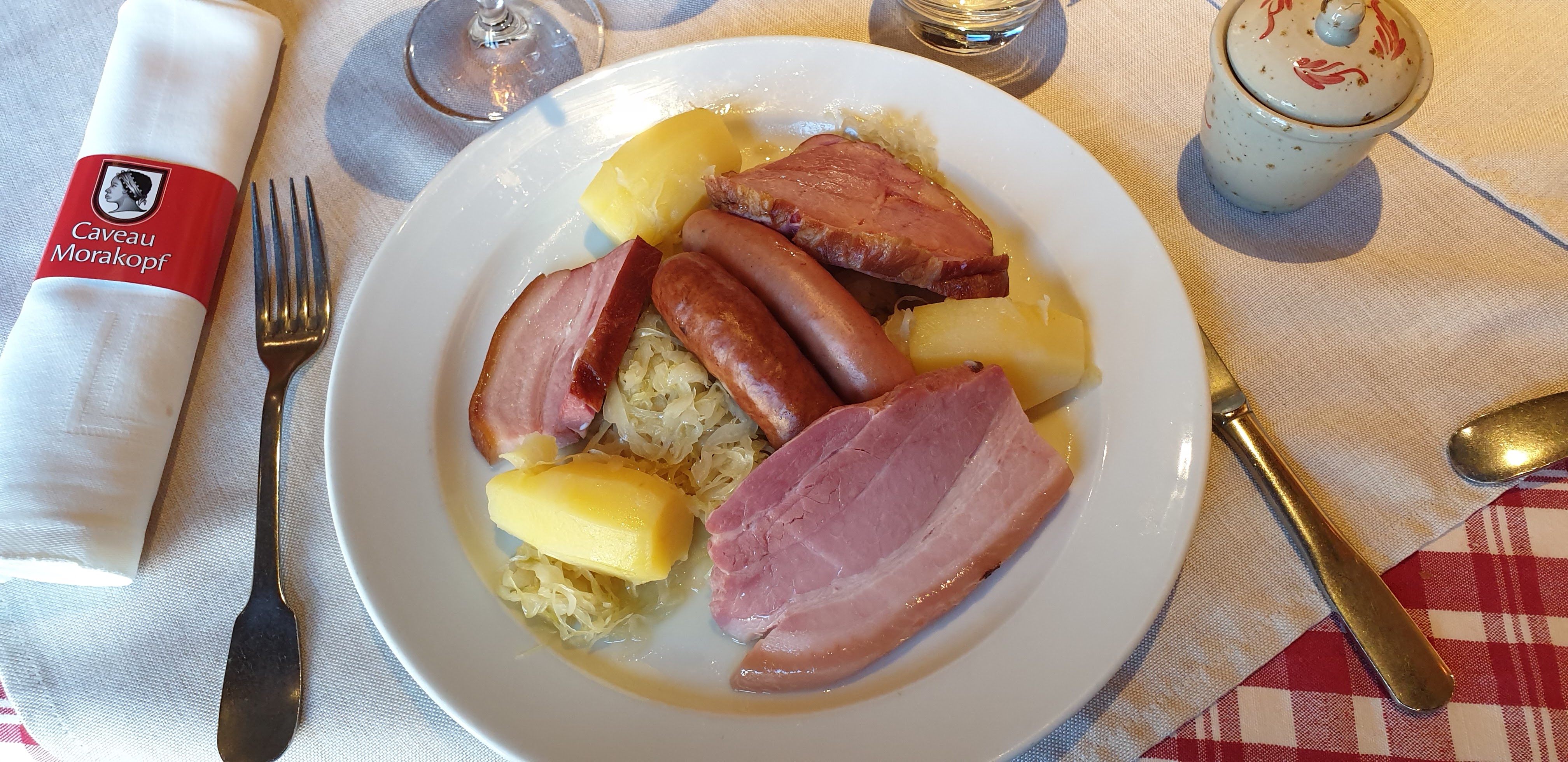 Nous avons fait des centaines de km pour venir goûter la cuisine du Caveau Morakopf pour notre anniversaire. Nous n’avons pas été déçus! Cuisine à la hauteur de nos attentes, choucroute excellente, knack claquantes, légumes frais, condiments de qualité, et mention spéciale aux serveuses qui sont vraiment énergiques et aux petits soins. Petit bémol pour l’attribution de notre table en fond et coin de salle, exiguë et peu chaleureuse dos à la salle, avec un banc bancal. Sinon la déco est aussi vraiment superbe! Nous recommandons!