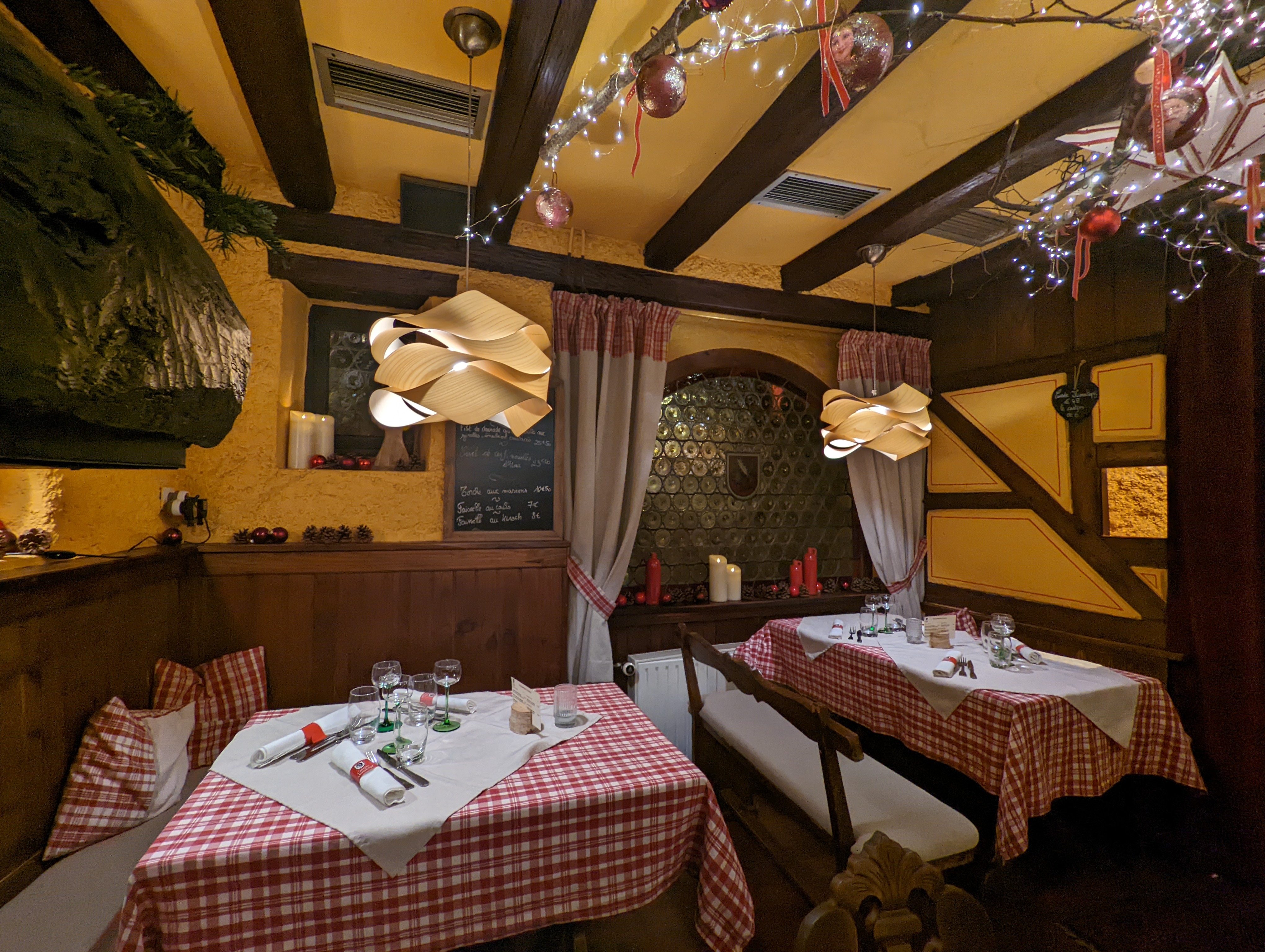 Magnifique petit caveau traditionnel.... Le décor est superbe, les tables sont dressées avec soin, il y a des petits coussins super confortables sur les bancs des tables... L'éclairage tamisé rend le lieu hyper charmant... La cuisine traditionnelle alsacienne est excellente et les plats sont très copieux... Le personnel est compétent, souriant et très agréable...