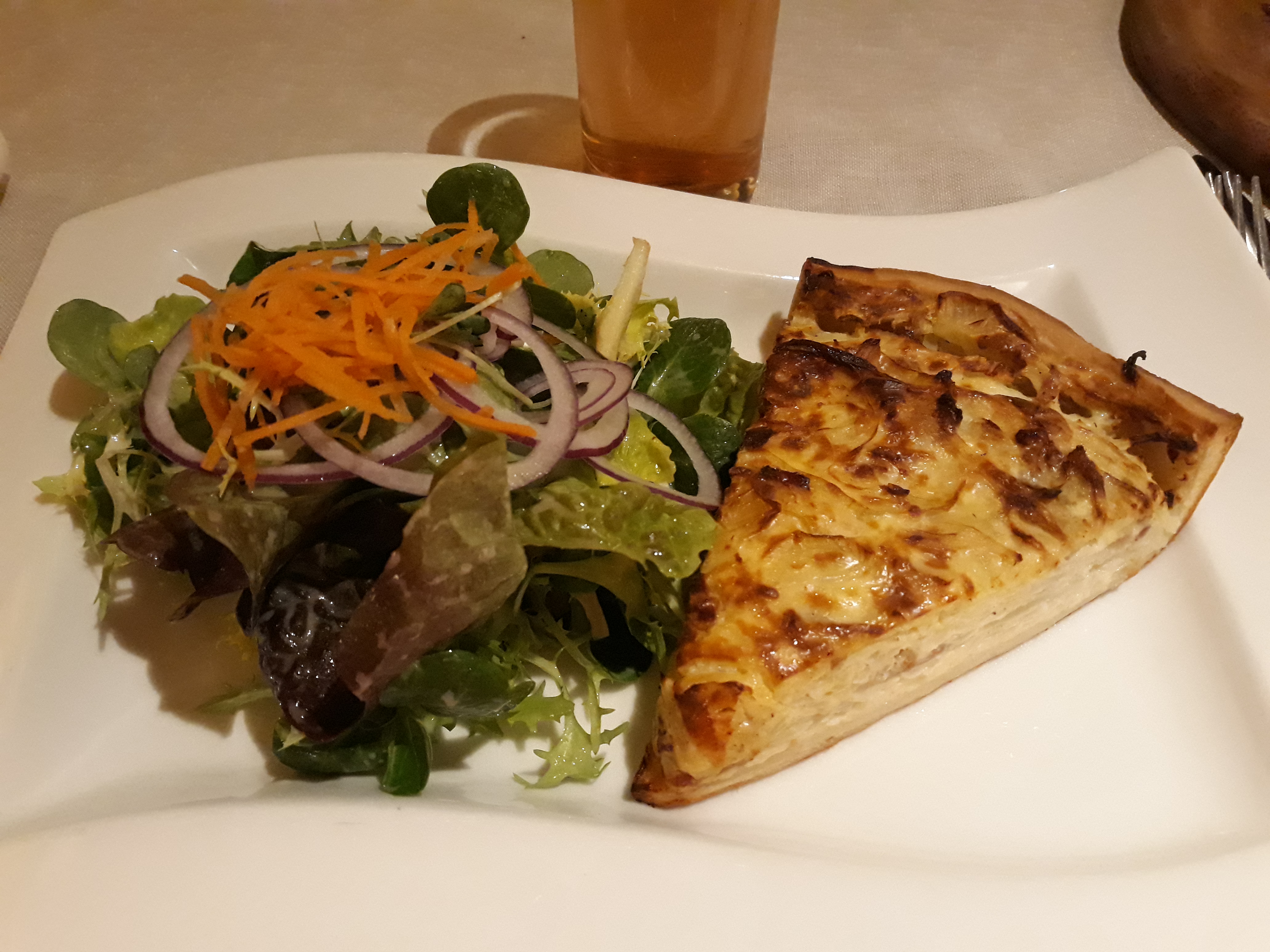 Restaurant très sympathique, ambiance familiale dans un village très mignon. Nous avions demandé la tarte à l'oignon a partager en entrée et ils nous l'ont présenté dans deux assiettes, super sympa! Bref le tout a fait que nous avons passé un bon moment, je recommande.