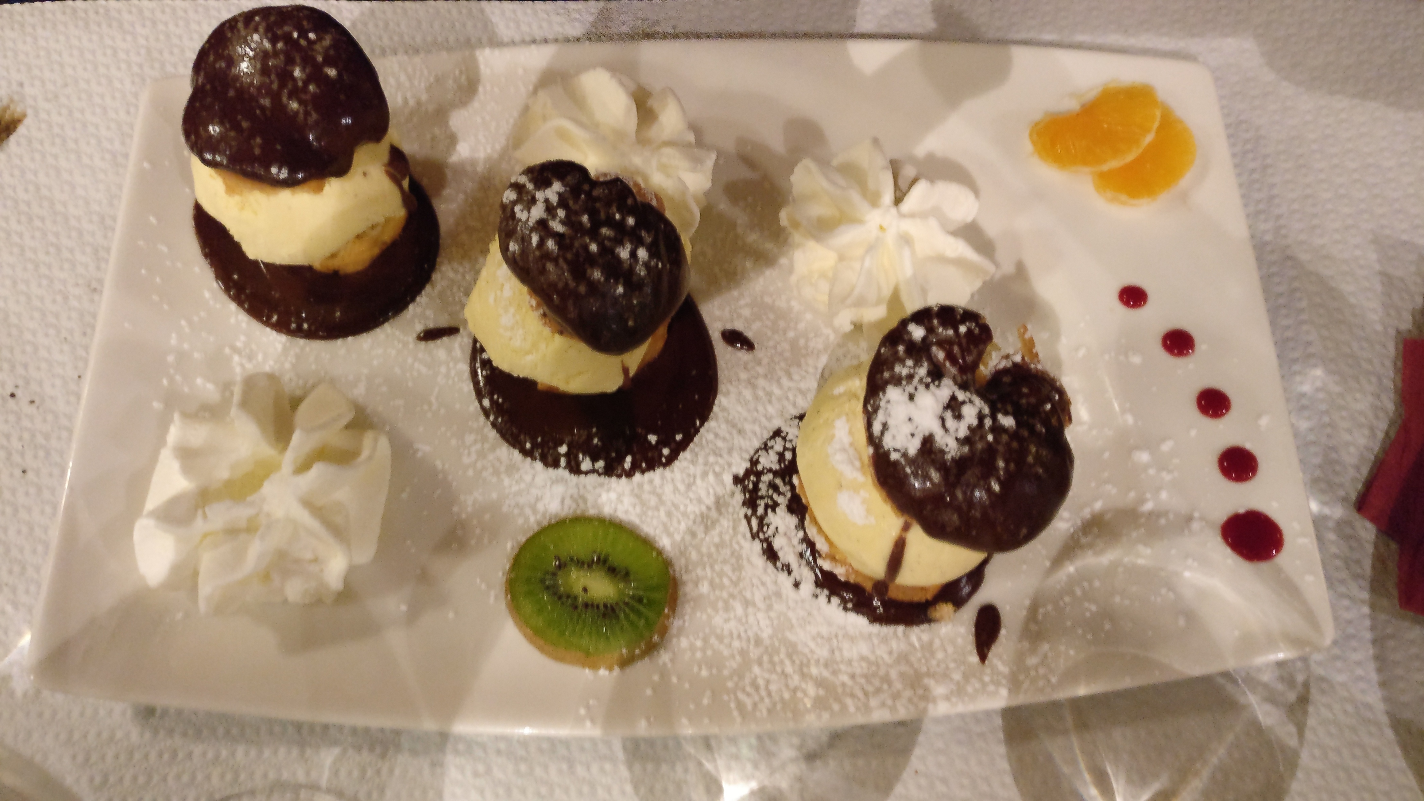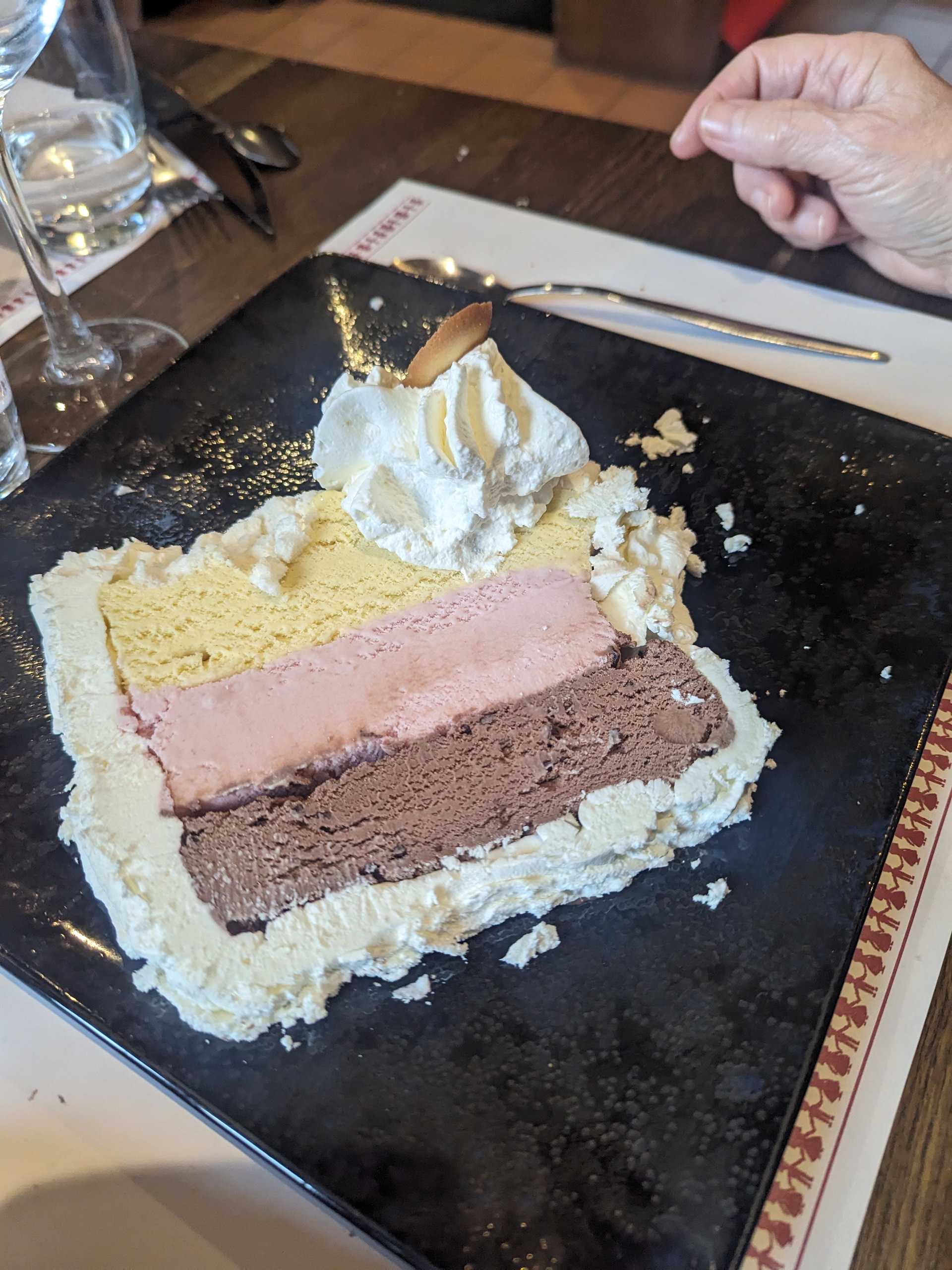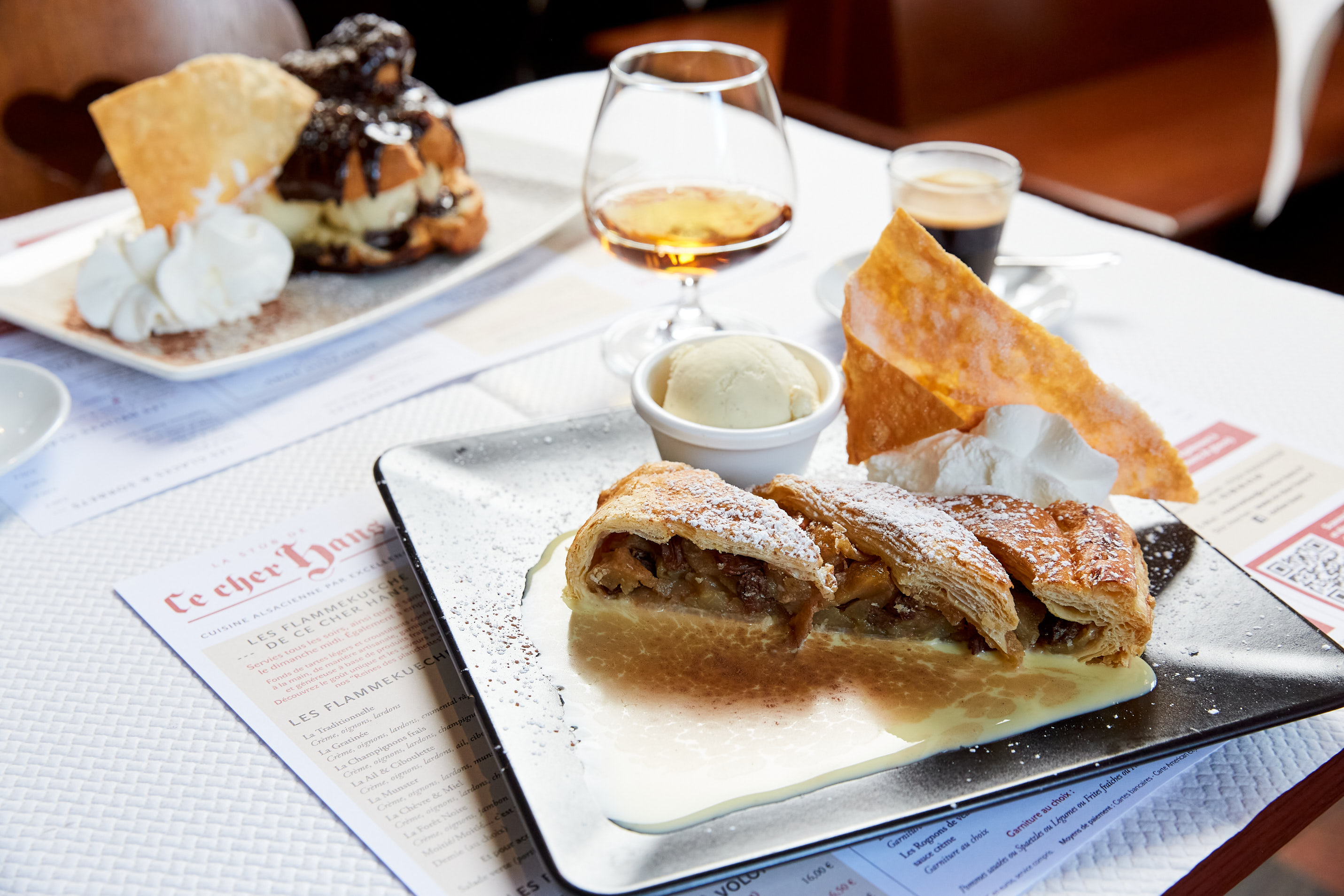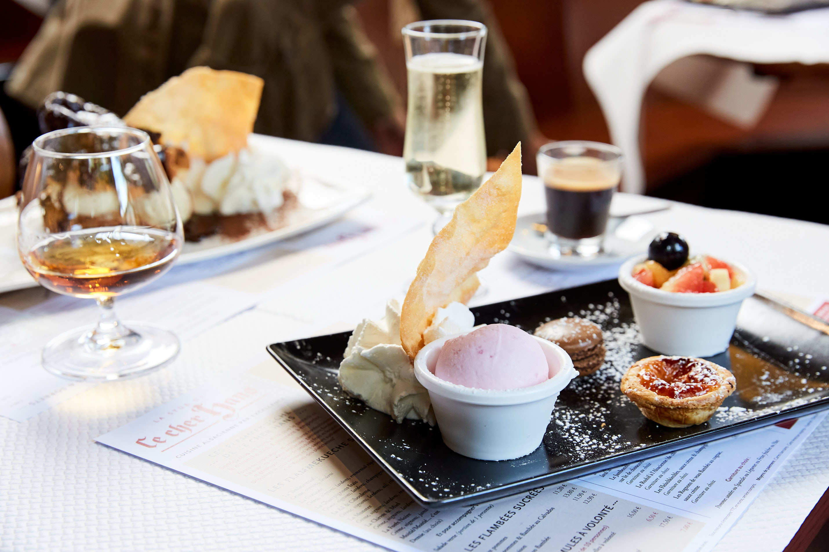 Bon accueil,cadre agréable, service sympa, mais déçu cette fois ci,la tarte flambée était très coulante,fromage de la gratinée jaunâtre,la dame blanche avec chocolat entre la glace et la chantilly,donc figé,le café gourmand très moyen,une boule de glace,du yaourt dans une coupelle,un macaron,deux petits entremets,et une portion de chantilly. Rien à voir avec les photos de présentation. Nouvelle direction? nouveau chef?en tout cas il y a eu du changement.