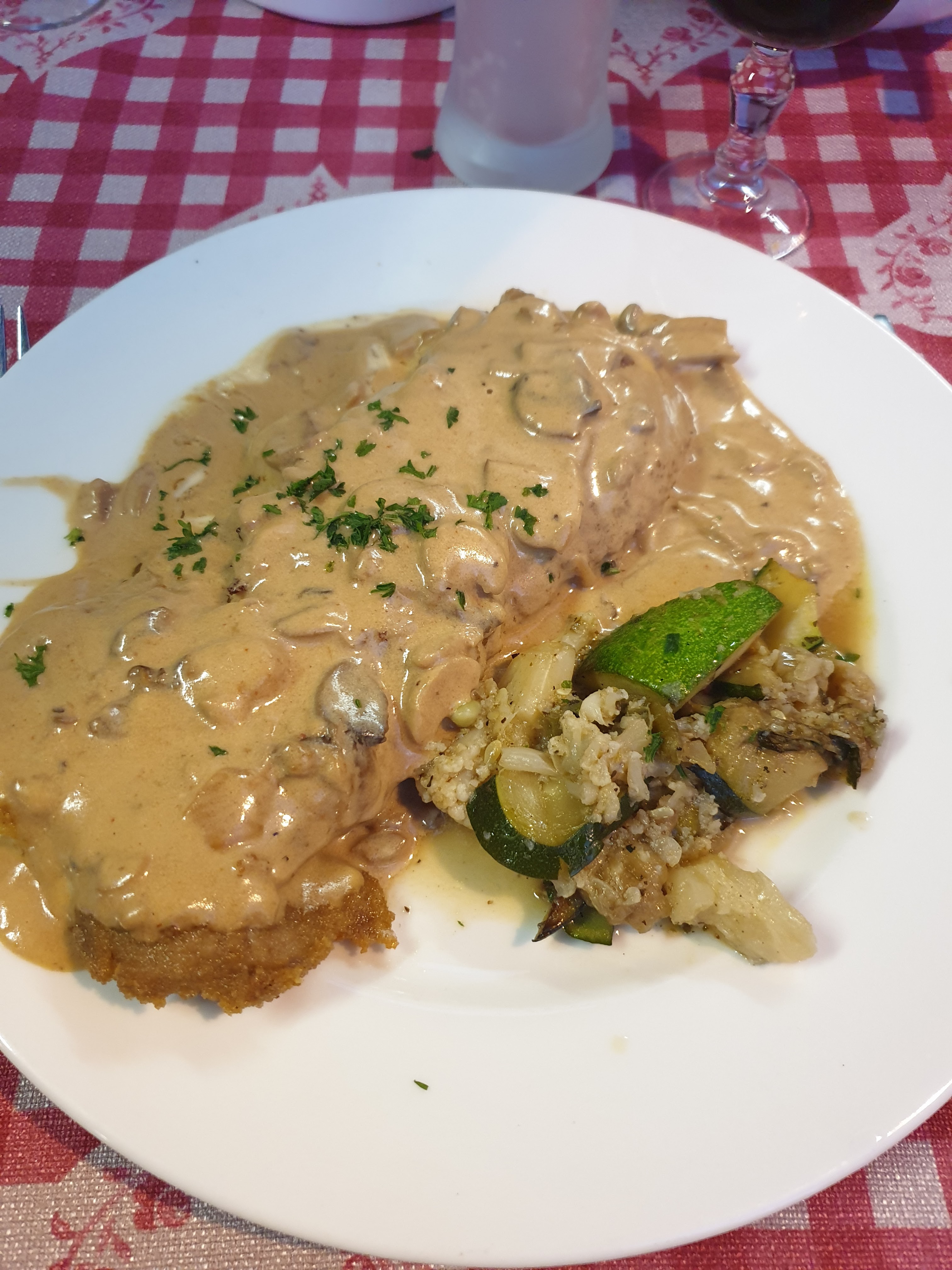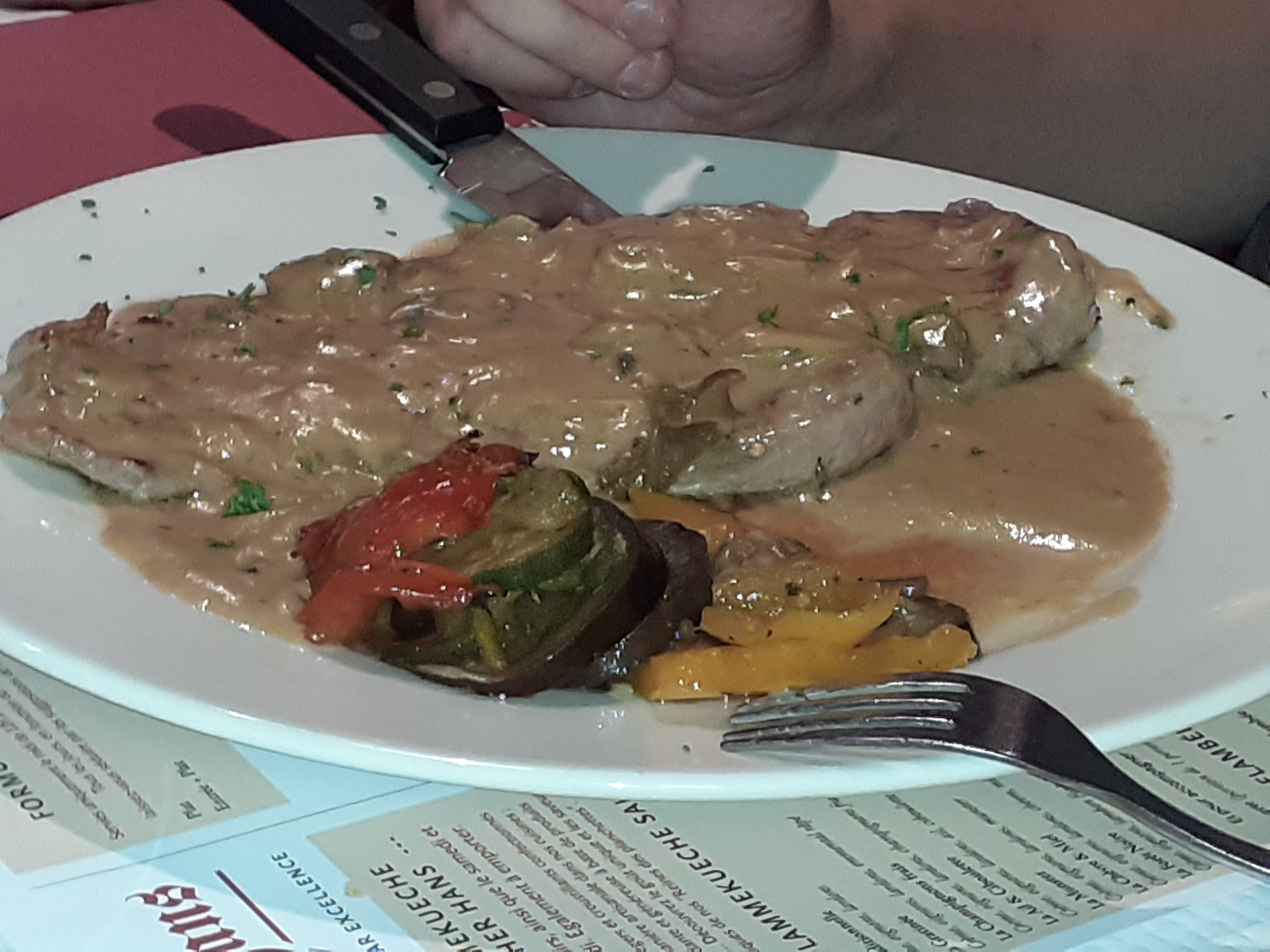 Accueil et service sympathiques. Repas bon. Plat du jour cordon bleu de porc avec ou sans sauce aux champignons et frites : bon. Service du plat du jour rapide Rapport qualité prix excellent. A conseiller.