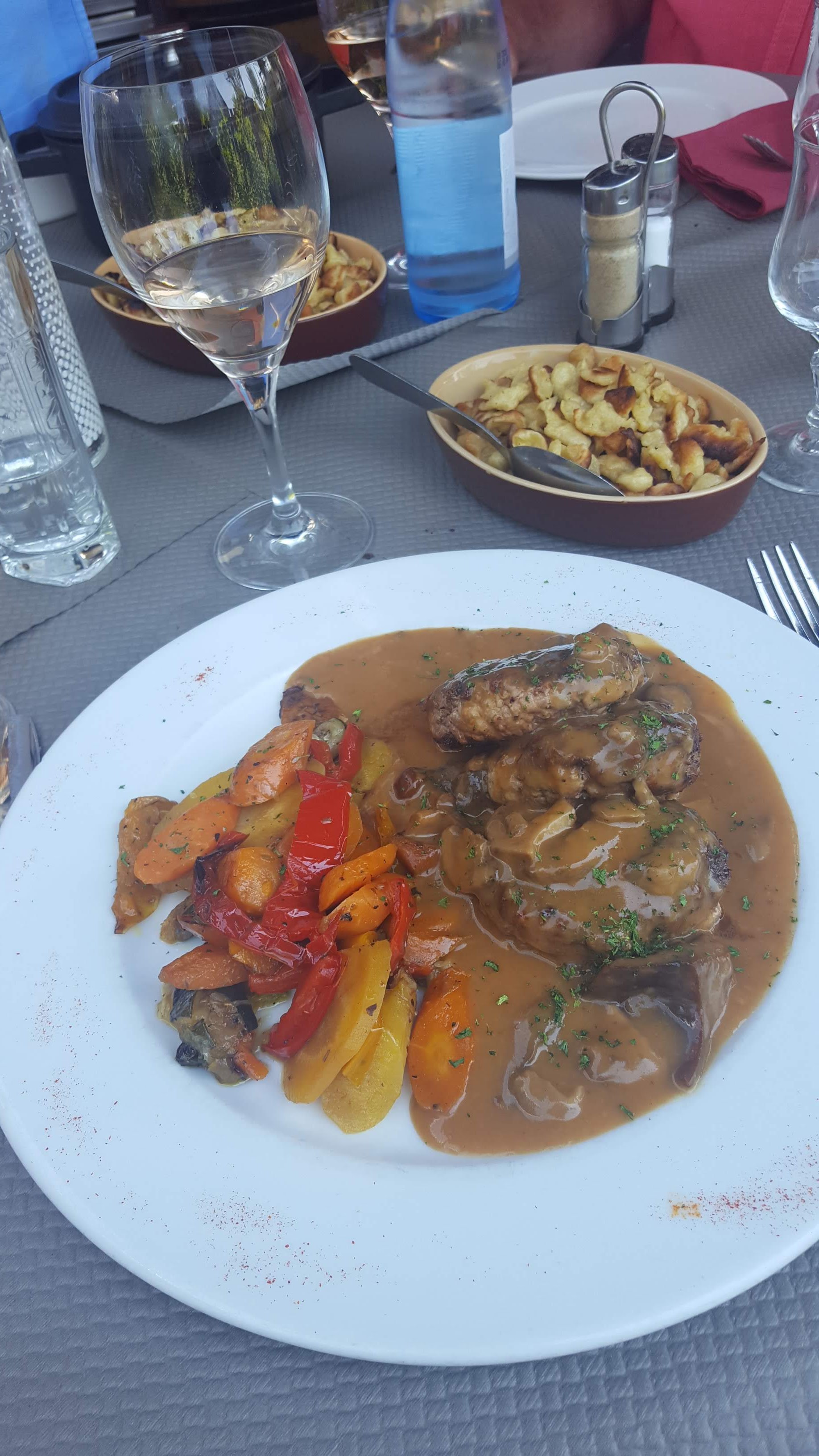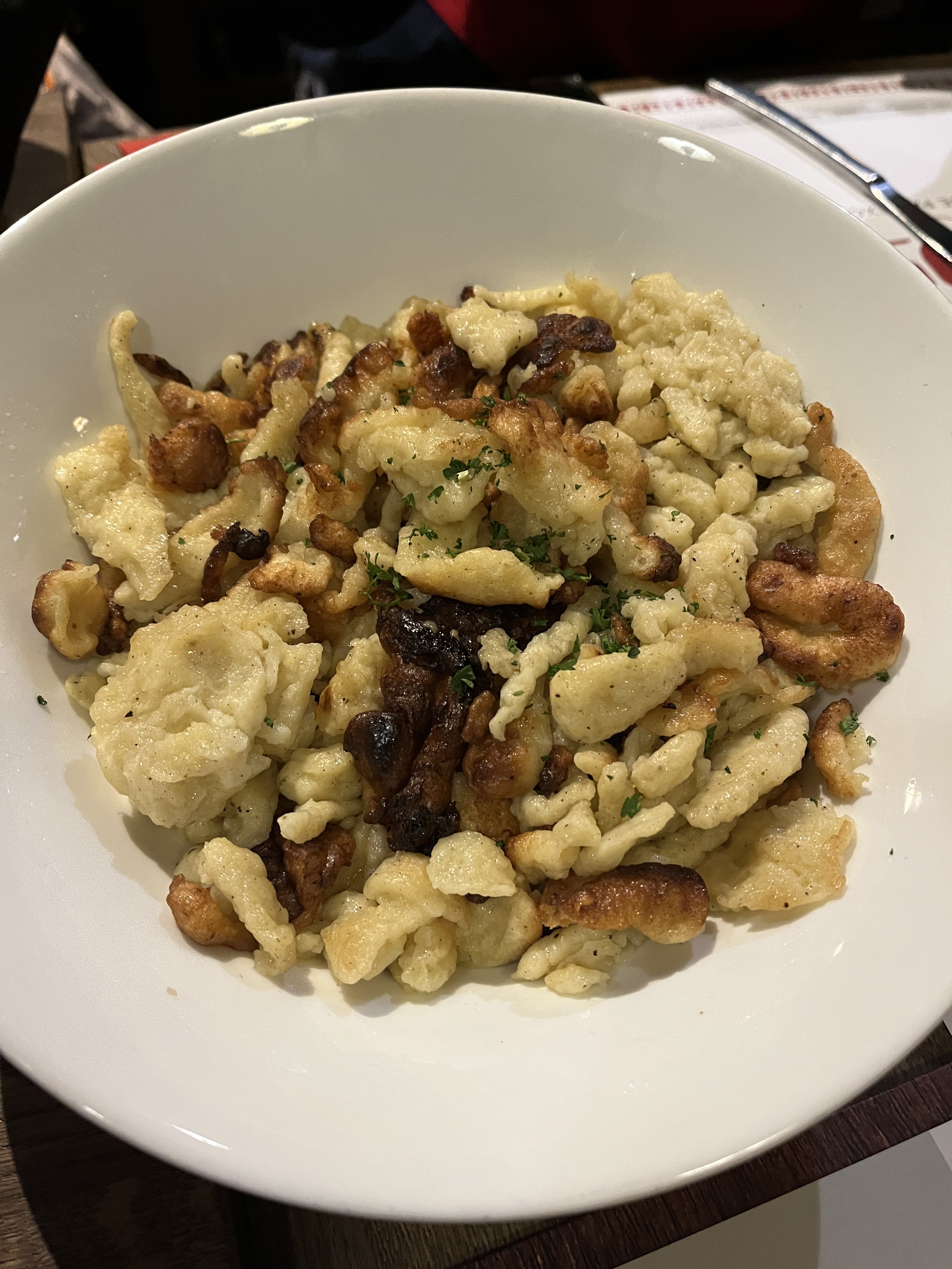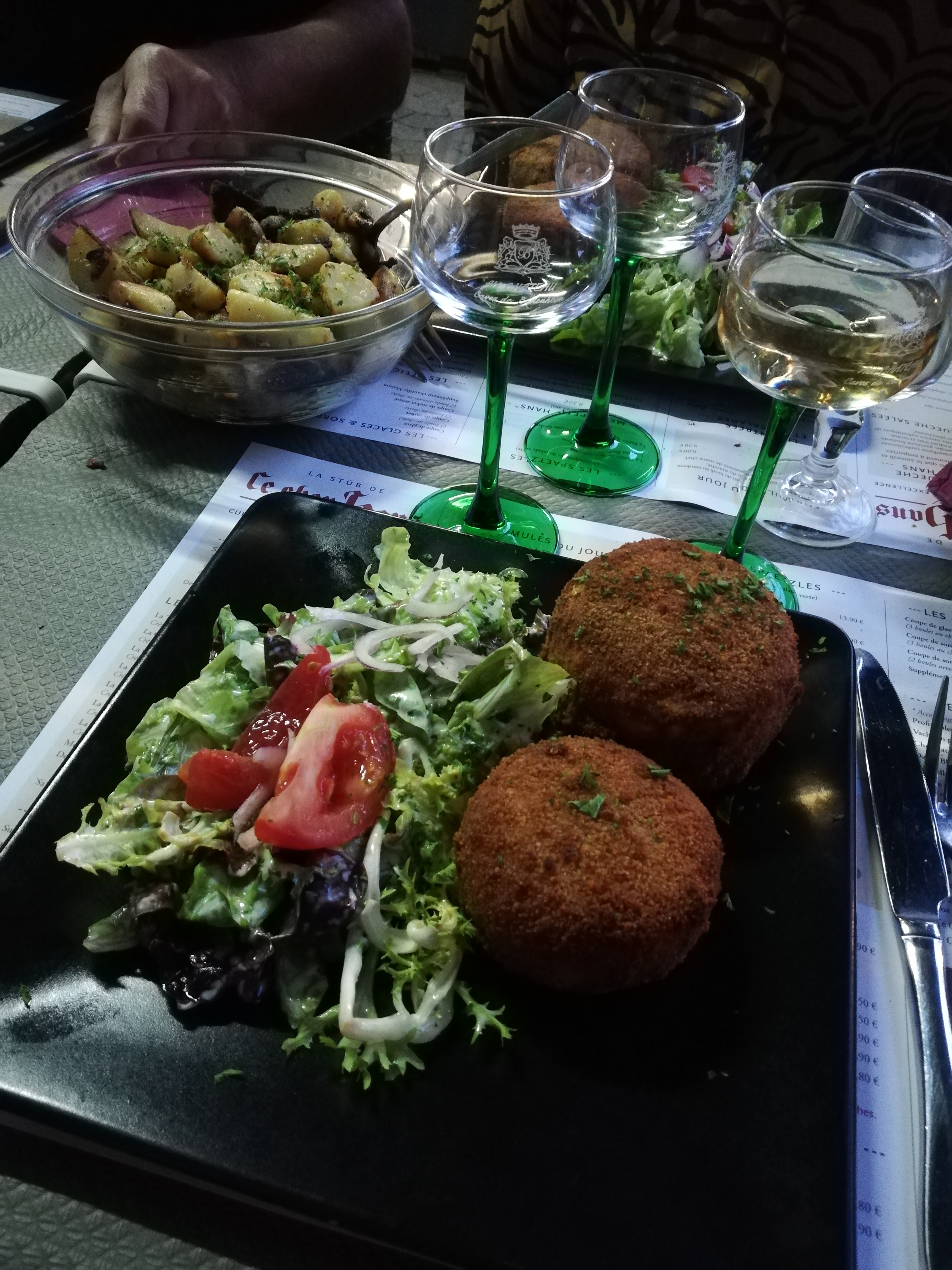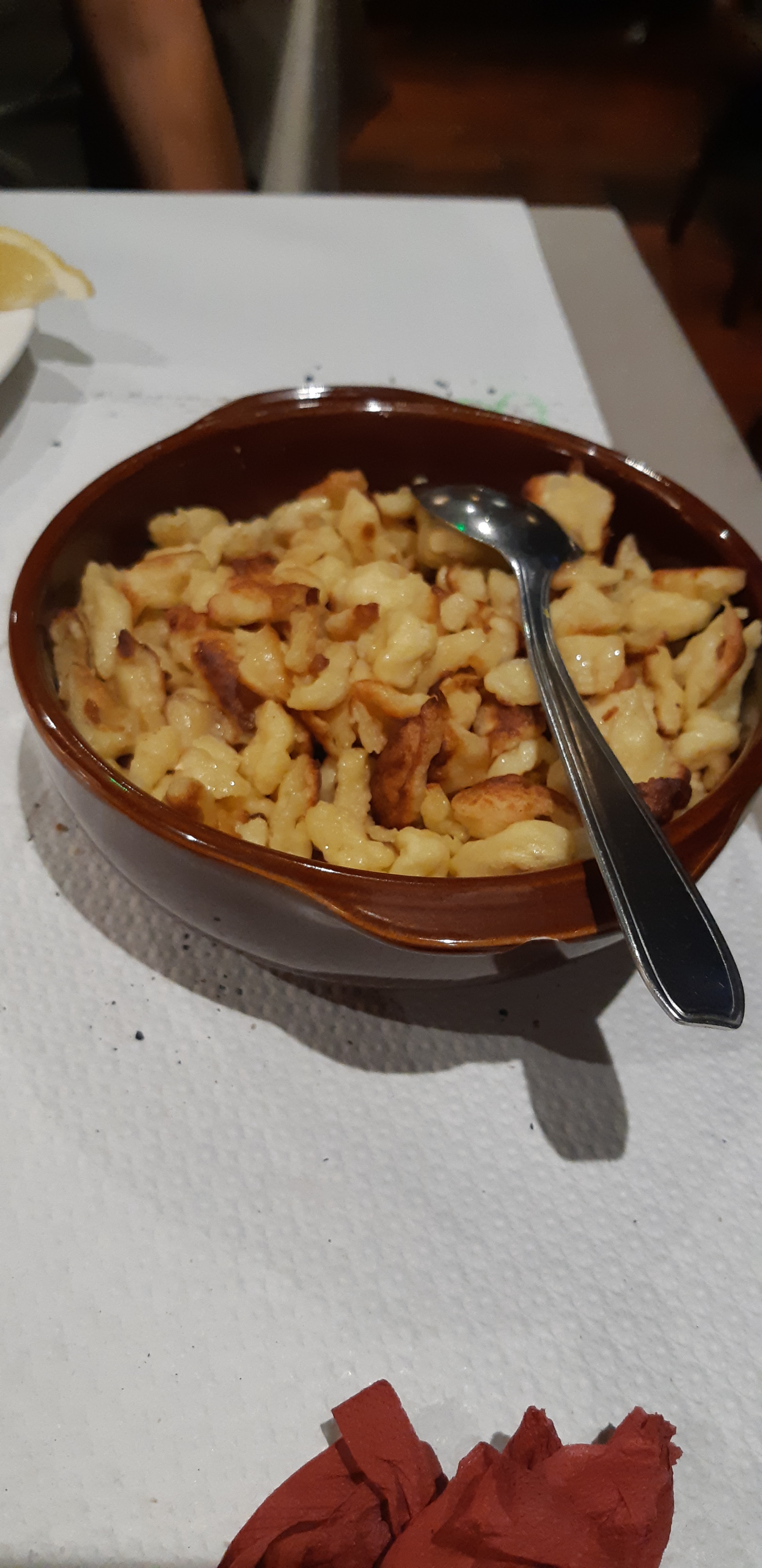Je suis venu entre midi et deux avec des collègues de travail. J'ai pris l'entrée du jour qui était un croque monsieur avec une petite salade qui était bonne. En plat j'ai pris des spaetzles au munster qui était très bon et bourratif comme on aime. En dessert j'ai pris une tarte rhubarbe meringuée qui était bonne. Franchement j'ai bien aimé le restaurant et en plus niveau qualité prix on s'y retrouve je recommande !