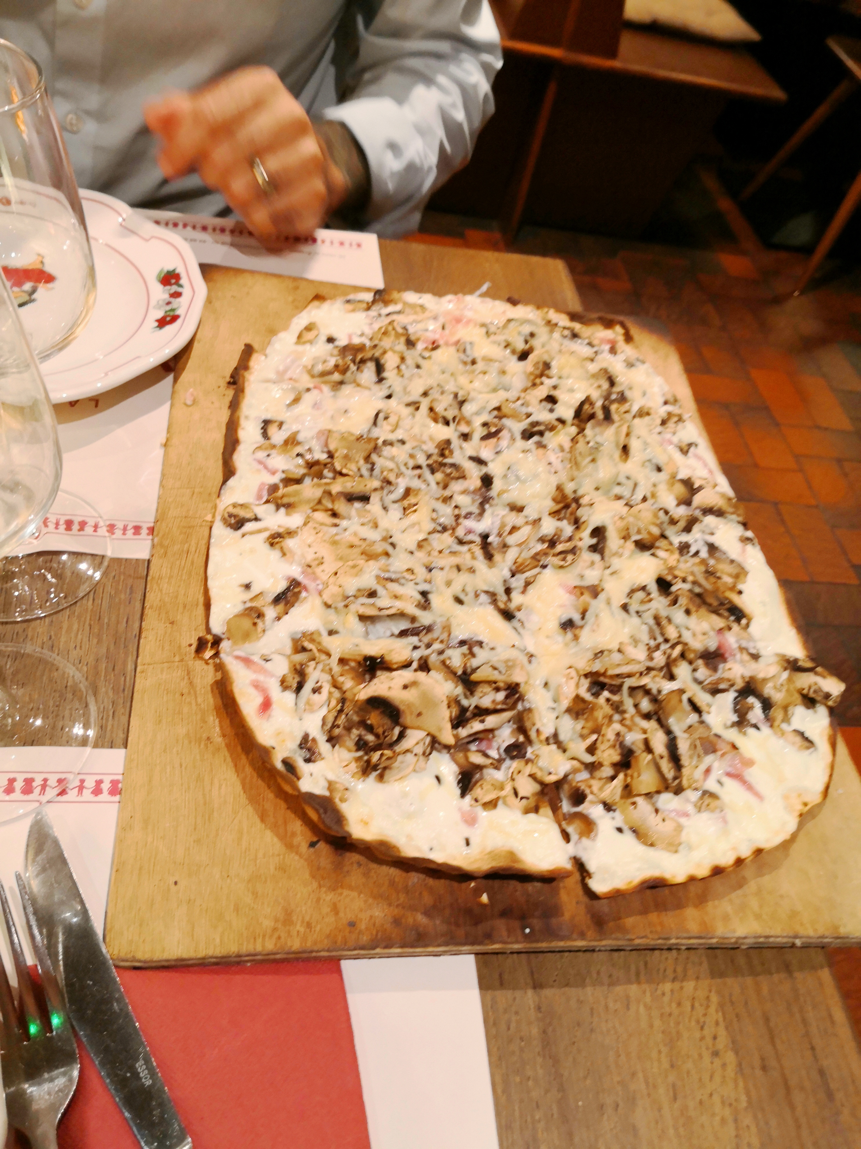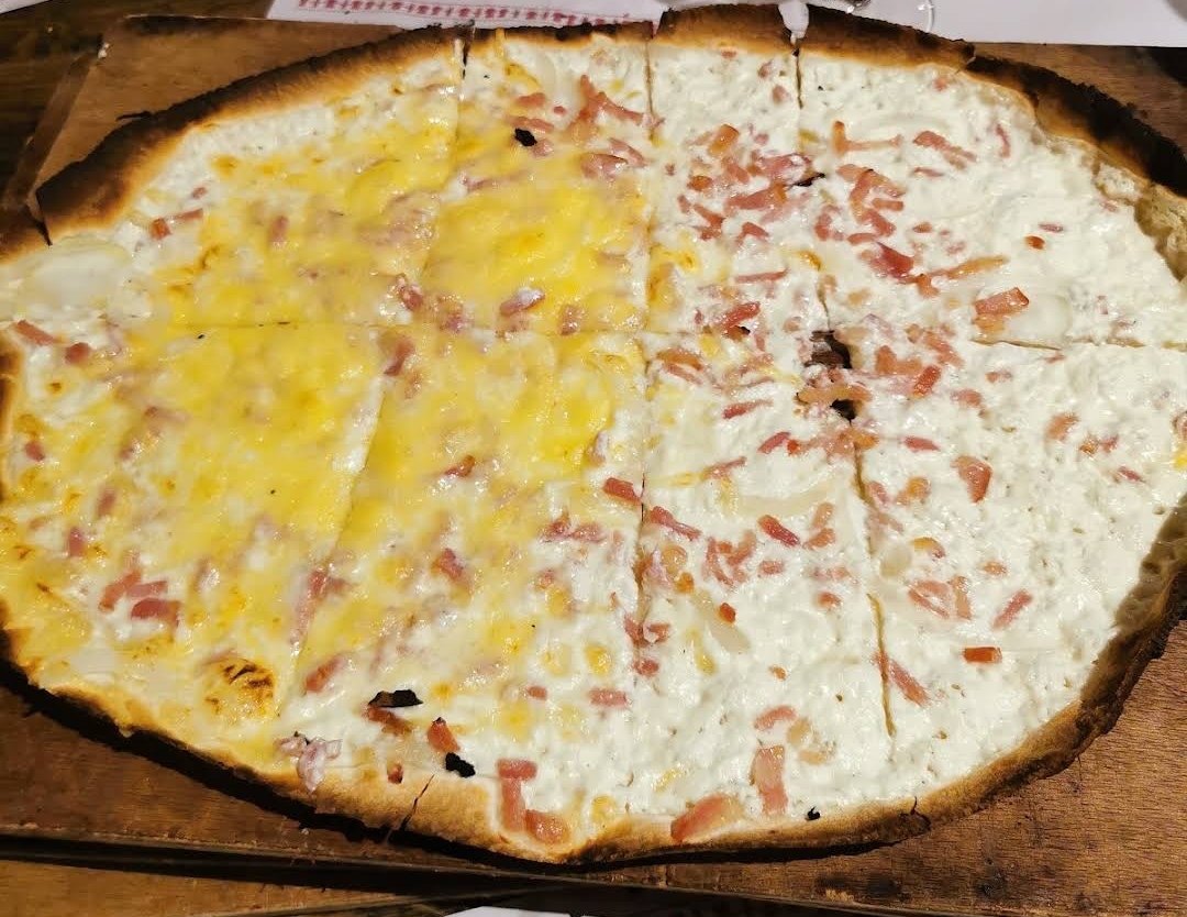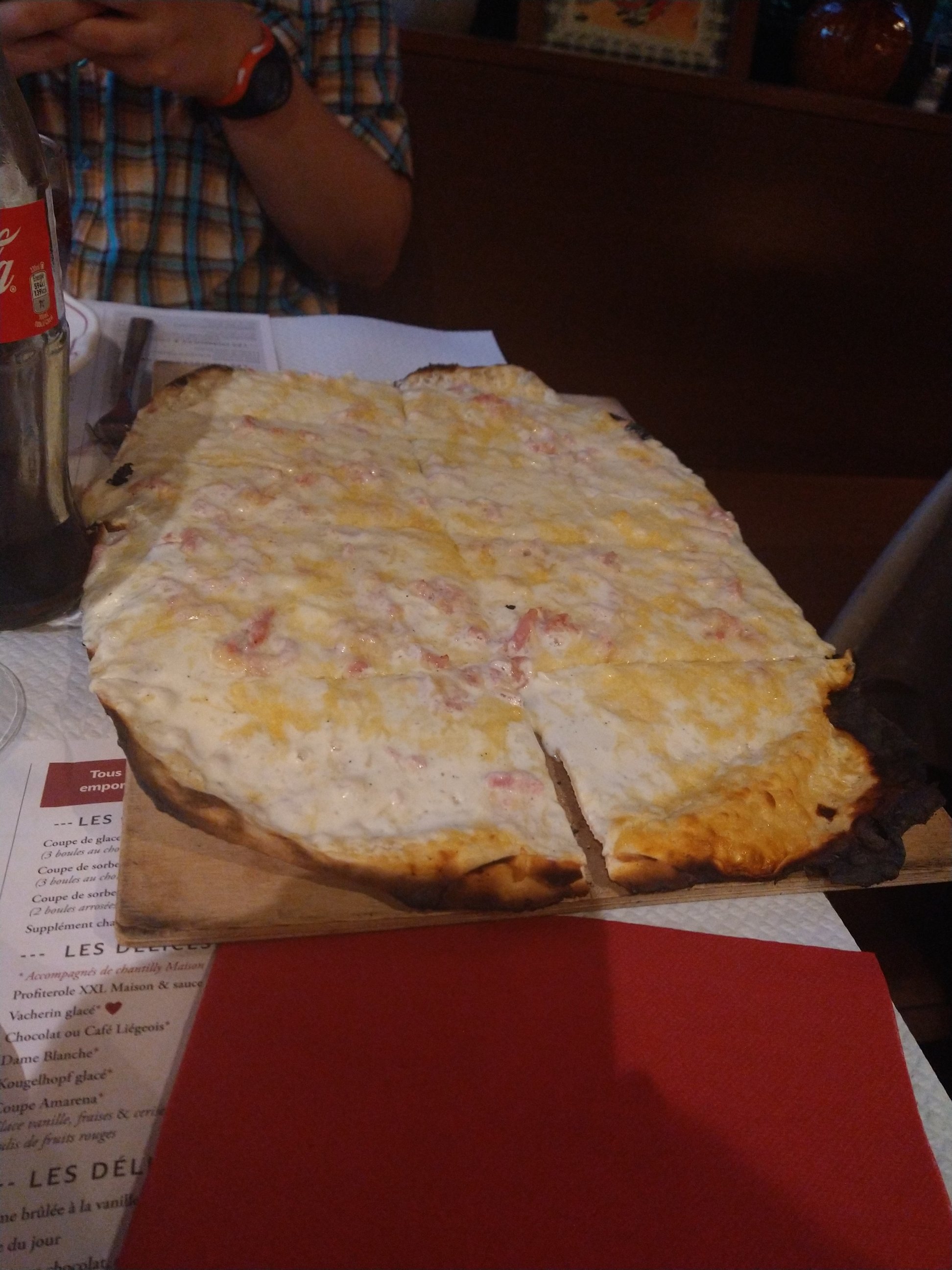 Tartes flambées détrampées avec la crème qui tombe. Pas très digne d'un restaurant traditionnel alsacien.