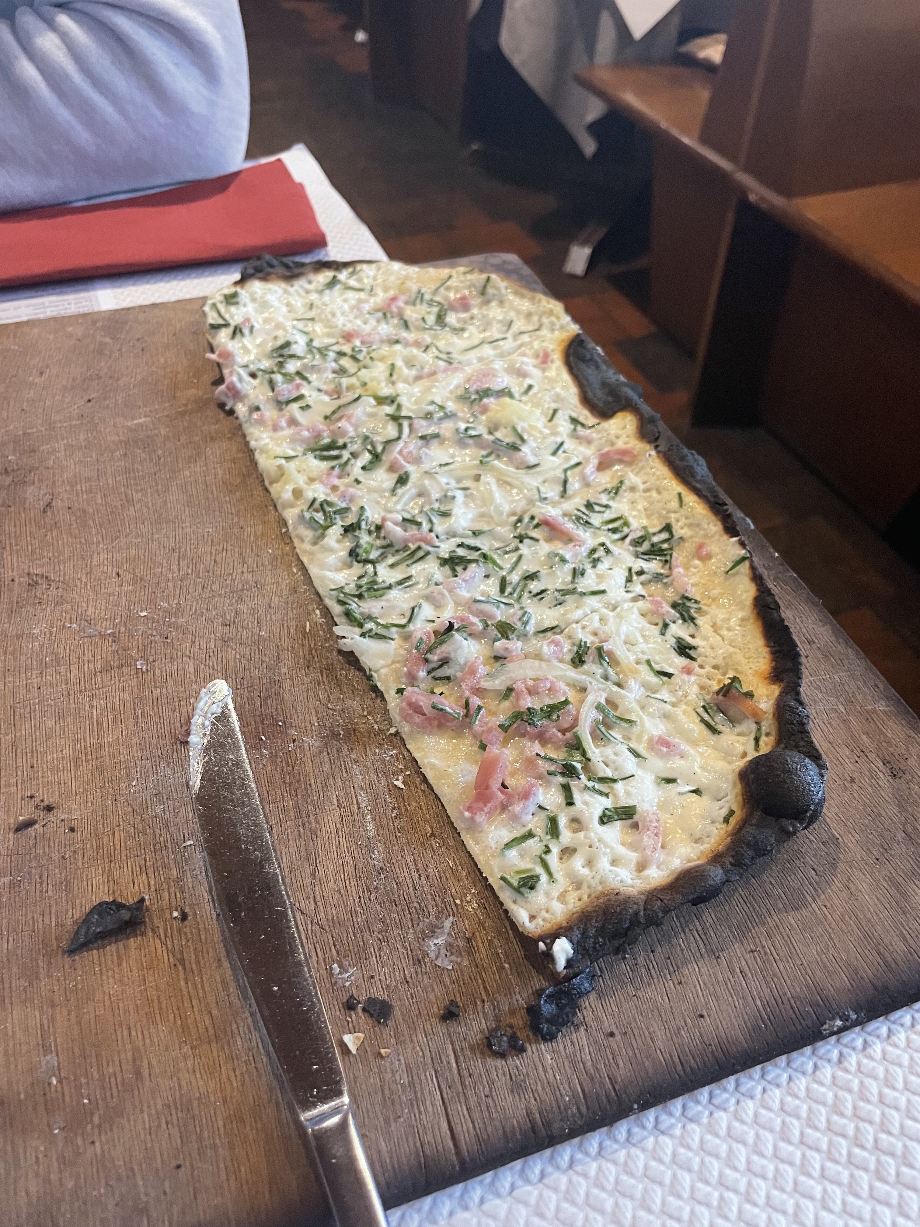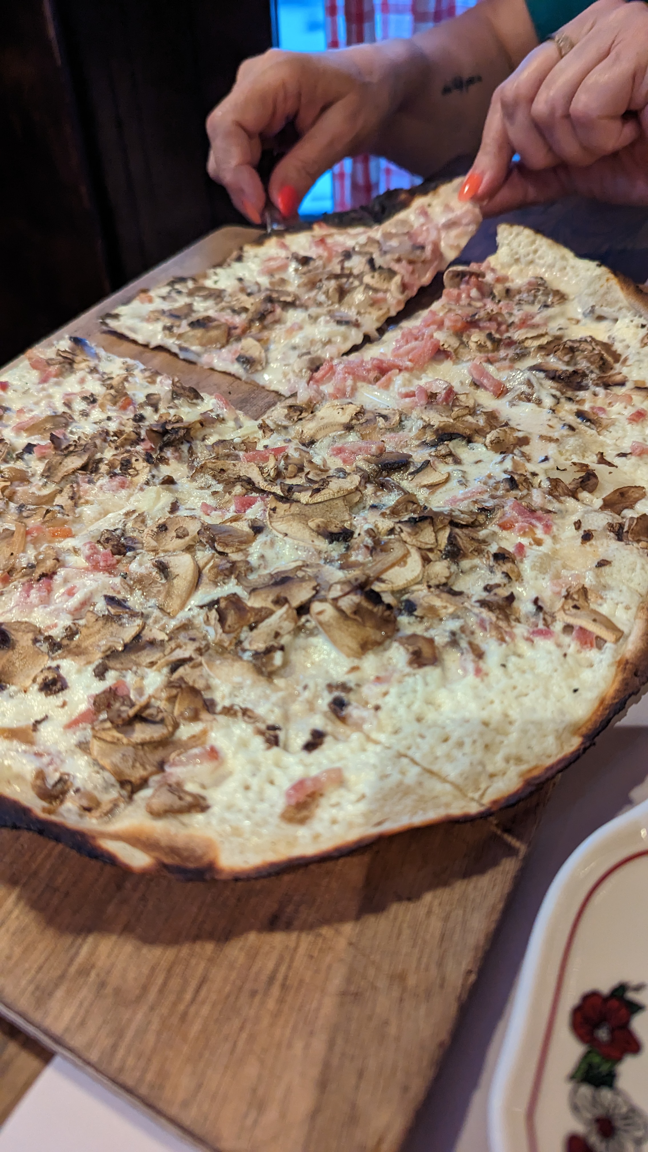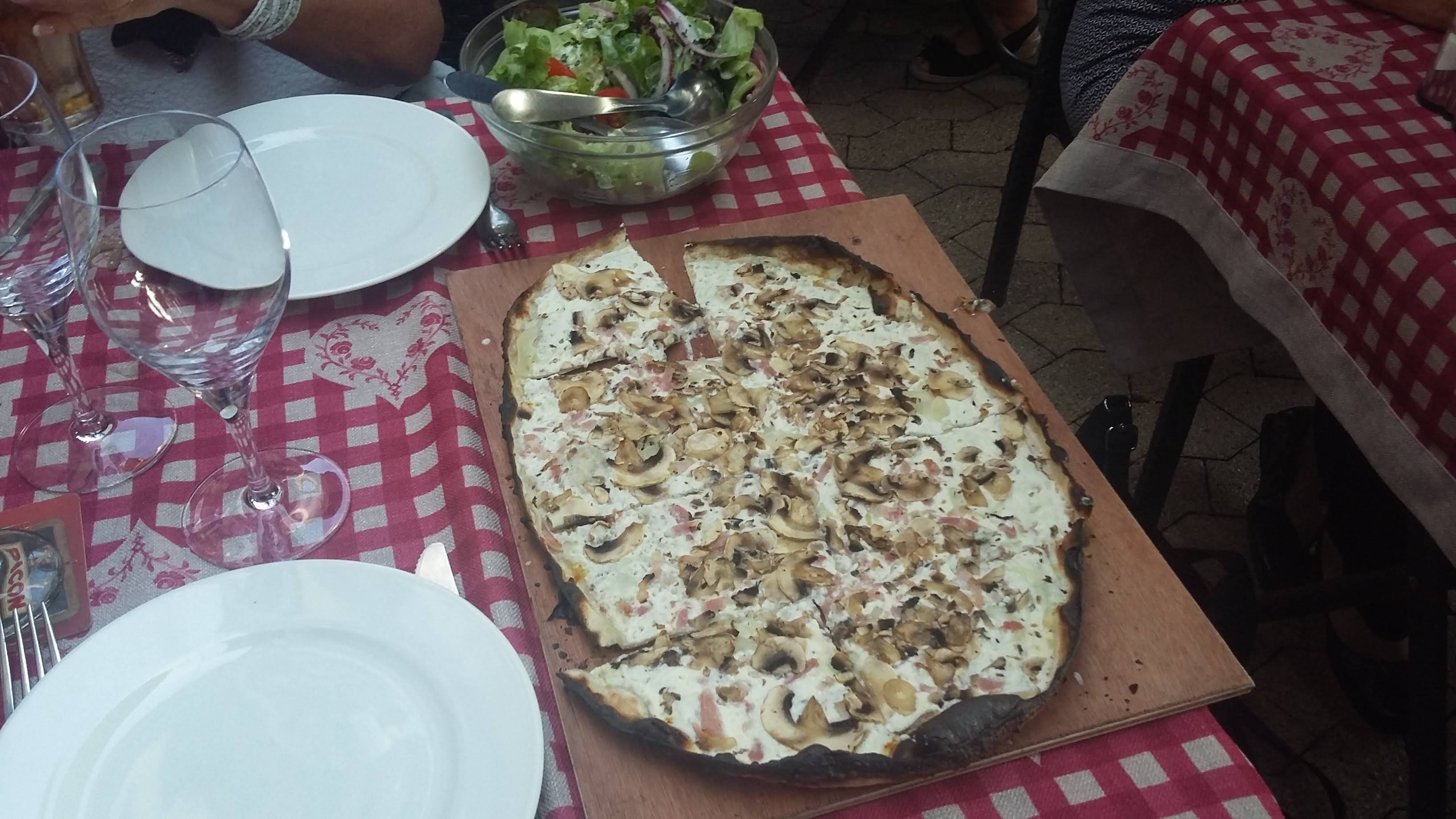 Tartes flambées détrampées avec la crème qui tombe. Pas très digne d'un restaurant traditionnel alsacien.