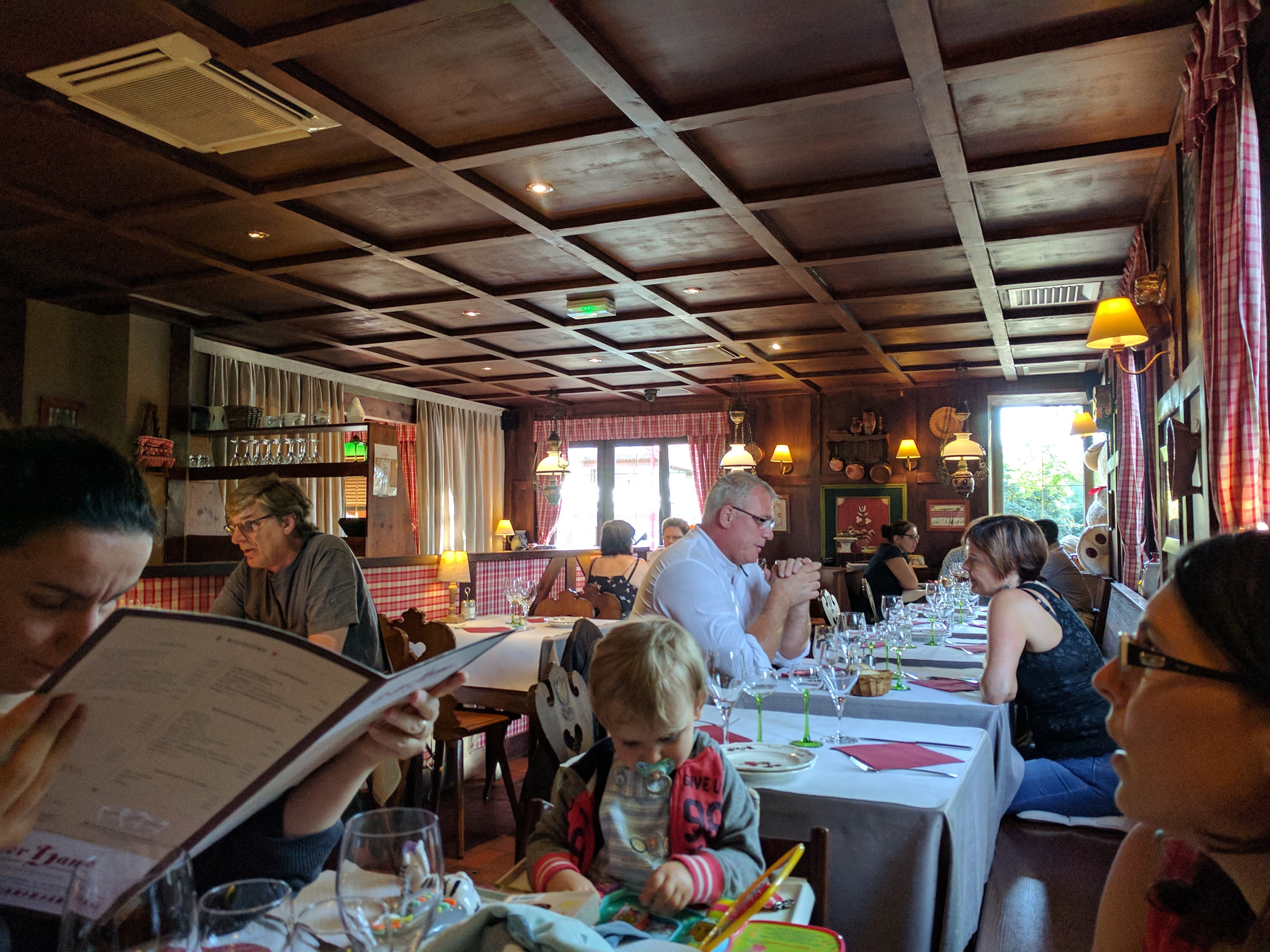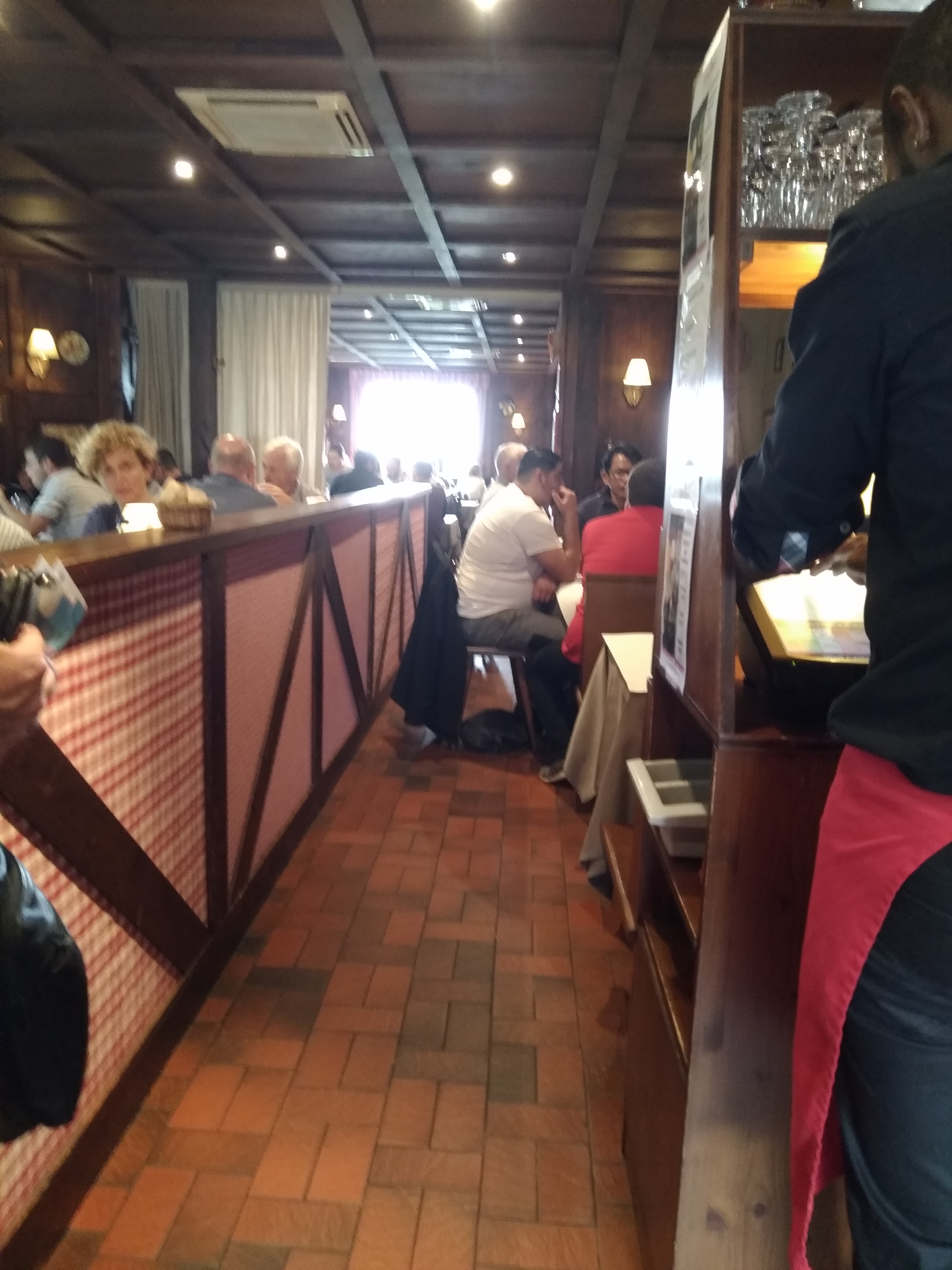 Cadre traditionnel accueillant, mais... C'est trop cher pour ce que c'est, à savoir de la cuisine sans âme tout à fait commune, pas mauvaise, mais pas extraordinaire. Et la prestation n'y est pas. Notre serveuse était gentille et souriante, mais la cuisine renvoie l'escalope pas assez cuite, sans sa garniture ni les frites déjà servies. Ce n'est guère excusable. J'allais oublier : nous avons pris trois plats en sauce, mais nous n'avons pas eu de pain.