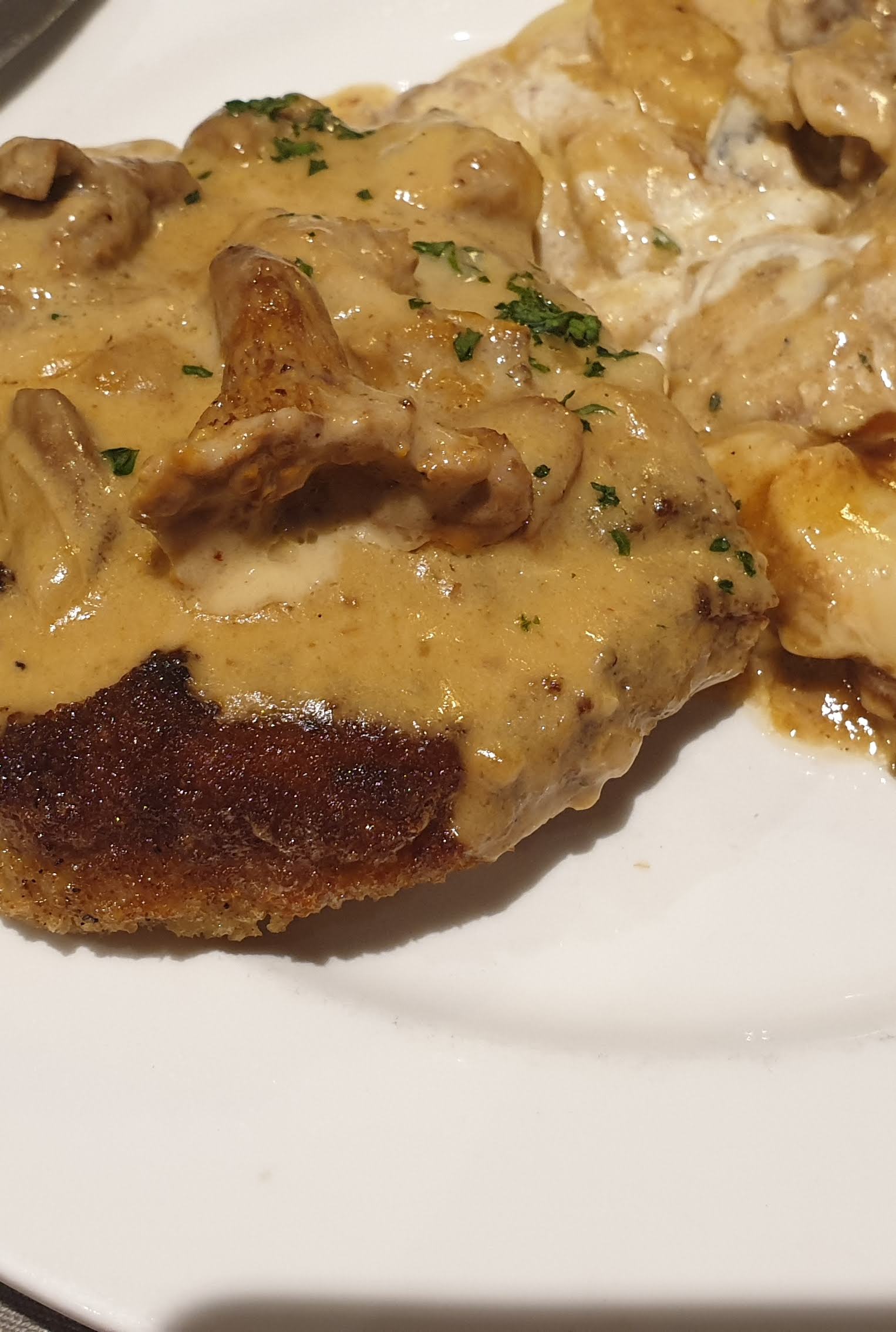 Tarte flambée excellente Cordon nleu juste un peu trop cuit.