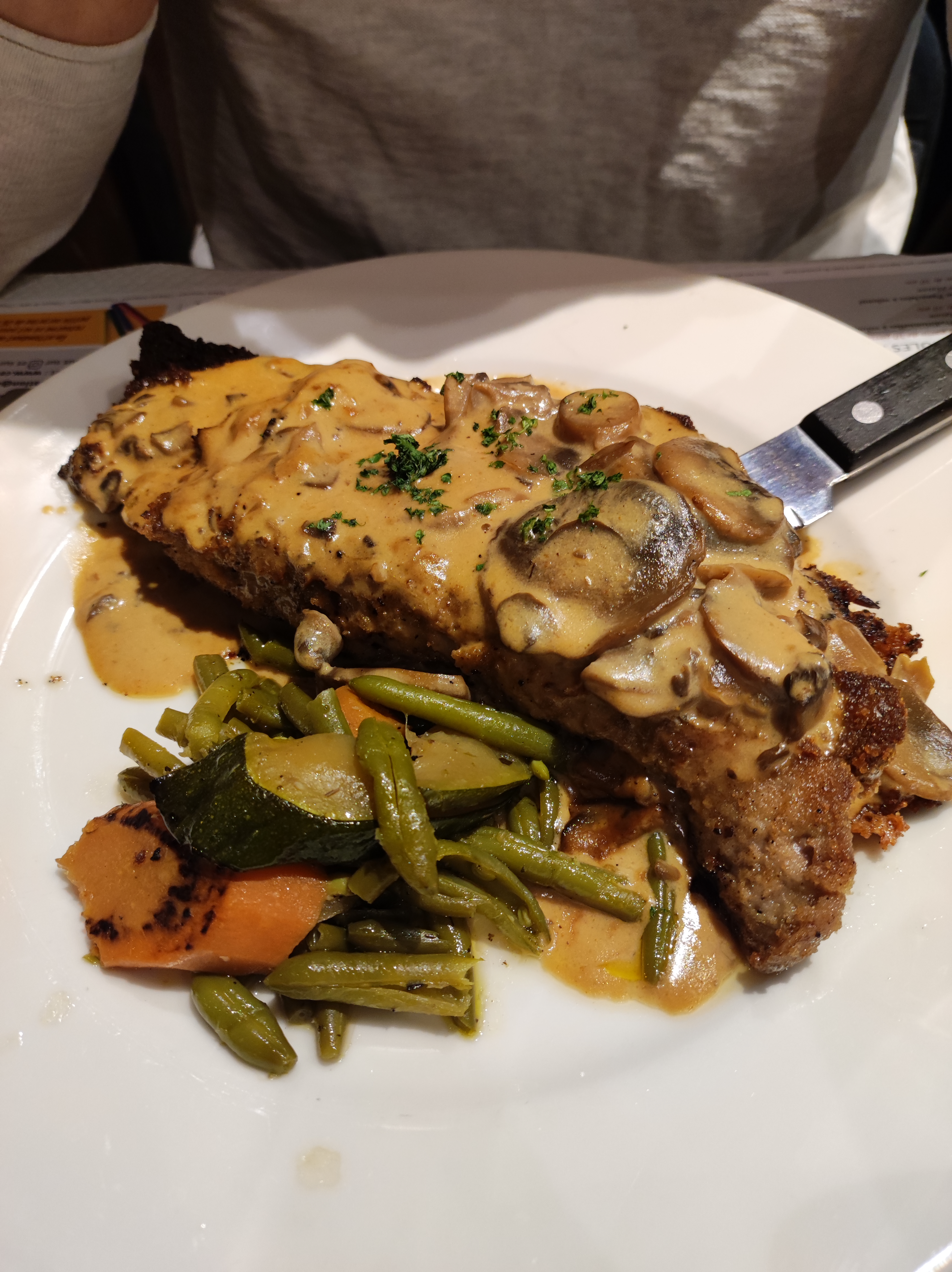 Excellente découverte. Très copieux, le cordon bleu de veau était excellent. Un service agréable et un dessert plus que gourmand. Le petit point à améliorer pour un repas parfait serait que les plats arrivent un peu plus chaud. Je reviendrai c’est certain.