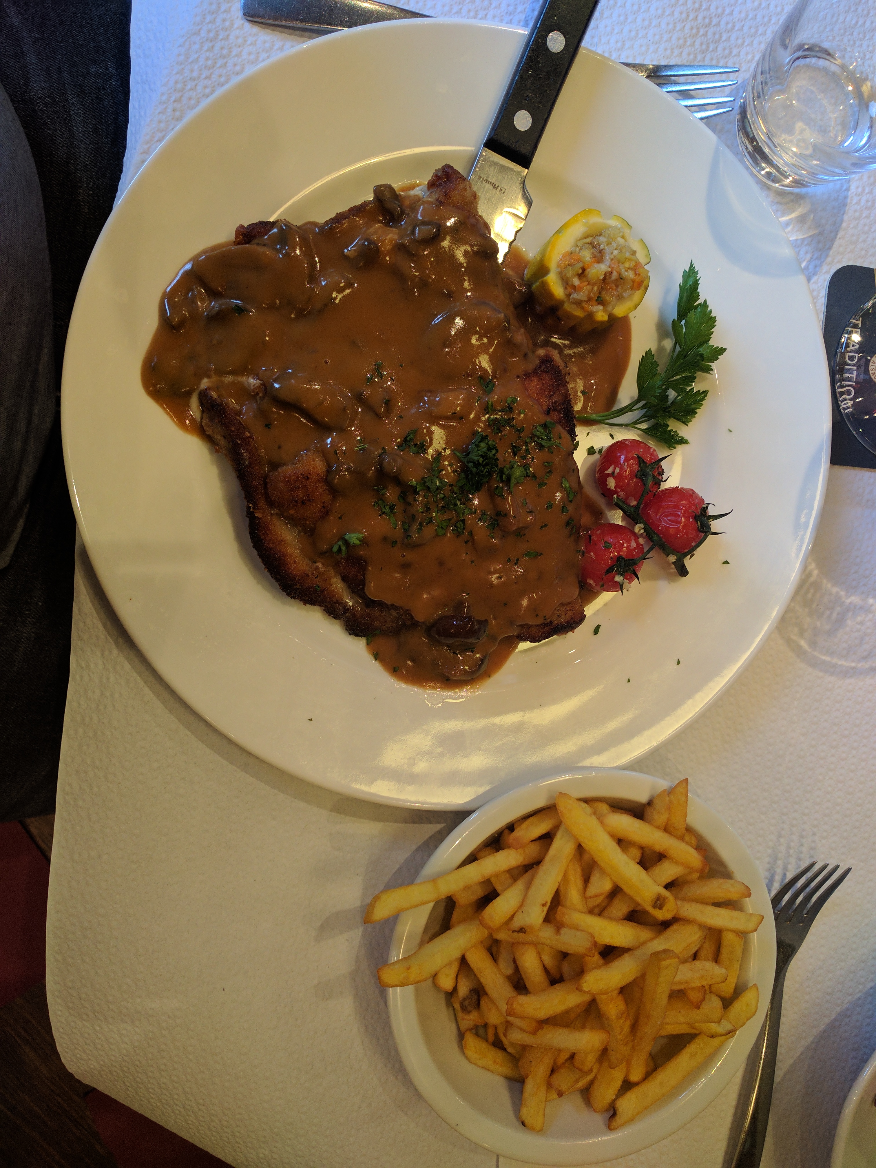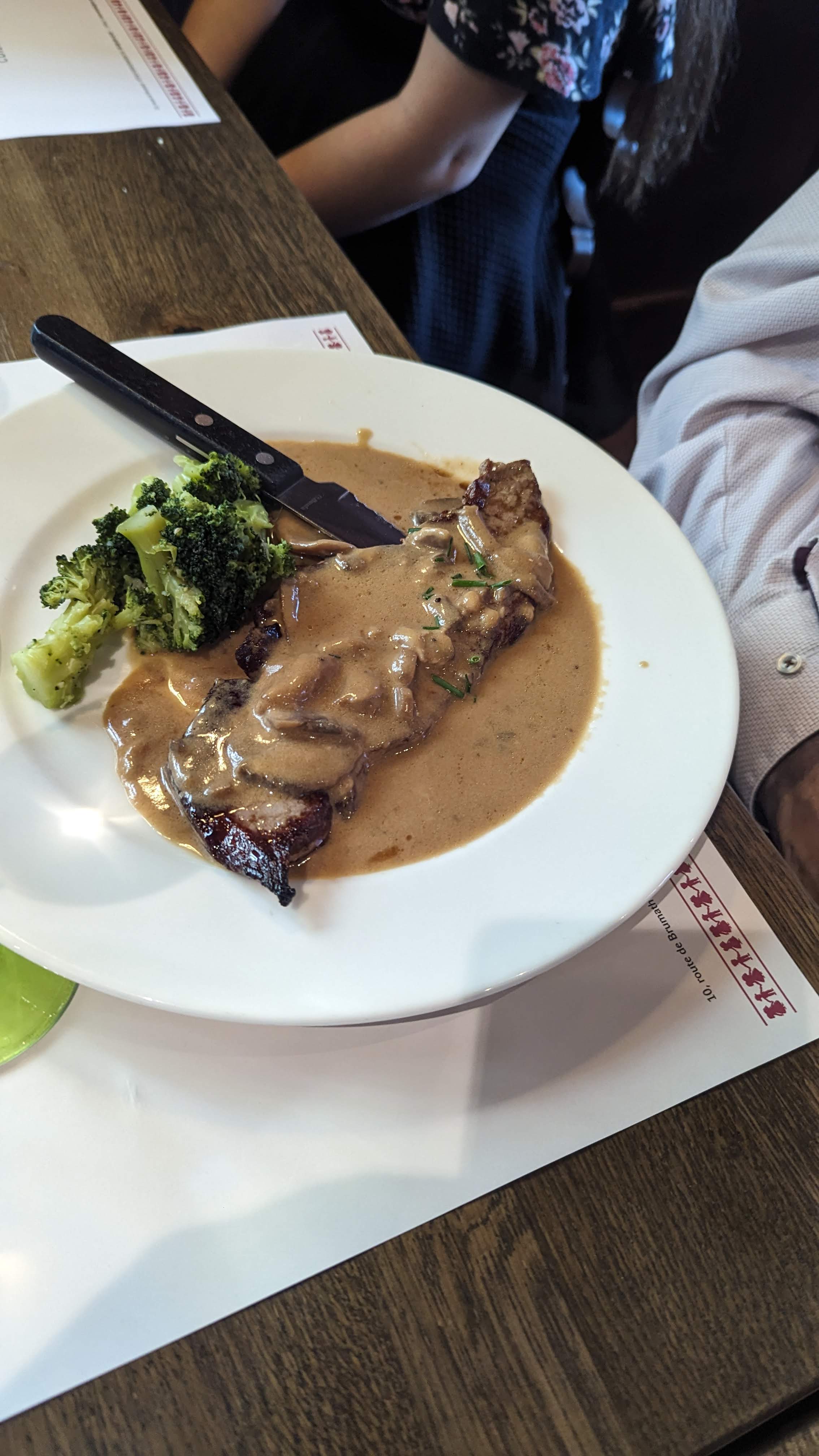 Serveuse sympa et souriante. Mais le service très lent et long. Les rognons flambé au cognac ? C'était une soupe de rognons, baignant dans la crème et en plus mal coupé. Ils sont ( les rognons) nettement meilleurs à l'ancienne douane ( shopping promenade. ) . Dommage.