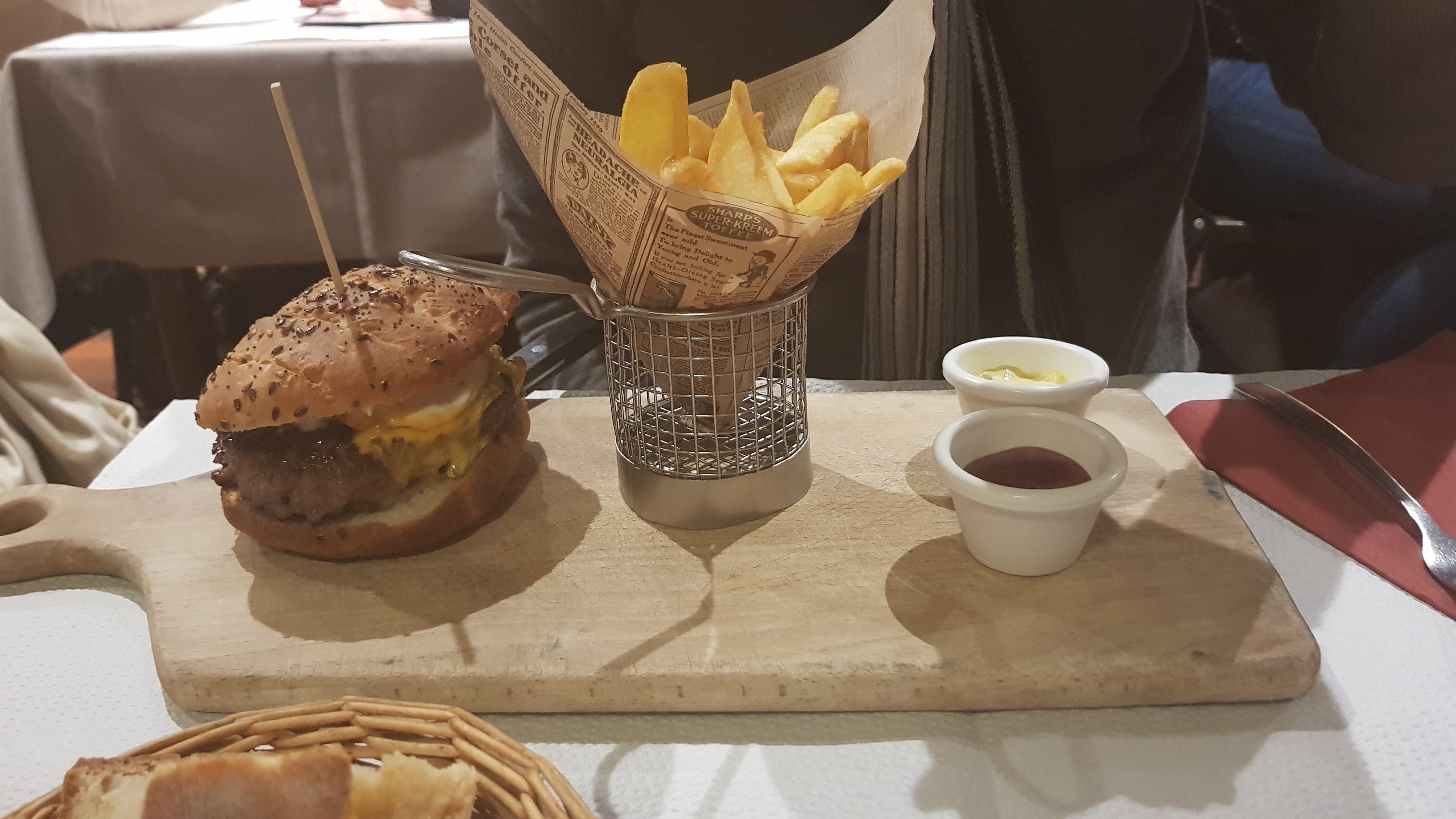 J'ai passé un bon moment malgré quelques loupés selon moi. Nous avions réservé pour 12 et en arrivant à l'heure notre table n'était pas prête. Aussi je m'attendais a un endroit confortable et chaleureux, malheureusement nous étions sur la terrasse fermée certes mais pas hermétique et l'air froid au niveau des jambes malgré le plaid était pour le moins rafraîchissant. Autre petit loupé, j'ai pris le Hans Burger, un burger qui selon moi manque un peu d'équilibre. En effet le fleischkiechle de 200gram écrase toutes les autres saveurs. Aussi un burger Alsacien avec du cheddar(Alsacien?) alors qu'il y a du munster en Alsace !! Et sinon il y a d'autre cheddar que du cheddar industriel. Bref, c'était pas mauvais mais il y a eu quelques loupés