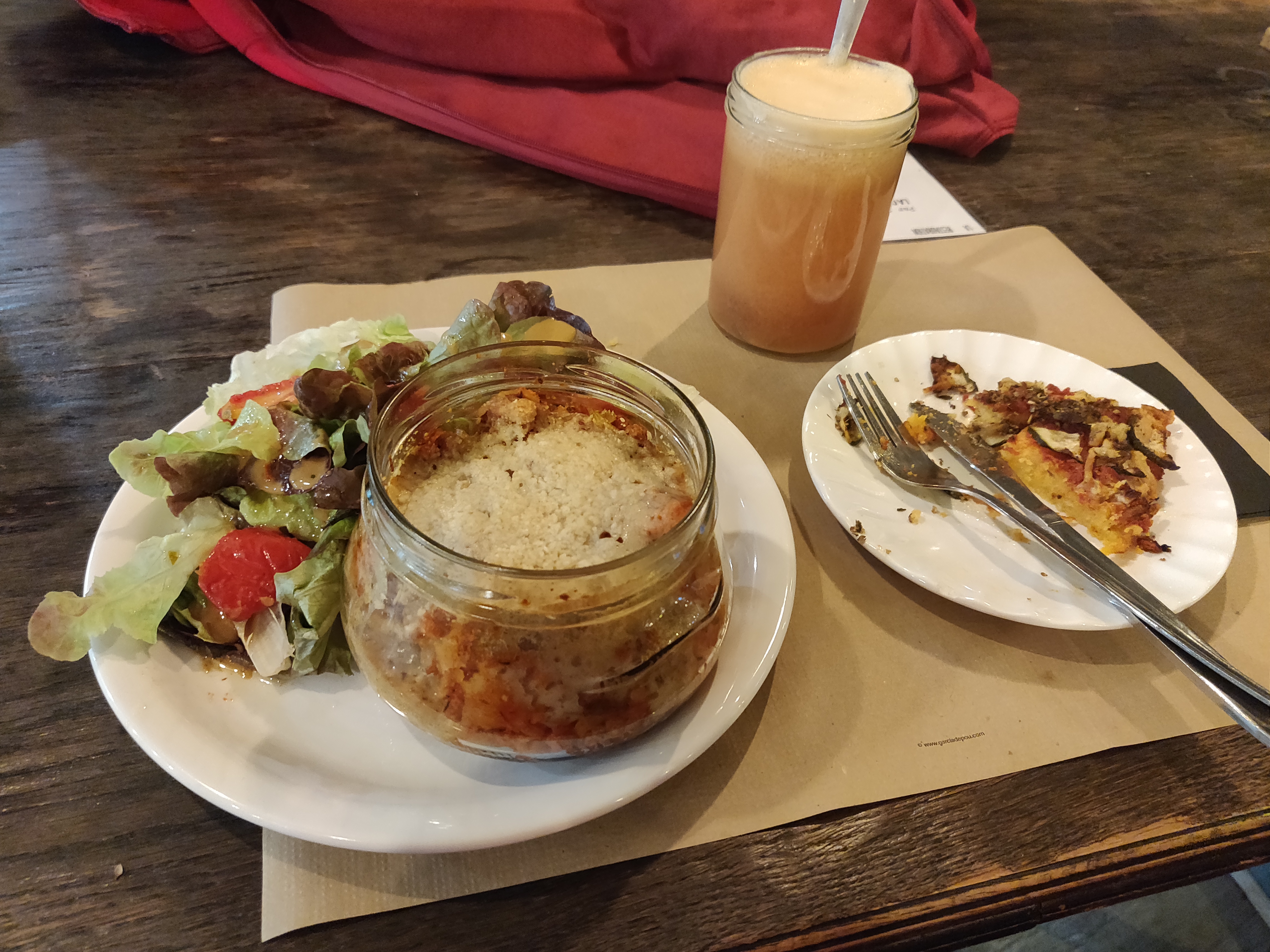 Déçue - Dommage, le goût est bon, mais le pot même pas à moitié plein. Heureusement que j'ai pris un dessert qui ne va pas me faire grossir :-) Augmenter un peu les quantités ou baisser le prix ! Le concept est sympath :-)