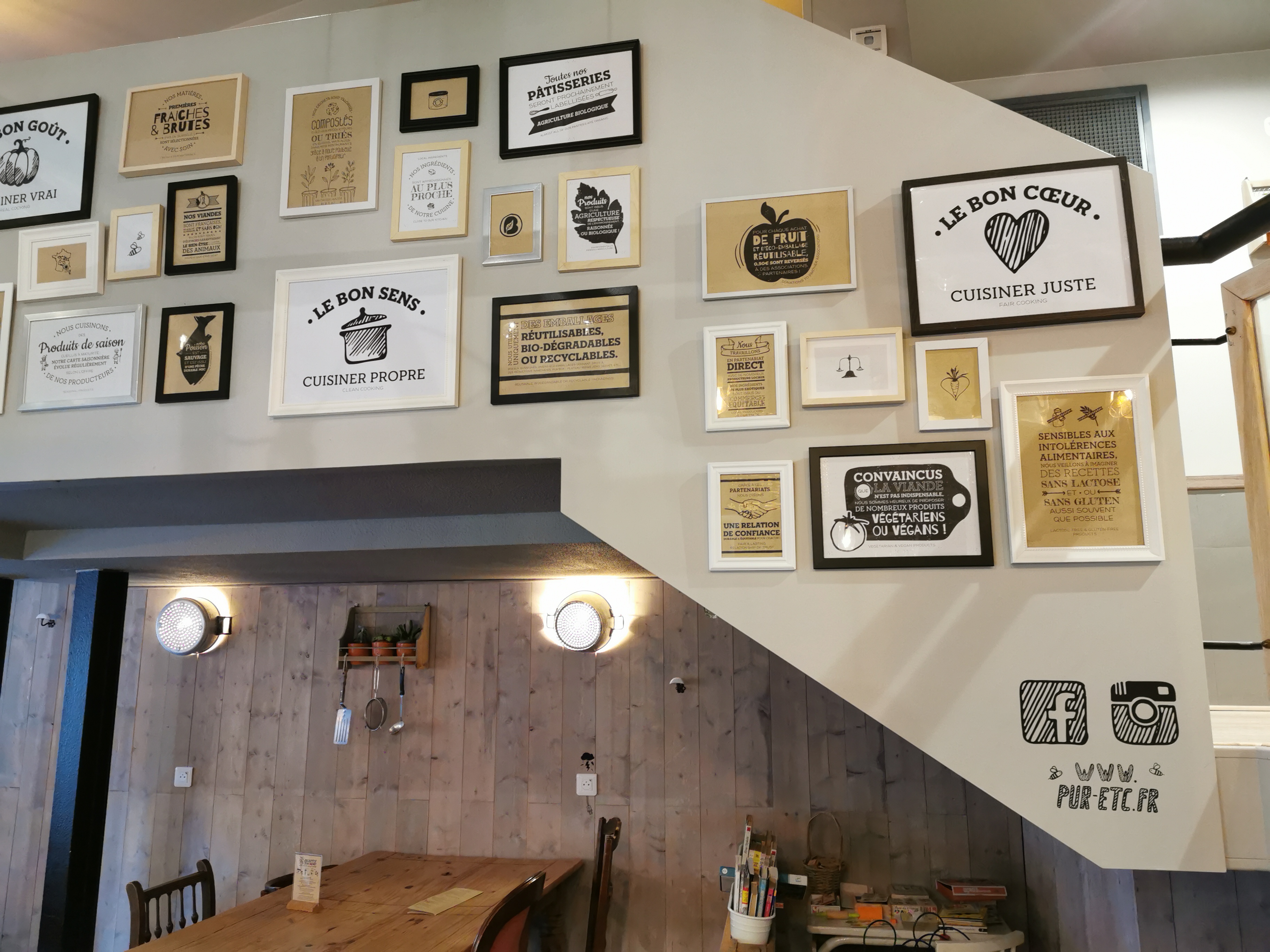 PUR ement...très moyen.. Un accueil peu chaleureux, voir froid. Une déco palette en guise de canapé...quelle confort...bon il y a des fauteuil....et canapé.... surement de chez Emmaus... Pour un café servi dans un pot de confiture... avec un bord à lèvre très désagréable à 3,50 €... Waouh... La suite ... Une salade César revisitée.. pouffff... le mot revisité est tellement facile... mais aucun traceur de cette salade... des crôutons en boules....surement industrielle.. Une mixture de poulet insipide... pauvre éleveur si il voyait le résultat de son travail quotidien.... il prendrais peur... J ai pas ressenti le goût de l anchois, typique à la sauce César...ni les copeaux de parmesan.. Un bière sans mousse, sans gaz,... En revanche une addition à 20 €.. Pour une salade en pot de verre peu copieuse, un bière, un cappuccino....C est déjà une douloureuse... Pour une enseigne, qui défend le pur bonheur culinaire avec des convictions écrites et imprimées..je reste sur ma faim...et sans doute sur ma fin.... En résumé... pas ma cantine du dimanche....
