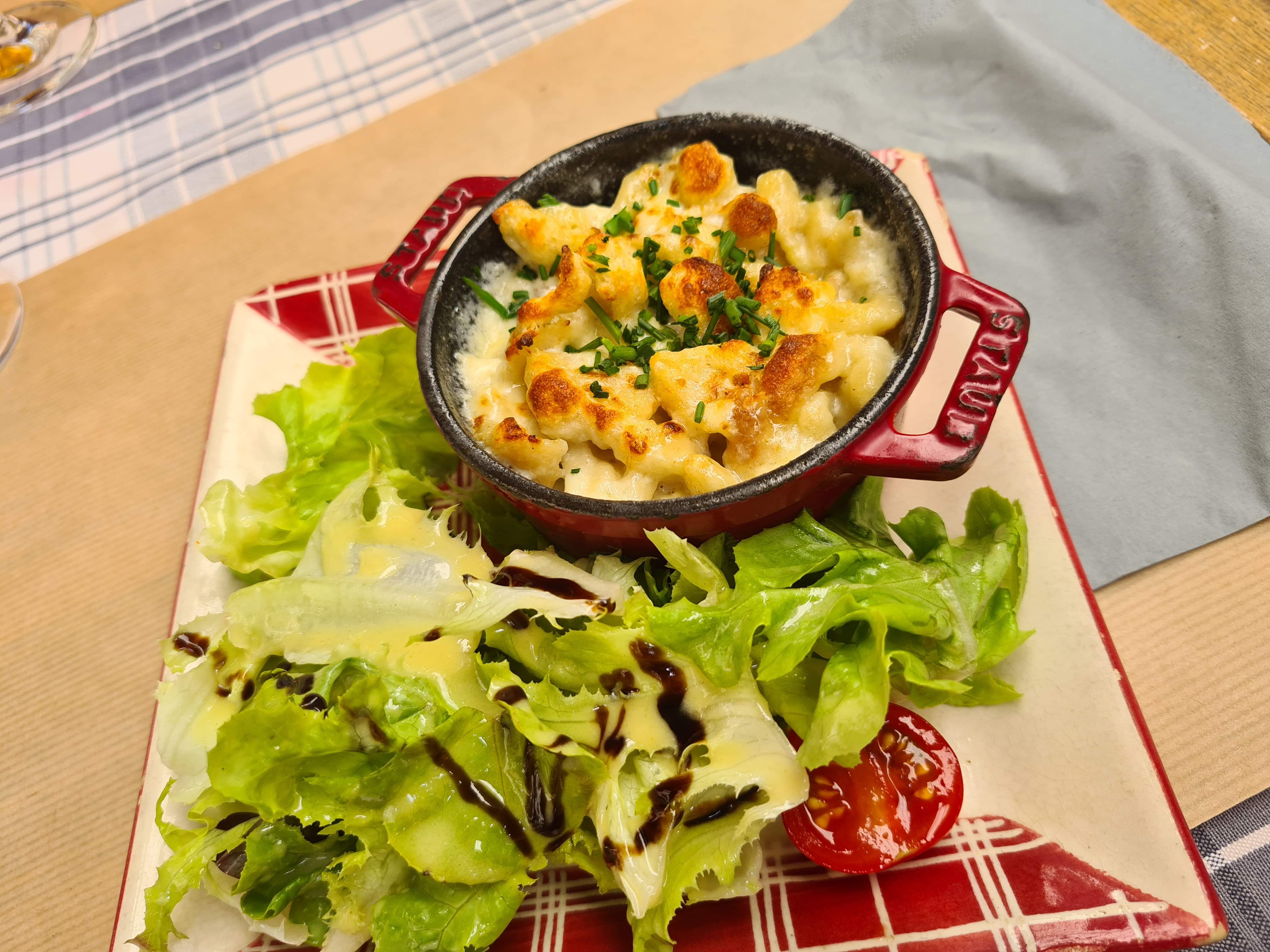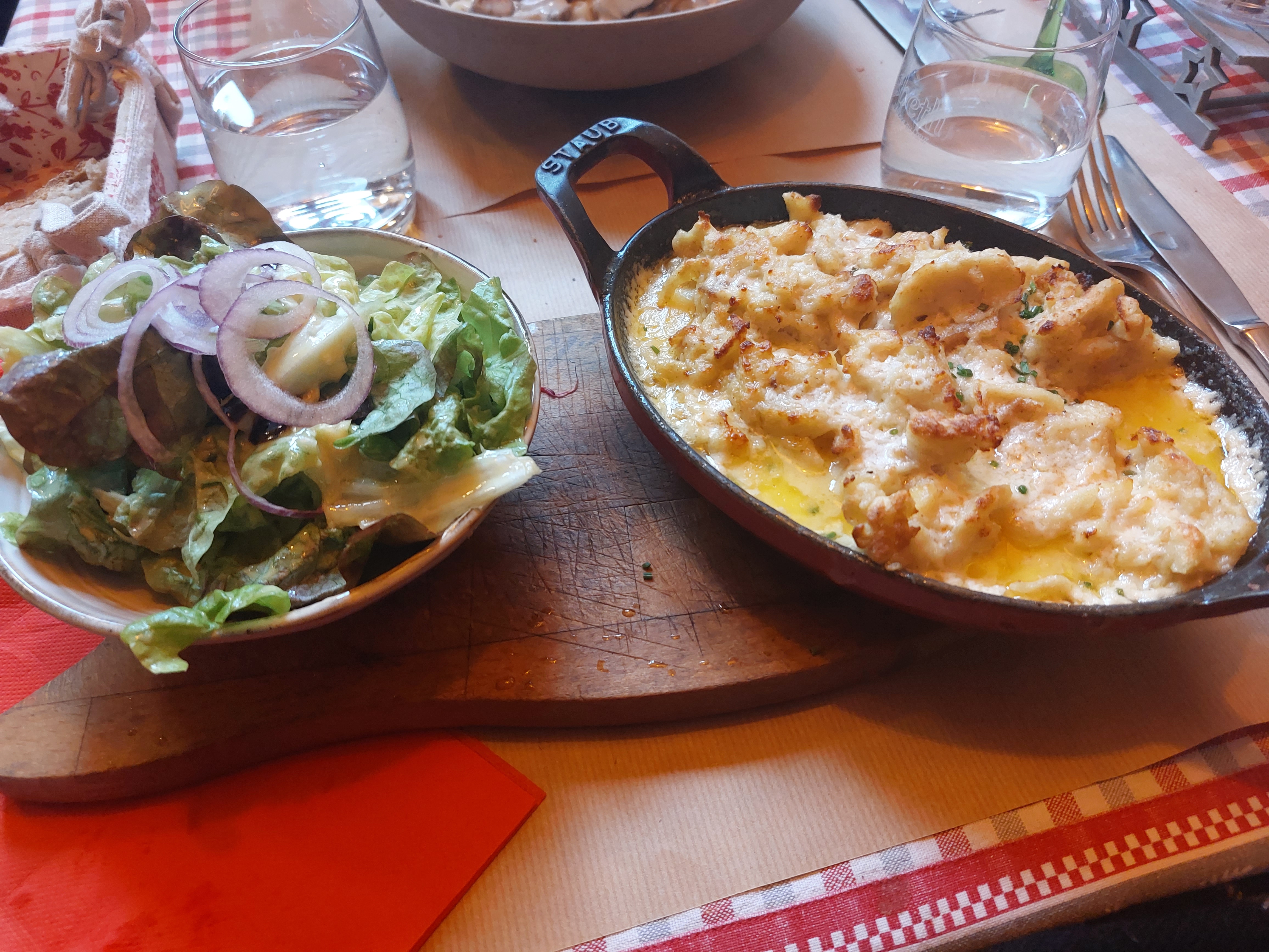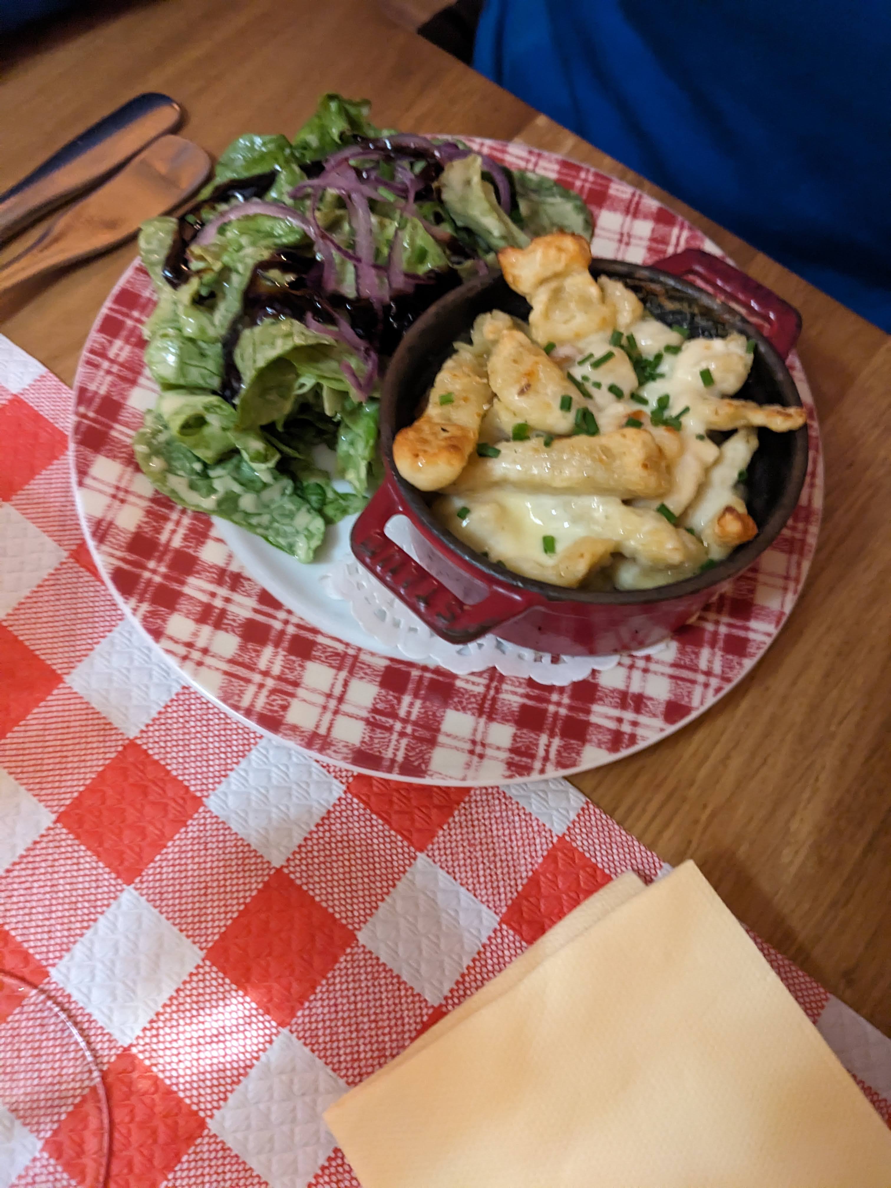 Bof. C'est bien mais sans plus. Allez y si vous voulez trouver une ambiance montagne mais avec du munster. Sinon ça ne vaut pas les 4.4 étoiles qui nous ont induits en erreur. On voulait manger léger sauf que dans ce restaurant c'est écrit noir sur blanc que il faut commander un plat par personne, dommage on voulait faire entrée + dessert...