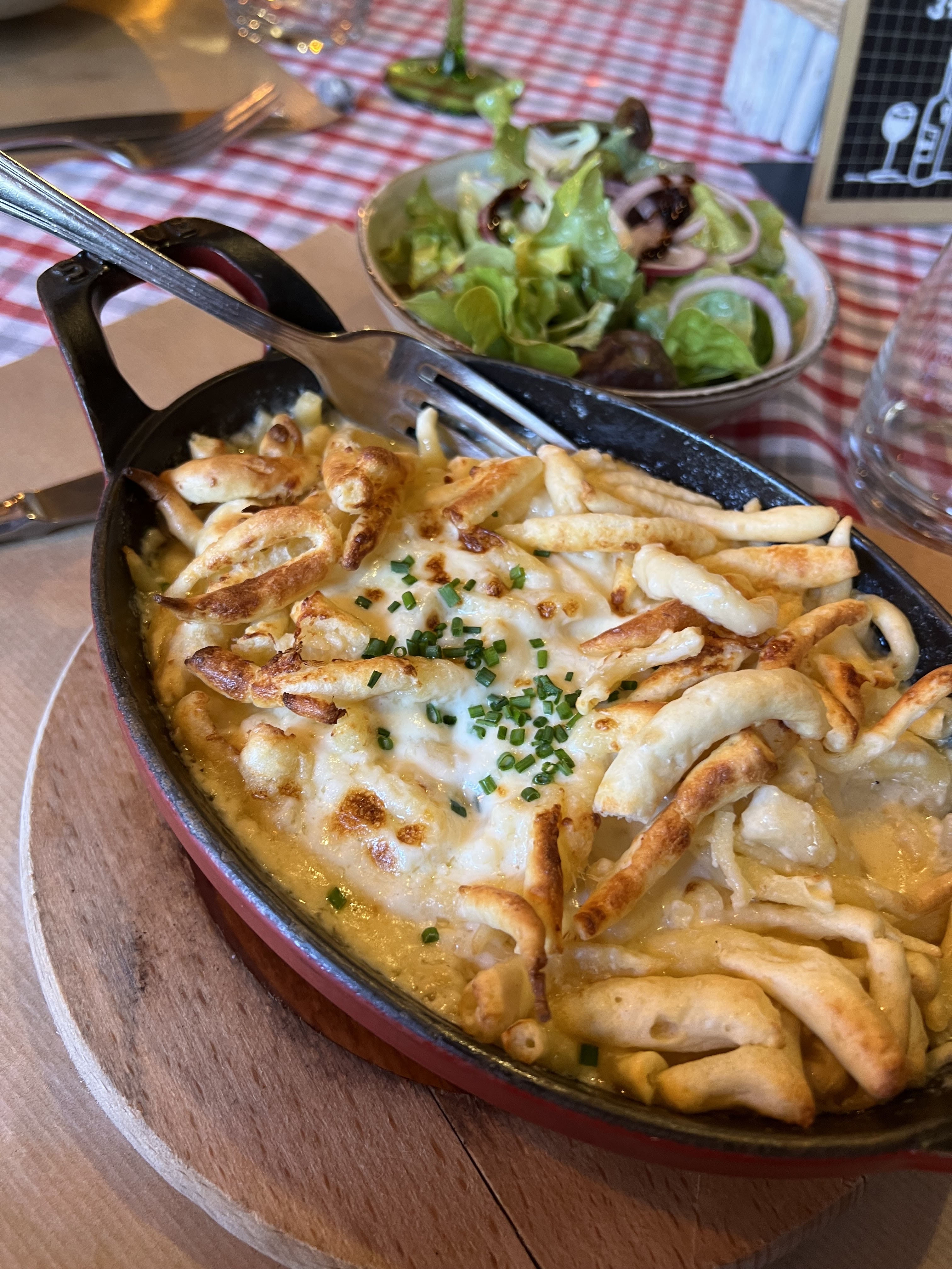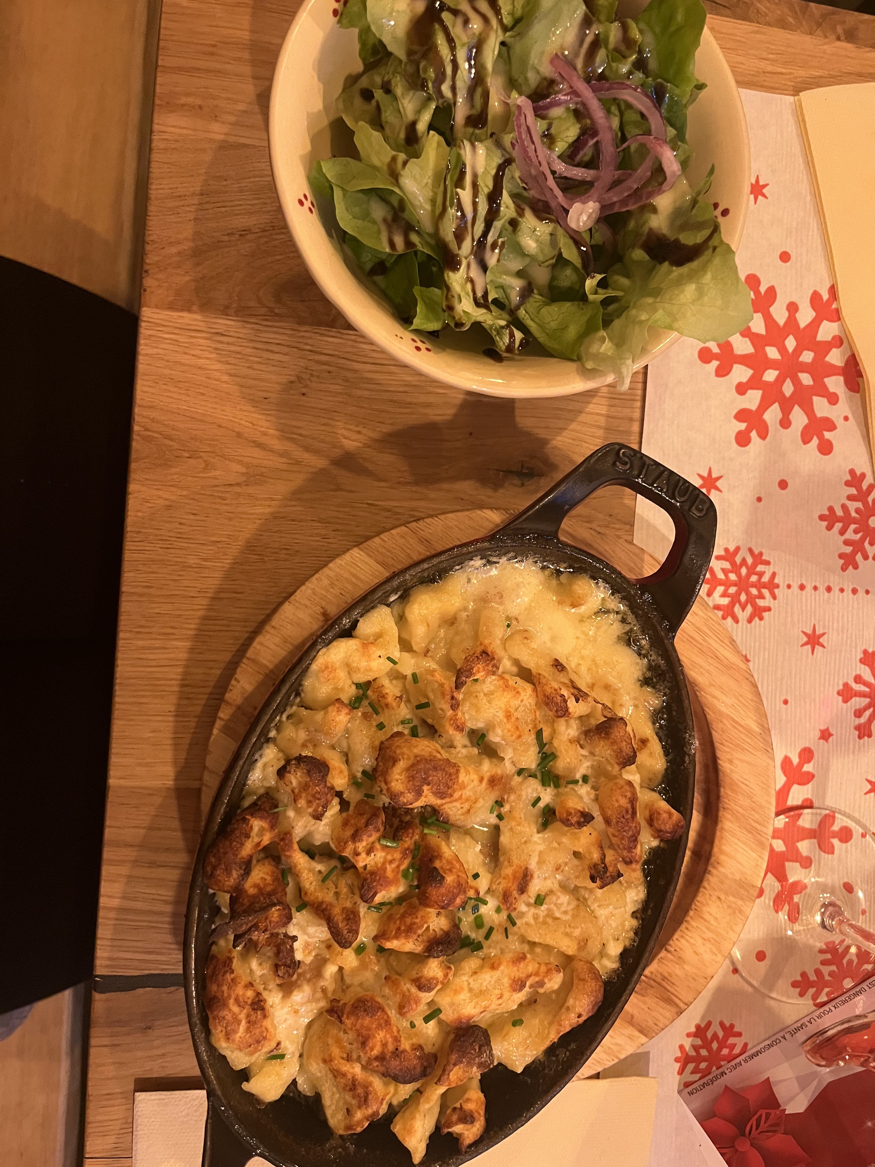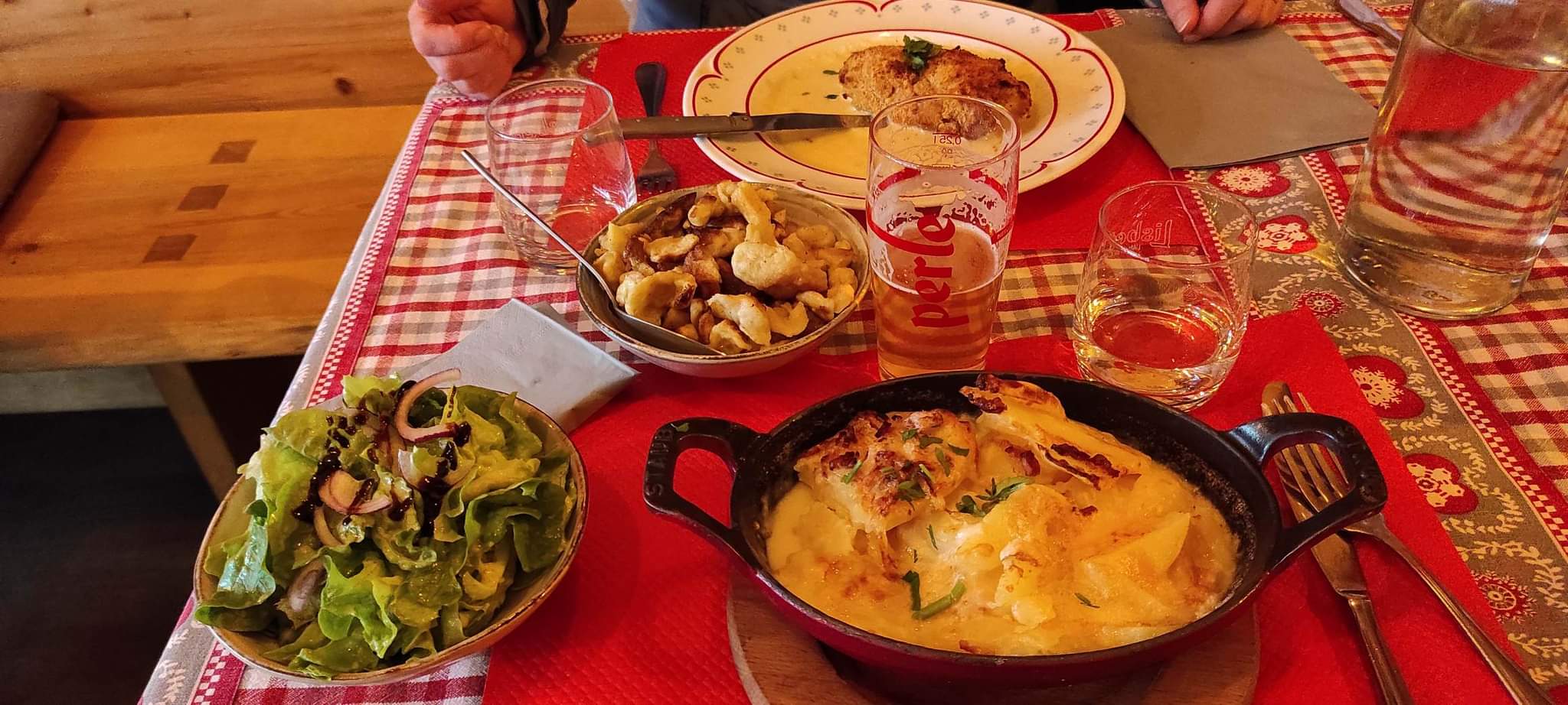 Bof. C'est bien mais sans plus. Allez y si vous voulez trouver une ambiance montagne mais avec du munster. Sinon ça ne vaut pas les 4.4 étoiles qui nous ont induits en erreur. On voulait manger léger sauf que dans ce restaurant c'est écrit noir sur blanc que il faut commander un plat par personne, dommage on voulait faire entrée + dessert...