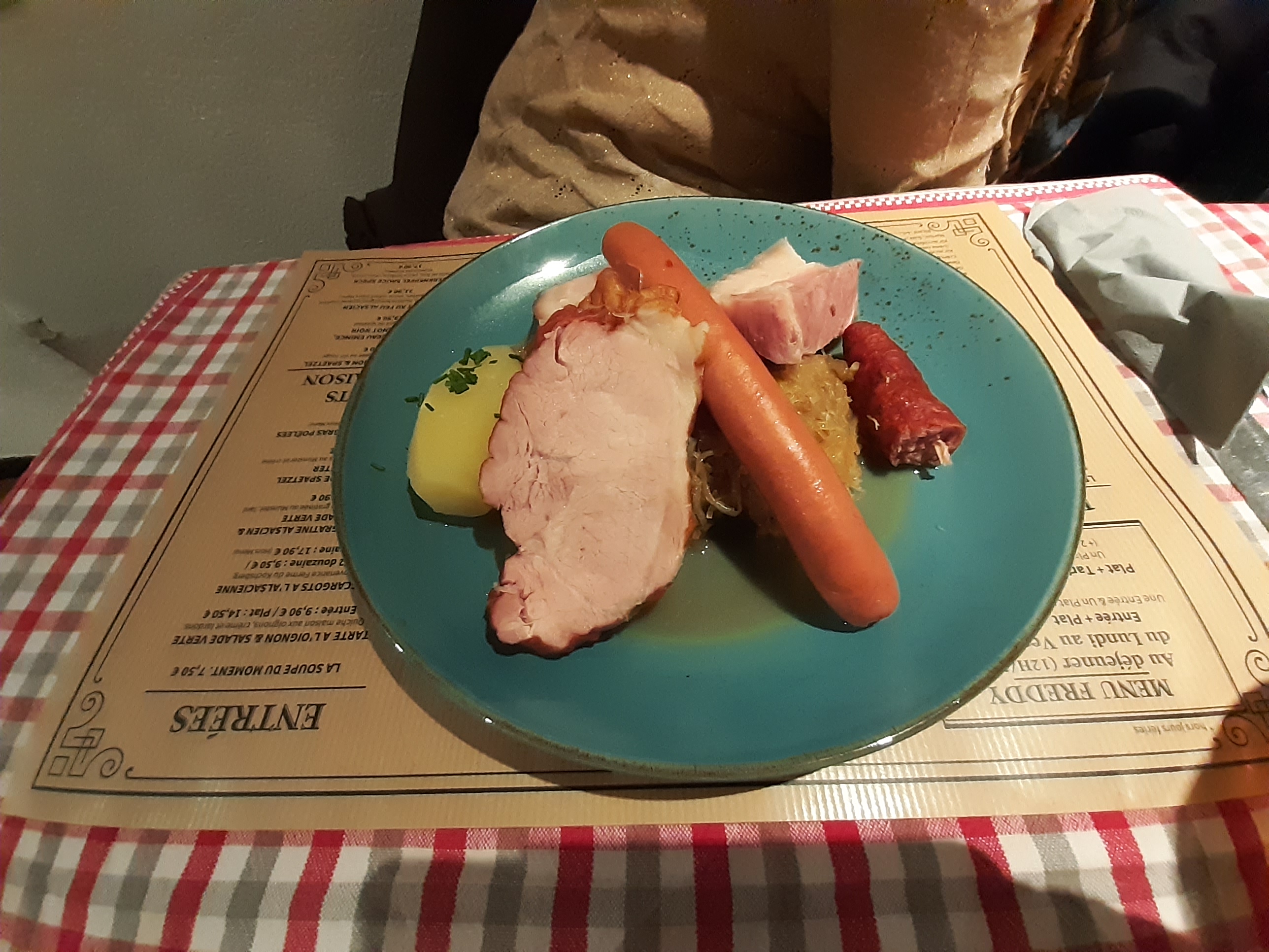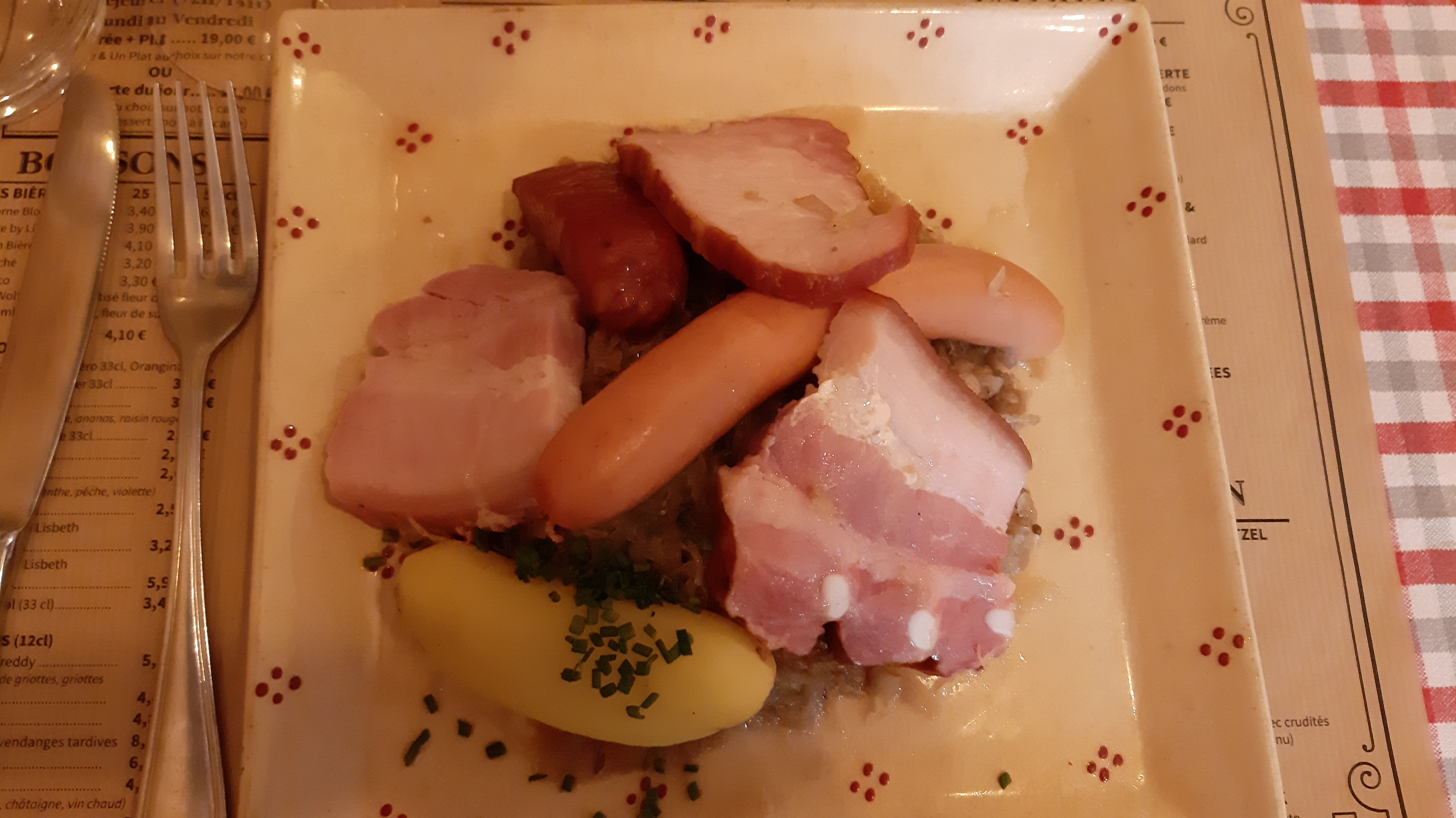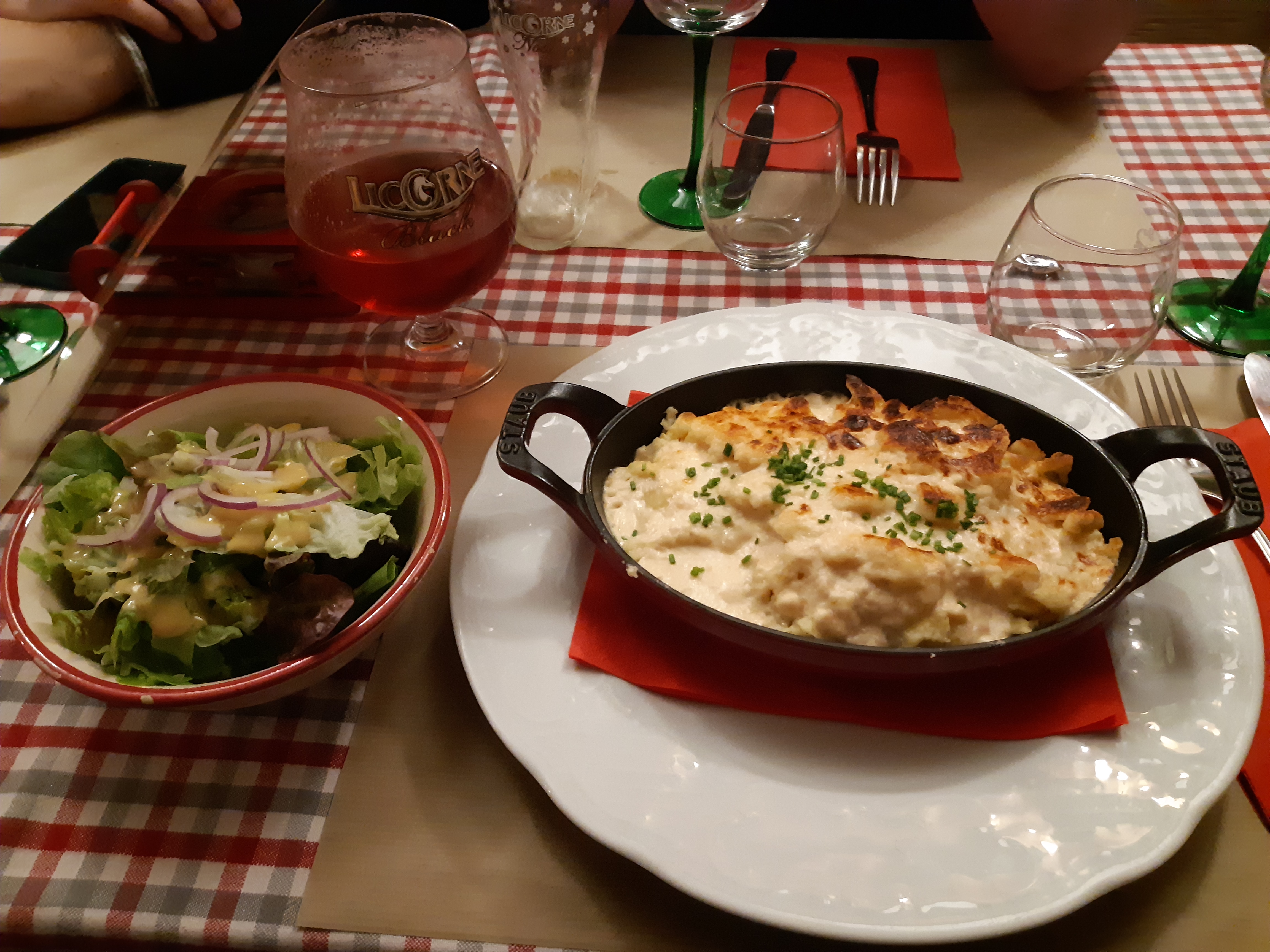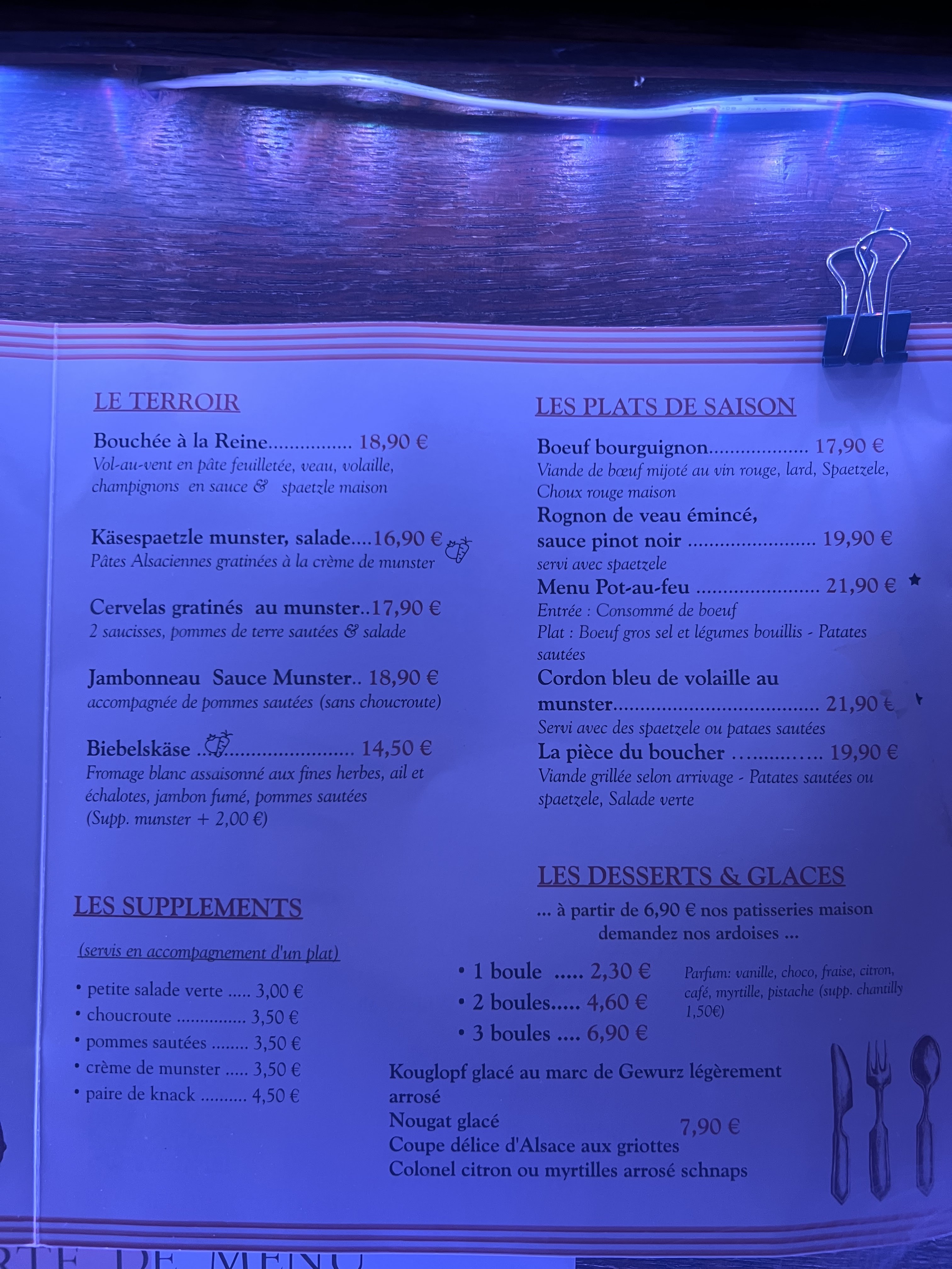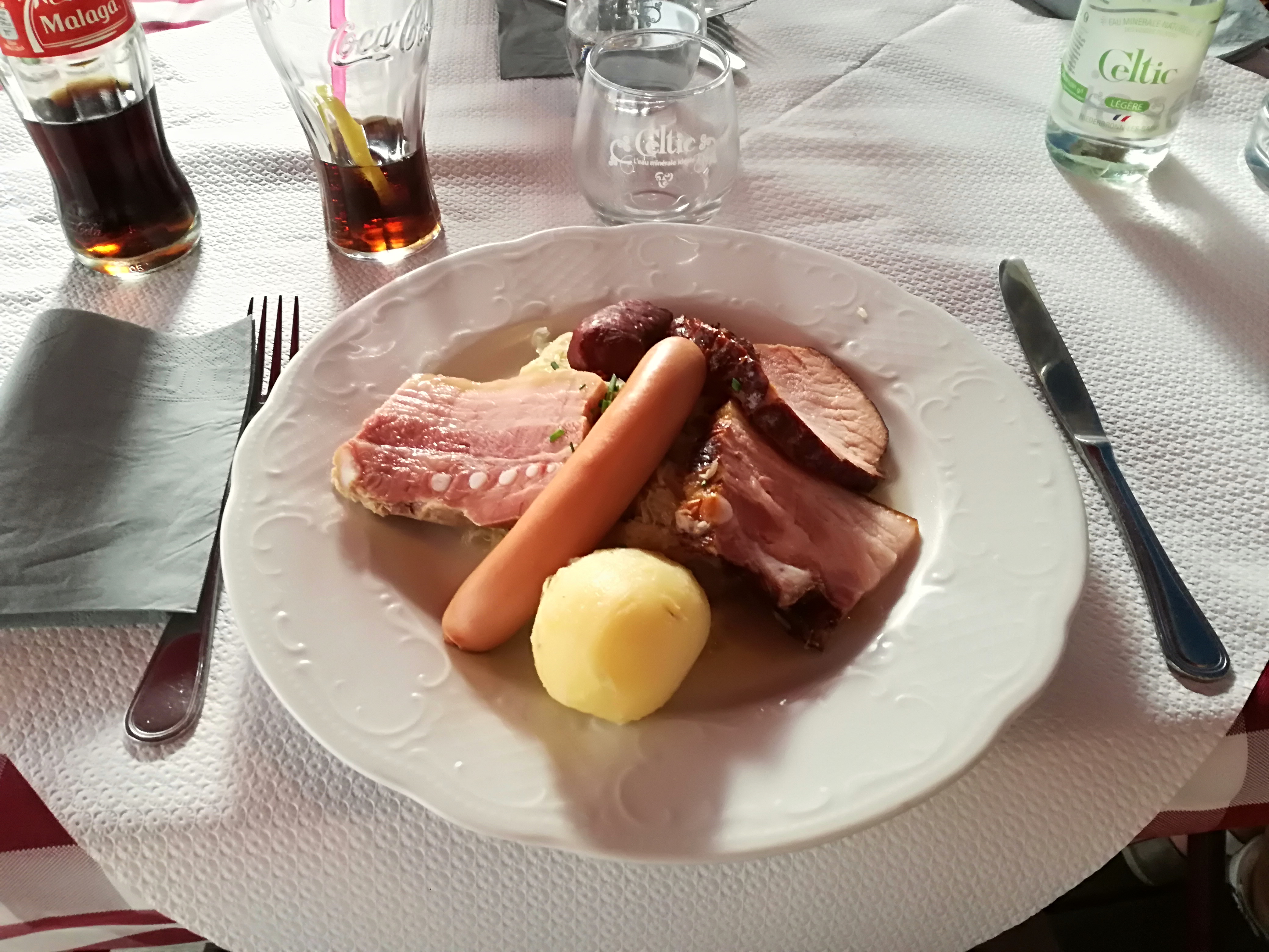 J’ai essayé la spécialité alsacienne BACKHOEFFE. Mais pas à mon goût. Ma femme par contre a essayé le cordon bleu, mais à la limite de l’acceptable….