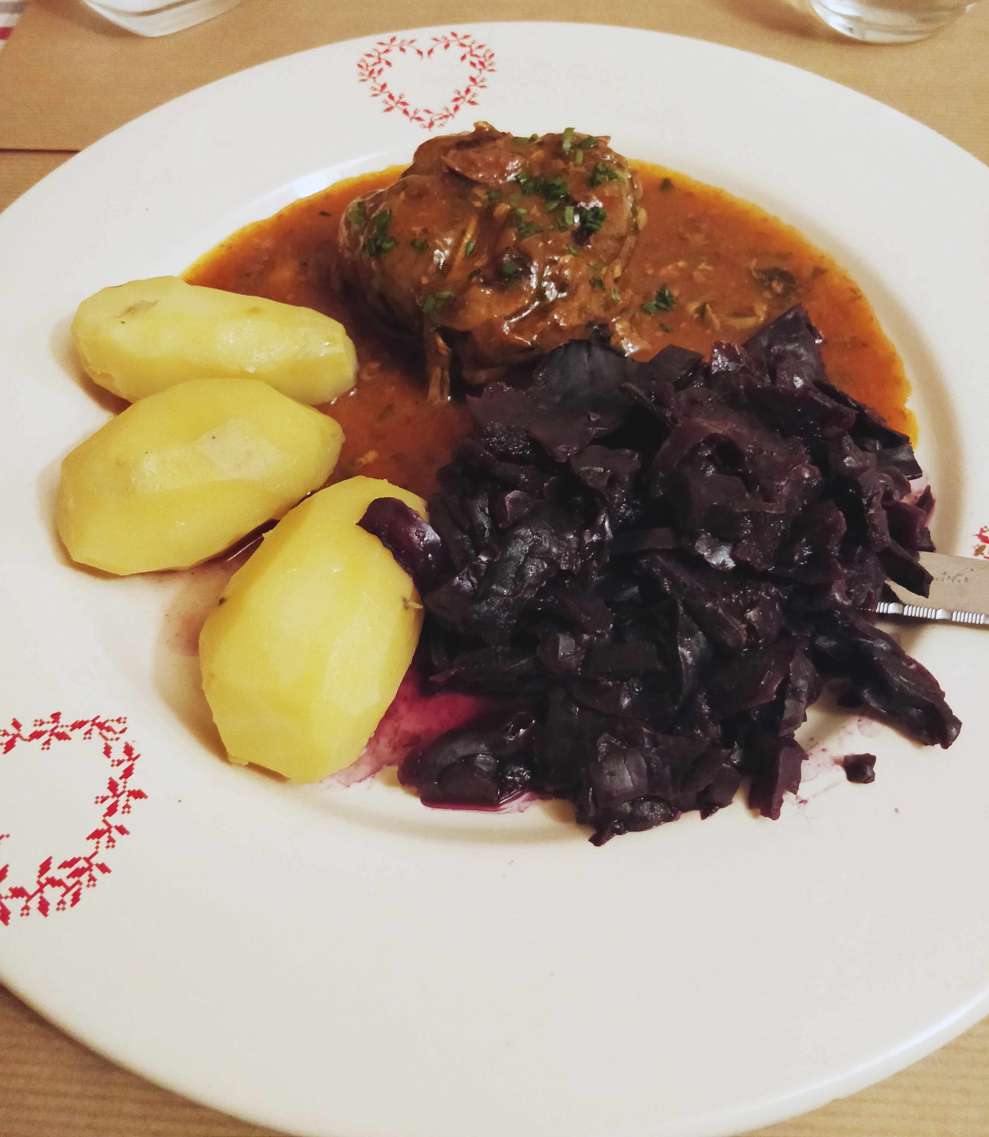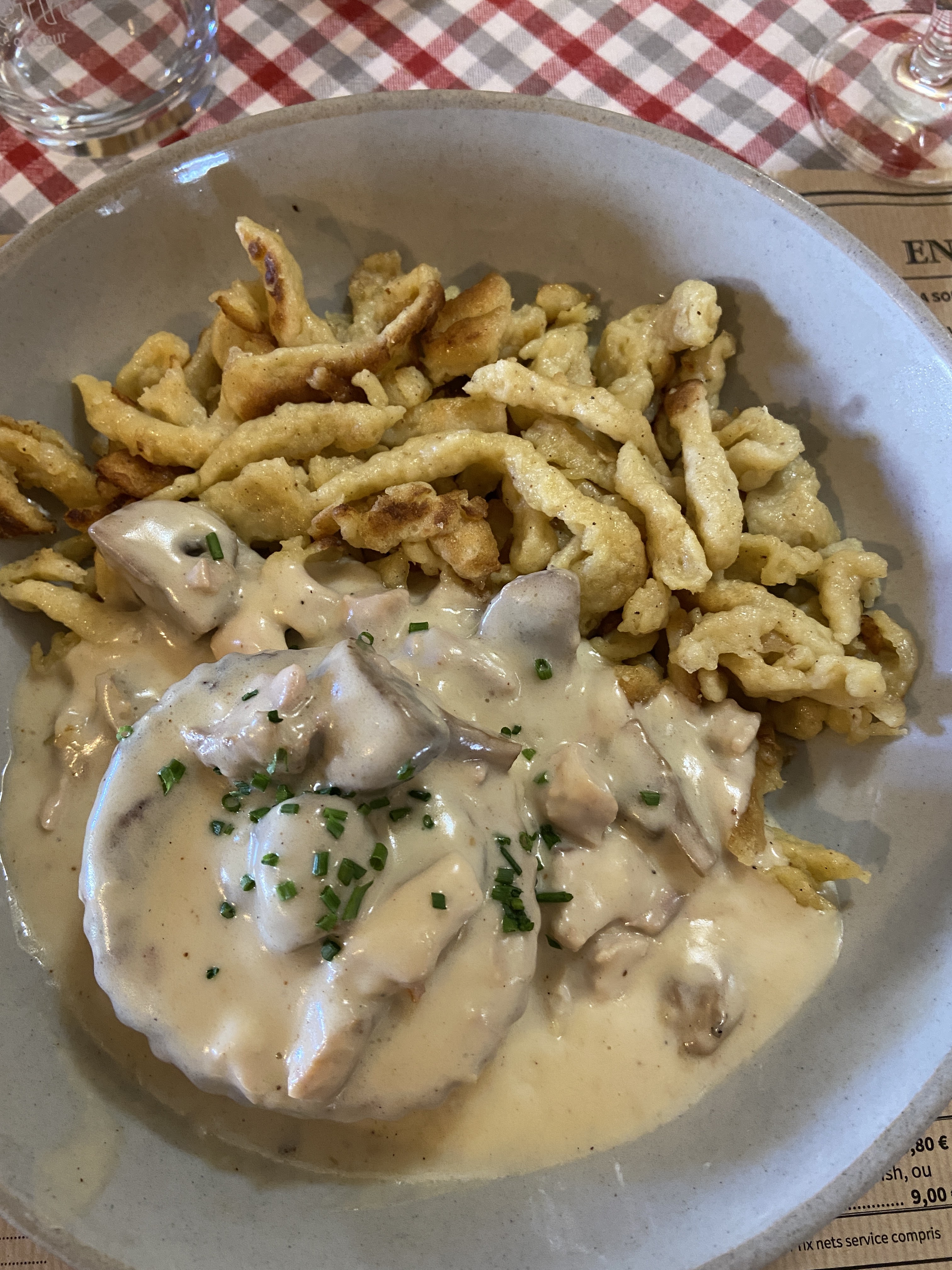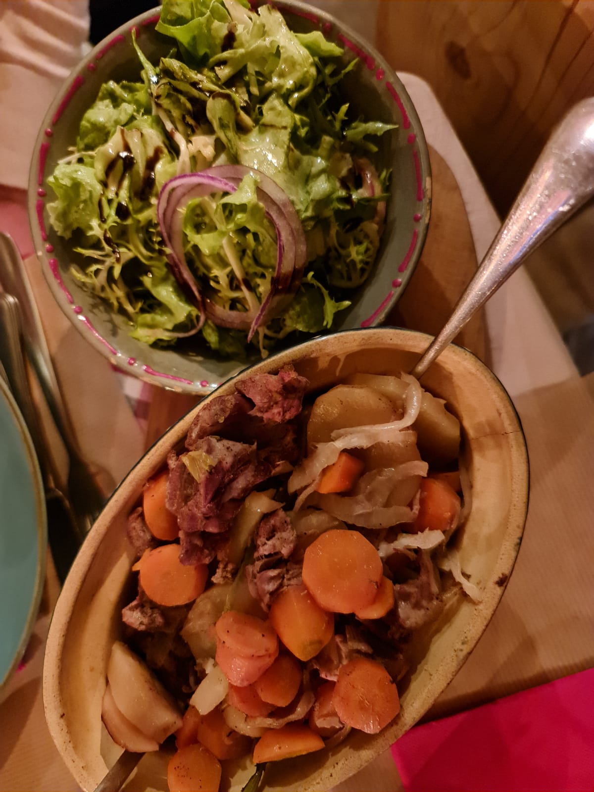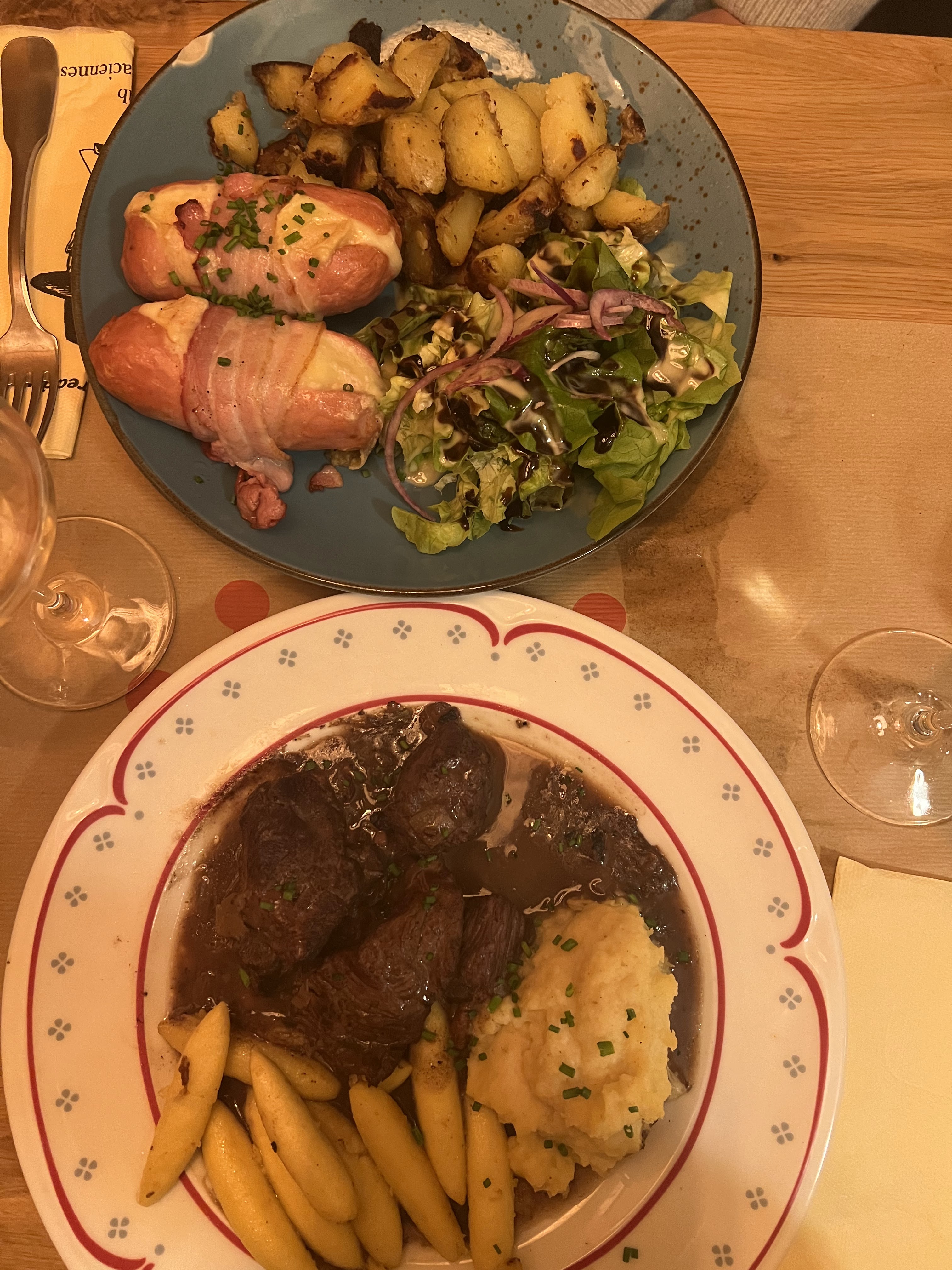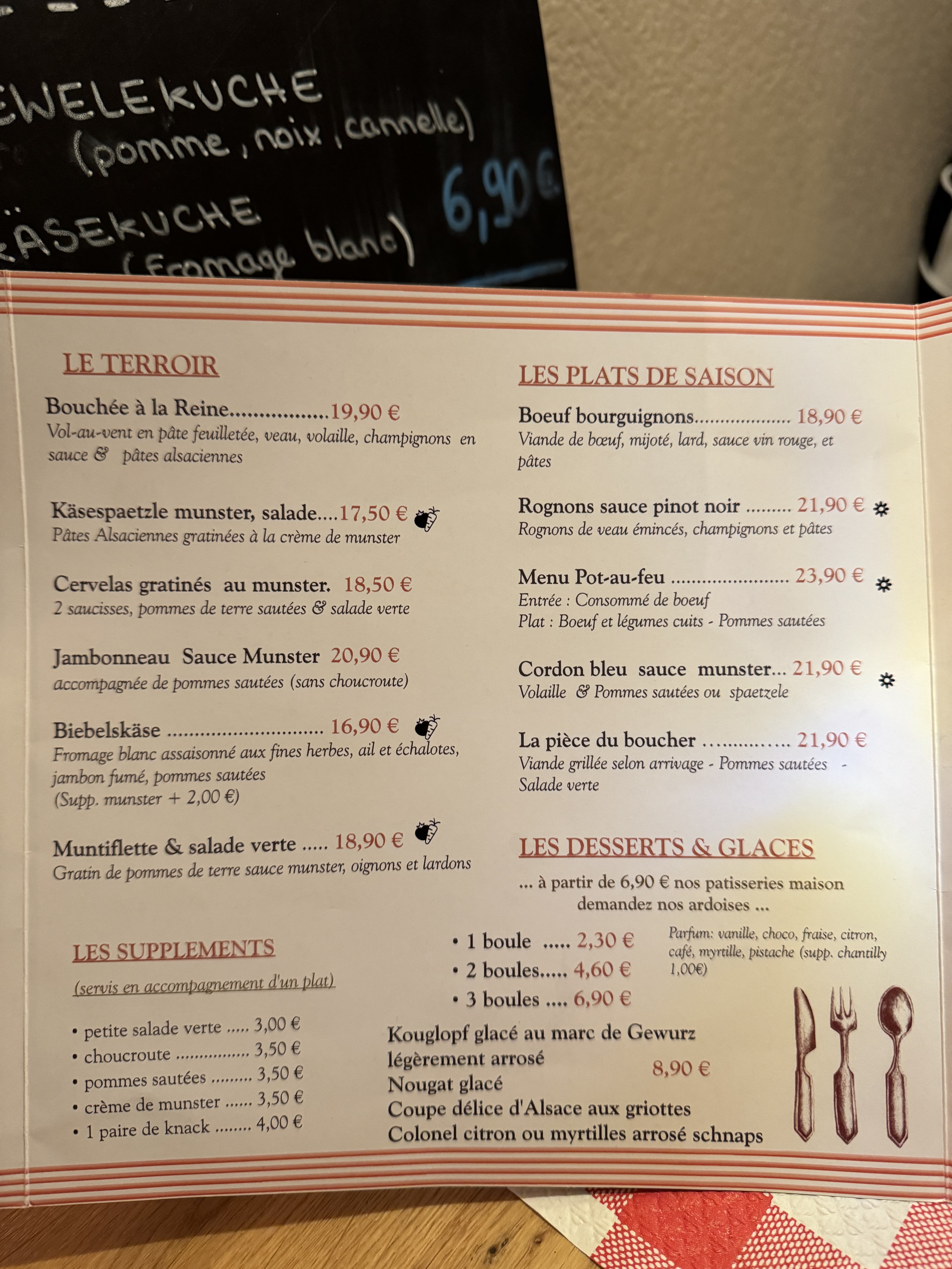 J’ai essayé la spécialité alsacienne BACKHOEFFE. Mais pas à mon goût. Ma femme par contre a essayé le cordon bleu, mais à la limite de l’acceptable….