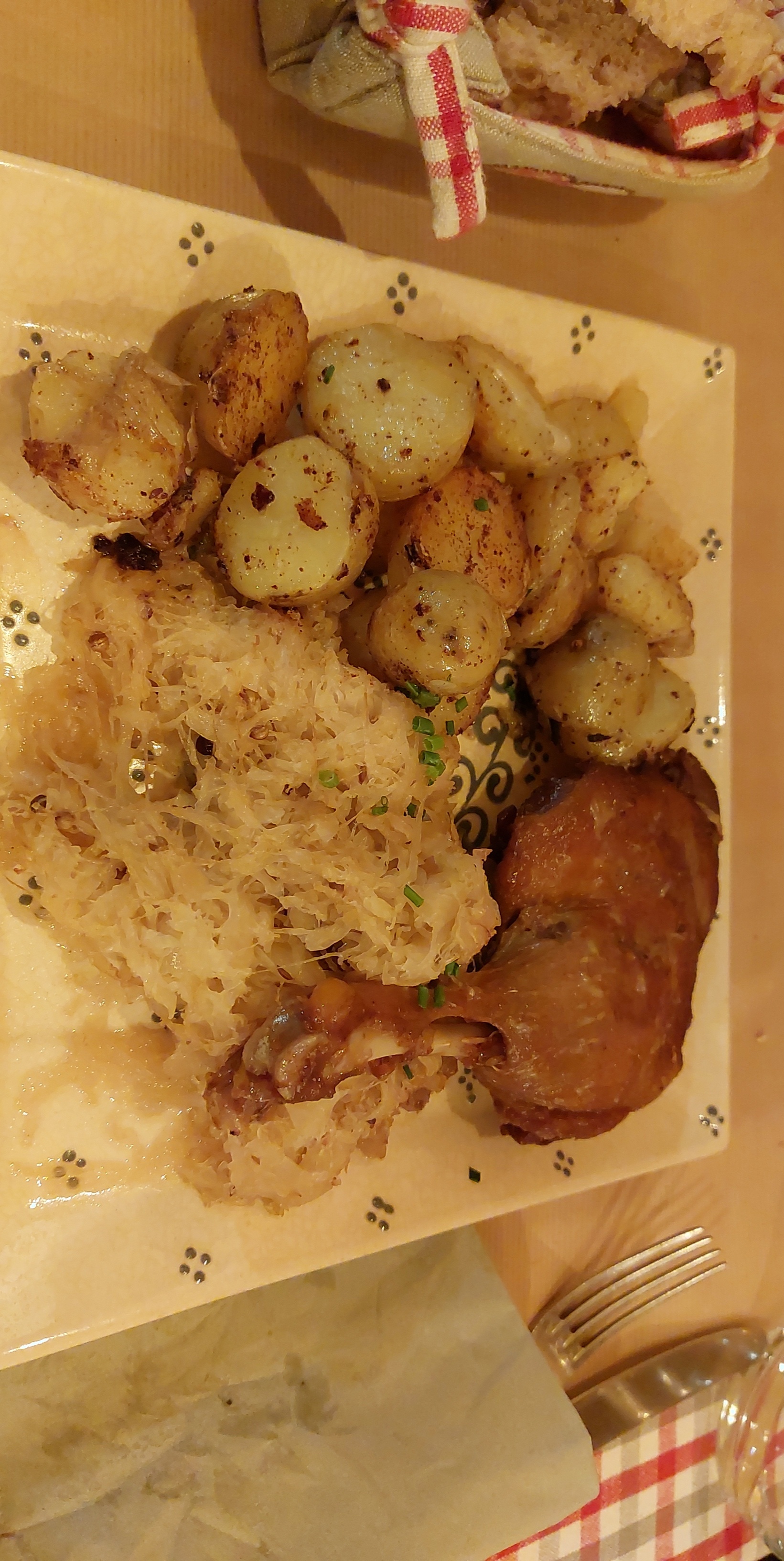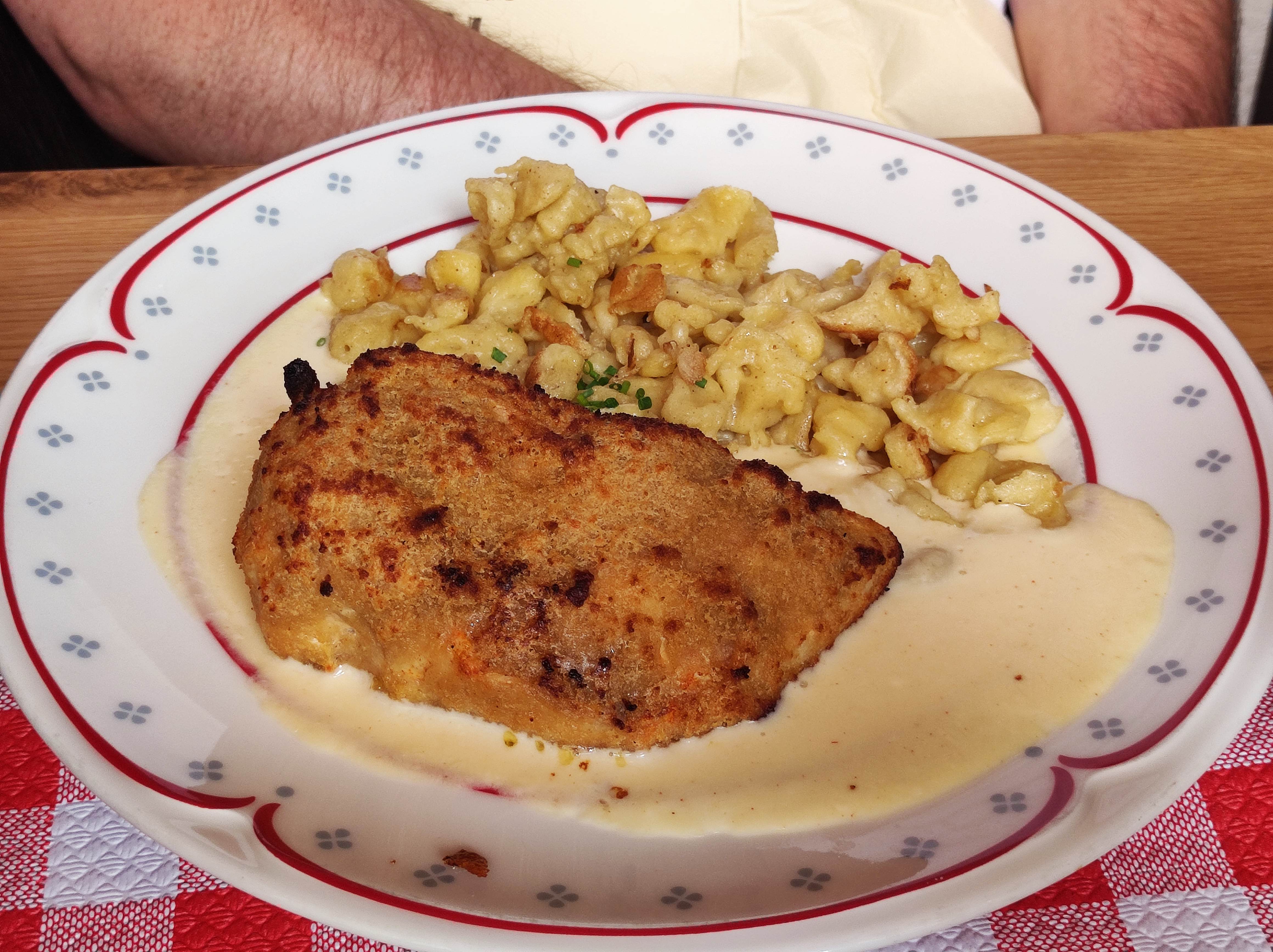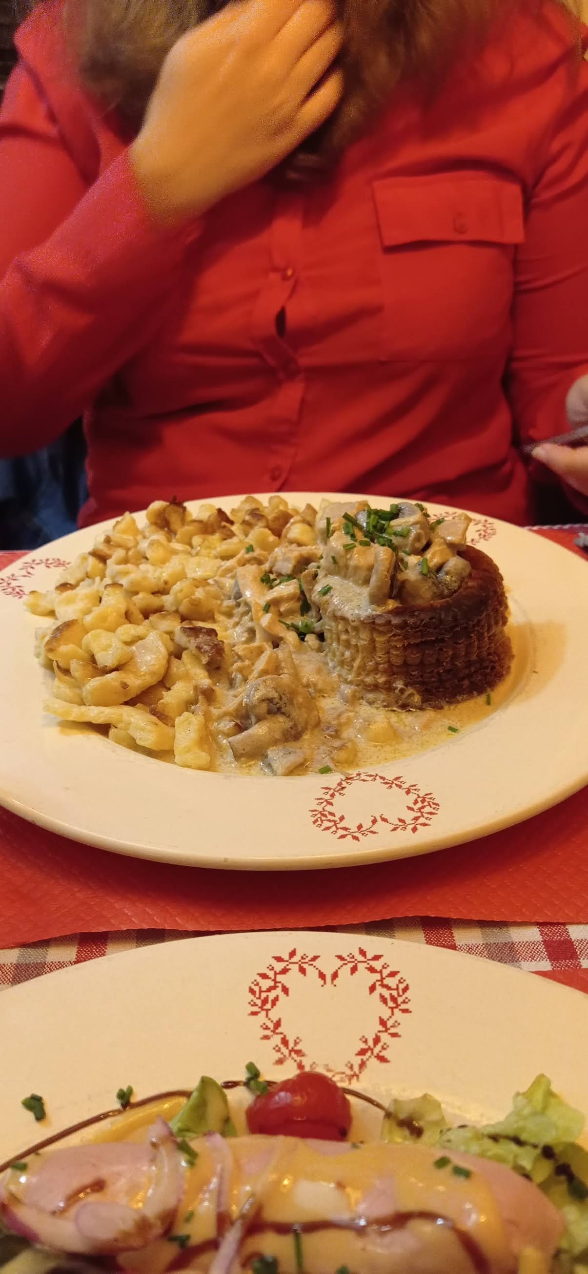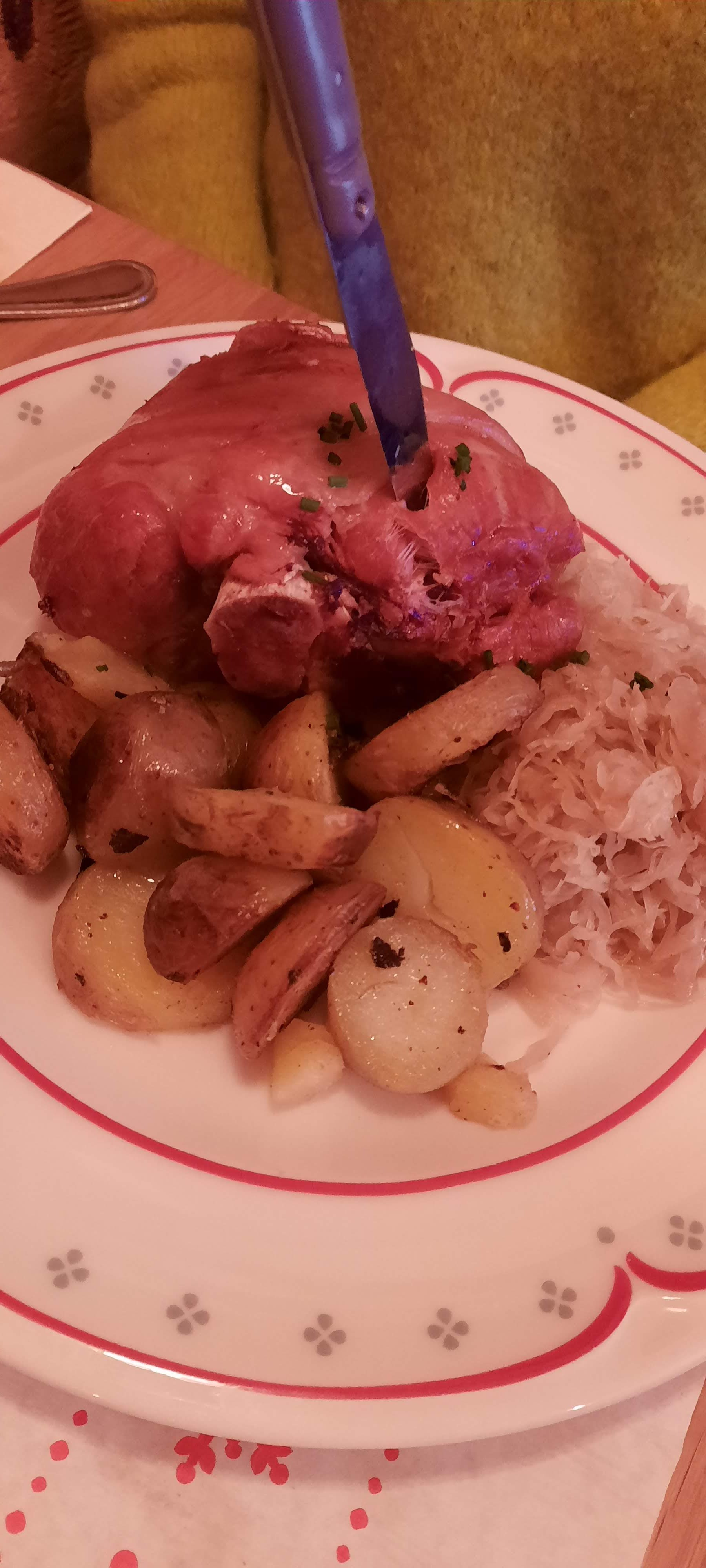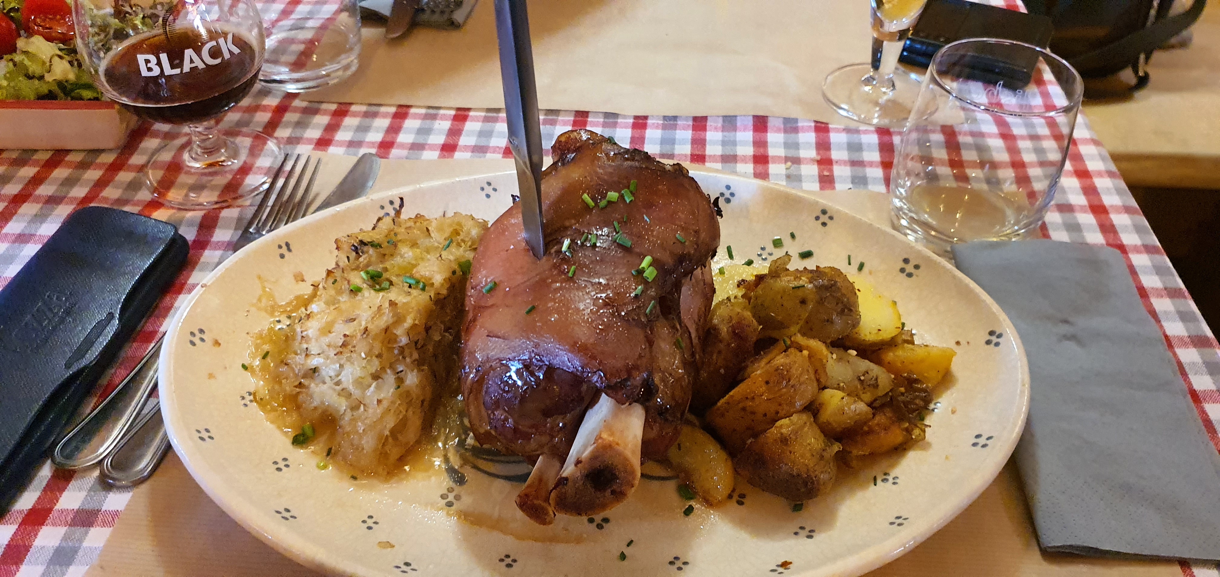 Tout était excellent ! La viande du jambonneau était vraiment délicieuse. Nous avons pris le cordon bleu sauce munster ainsi que je le jambonneau, ainsi qu’un verre de vin et un dessert par personne. Cela nous a coûté 37€ chacune. Rien à redire sur le service !