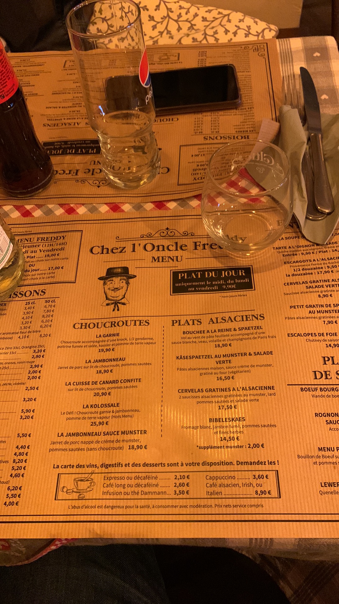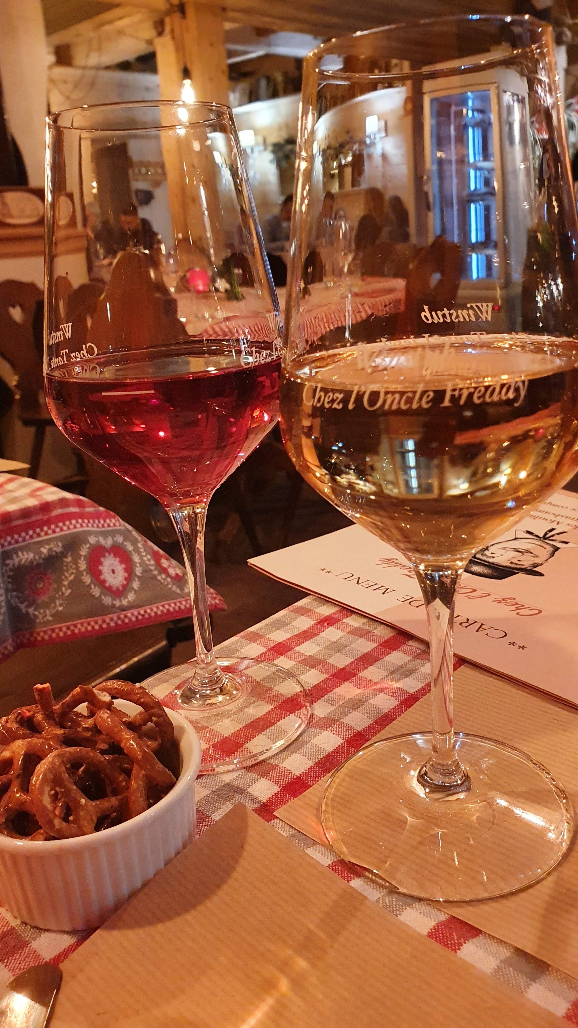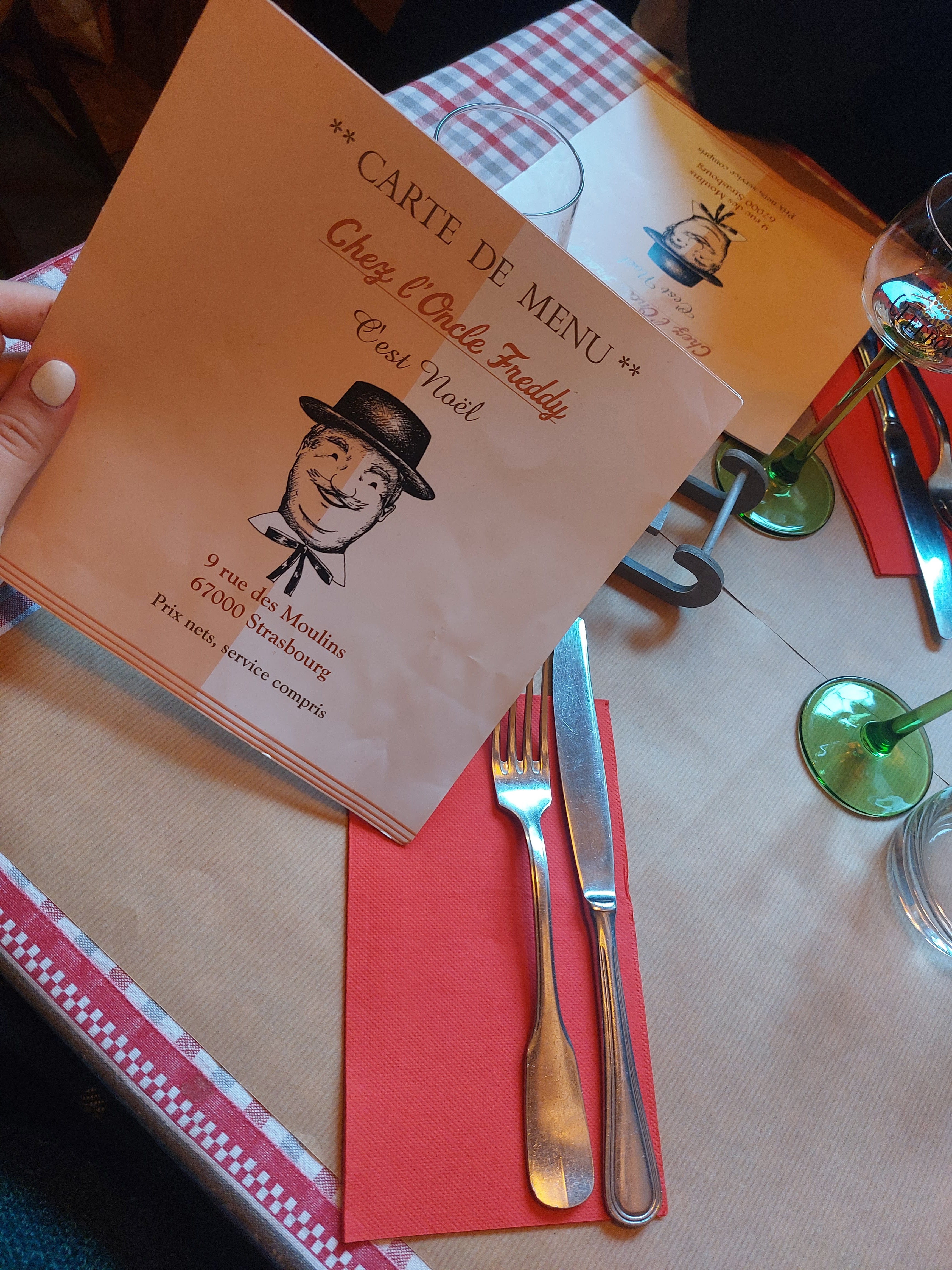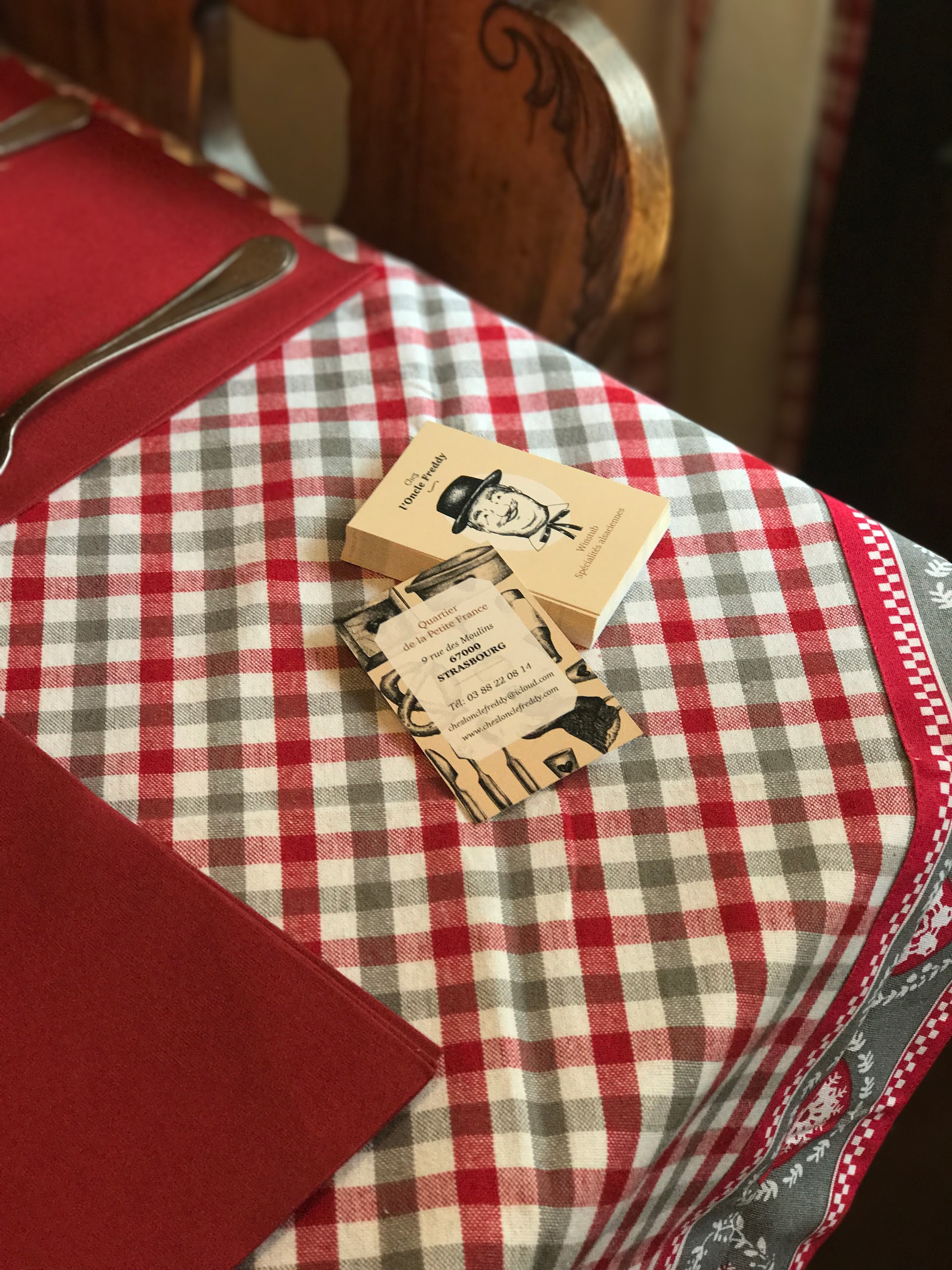 Chez l'oncle Freddy lors de notre passage hier soir, c'était un accueil chaleureux par des personnes professionnelles, des bons plats de la région dans une décoration alsacienne. Que demandez de mieux pour un restaurant d'Alsace en ville de Strasbourg ? Ah oui... de mieux : restaurant qui se situe dans la Petite France, magnifique endroit de la ville colorée. N'hésitez pas, c'était très bon. Bon conseil sur les choix de vins d'Alsace en fonction de ce qu'on a mangé. À très vite! Excusez mes photos qui sont pas très belles.