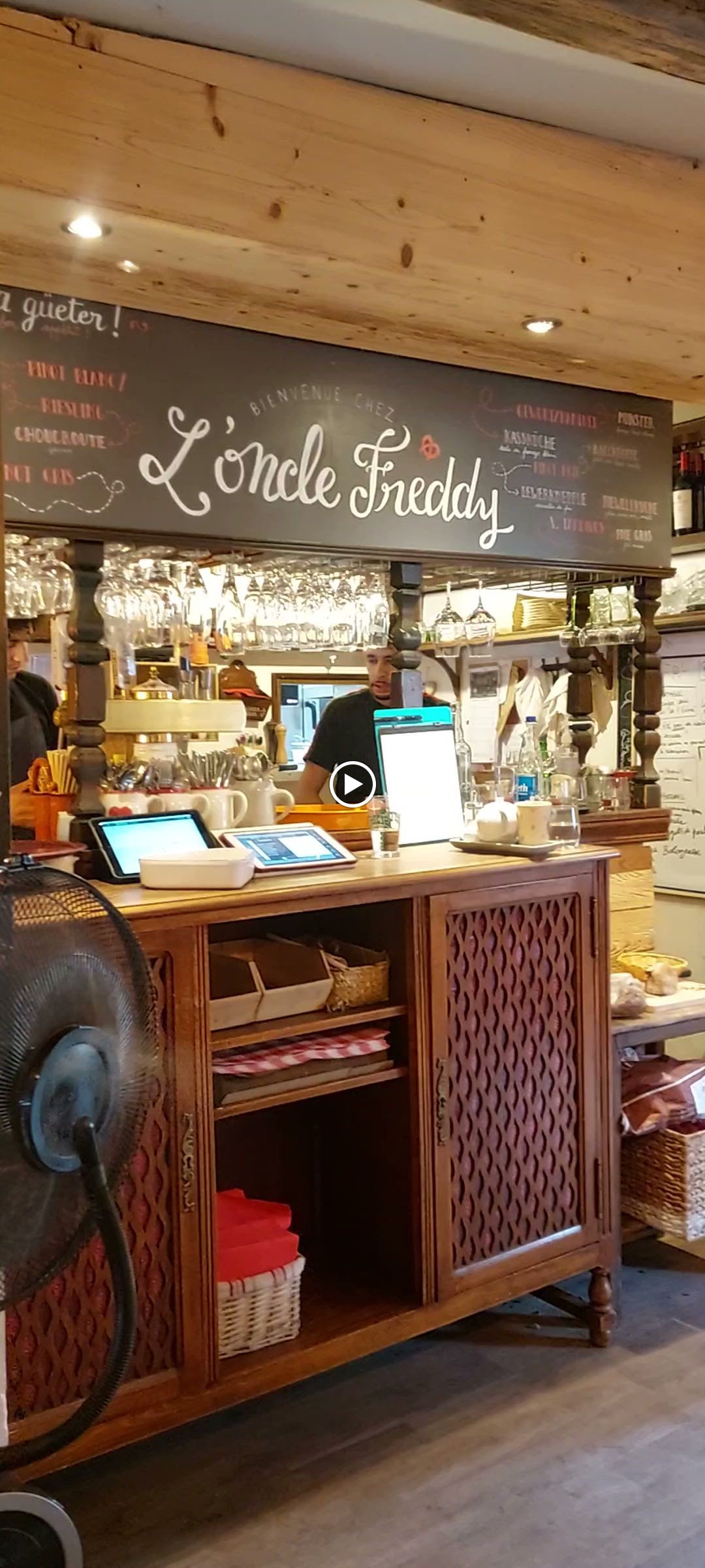 L'oncle Freddy, arrivée par hasard pour boire un verre. Malgré le monde, très bien accueilli, service top, la serveuse toujours le sourire aux lèvres, aimable Nous avons pu réserver une table pour le dîner dans la semaine. Service effectué par un jeune homme ce soir là, très avenant, drôle et soucieux du bien être de ses clients. Ravie. Merci