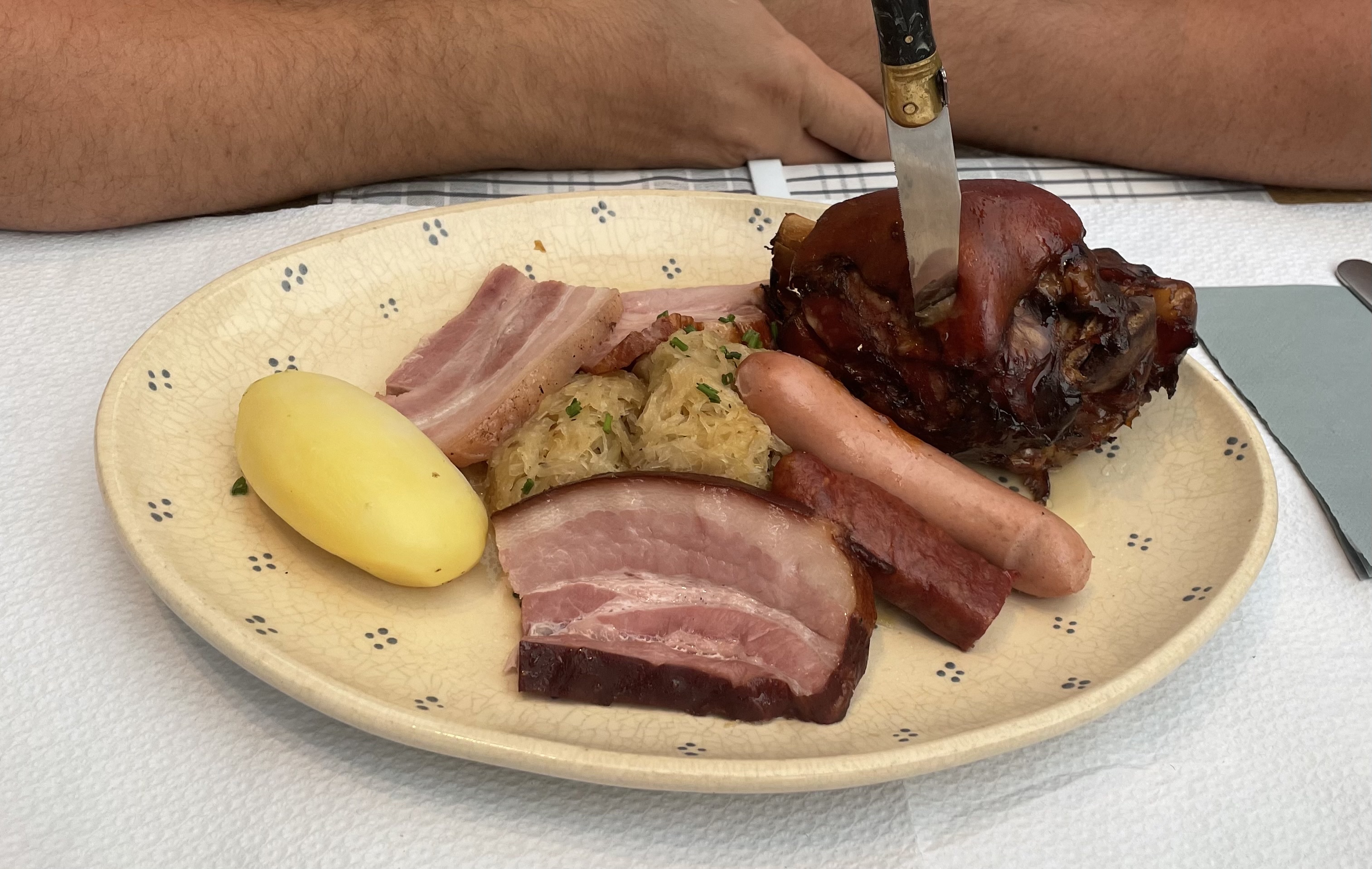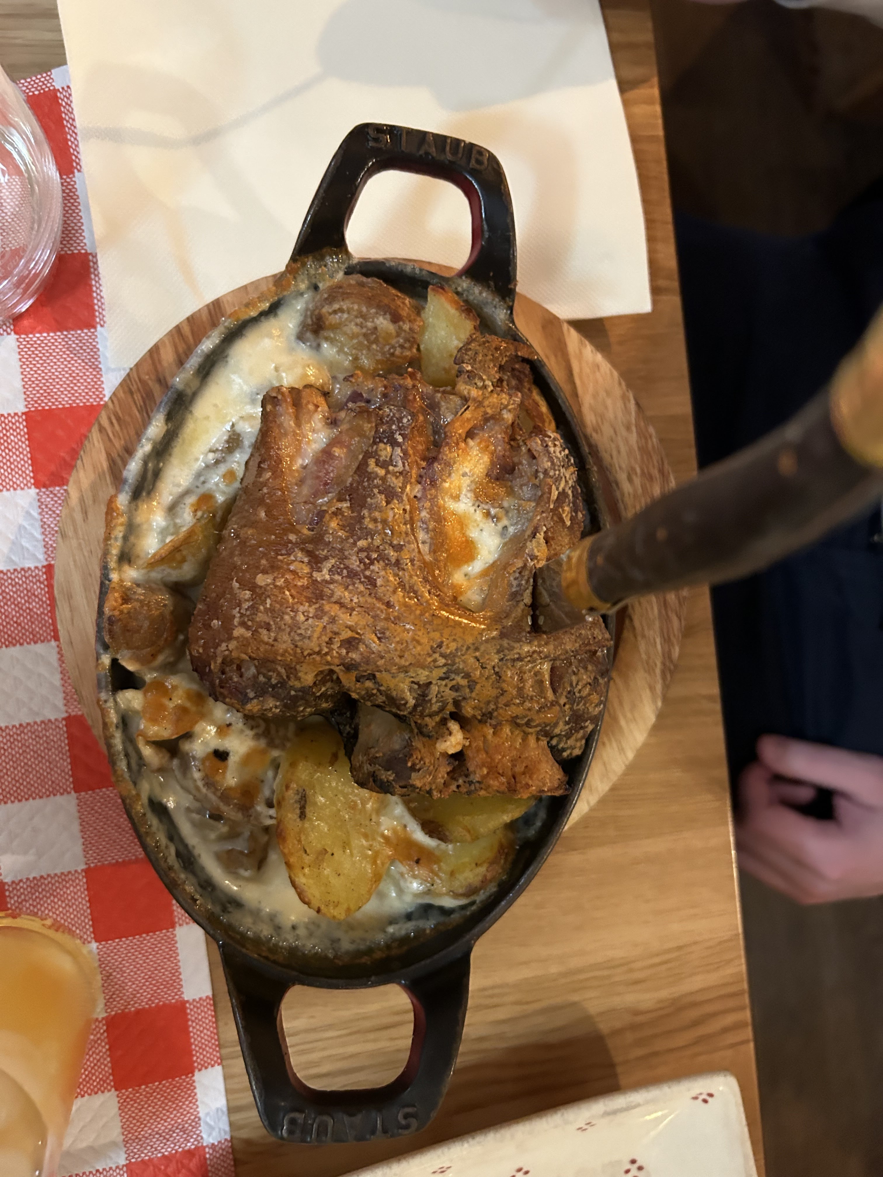 Je suis venu une fois avec des collègues en semaine, je suis revenu une deuxième fois avec ma compagne tellement j'ai apprécié mon passage la bas ! Les serveuses et serveurs sont adorables et attentionnés et nous ont fait passer un agréable moment. La nourriture est juste excellente ! Un jambonneau gratiné au munster (voir photo) très copieux, un baeckeoffe délicieux et lui aussi énorme et à la viande fondante. Je recommande aussi les spaetzle gratinées au munster. Tout cela était bon et en plus à un prix dérisoire pour la qualité des produits servis ! Je n'hésiterai pas à y retourner lors de mon prochain passage à Strasbourg.