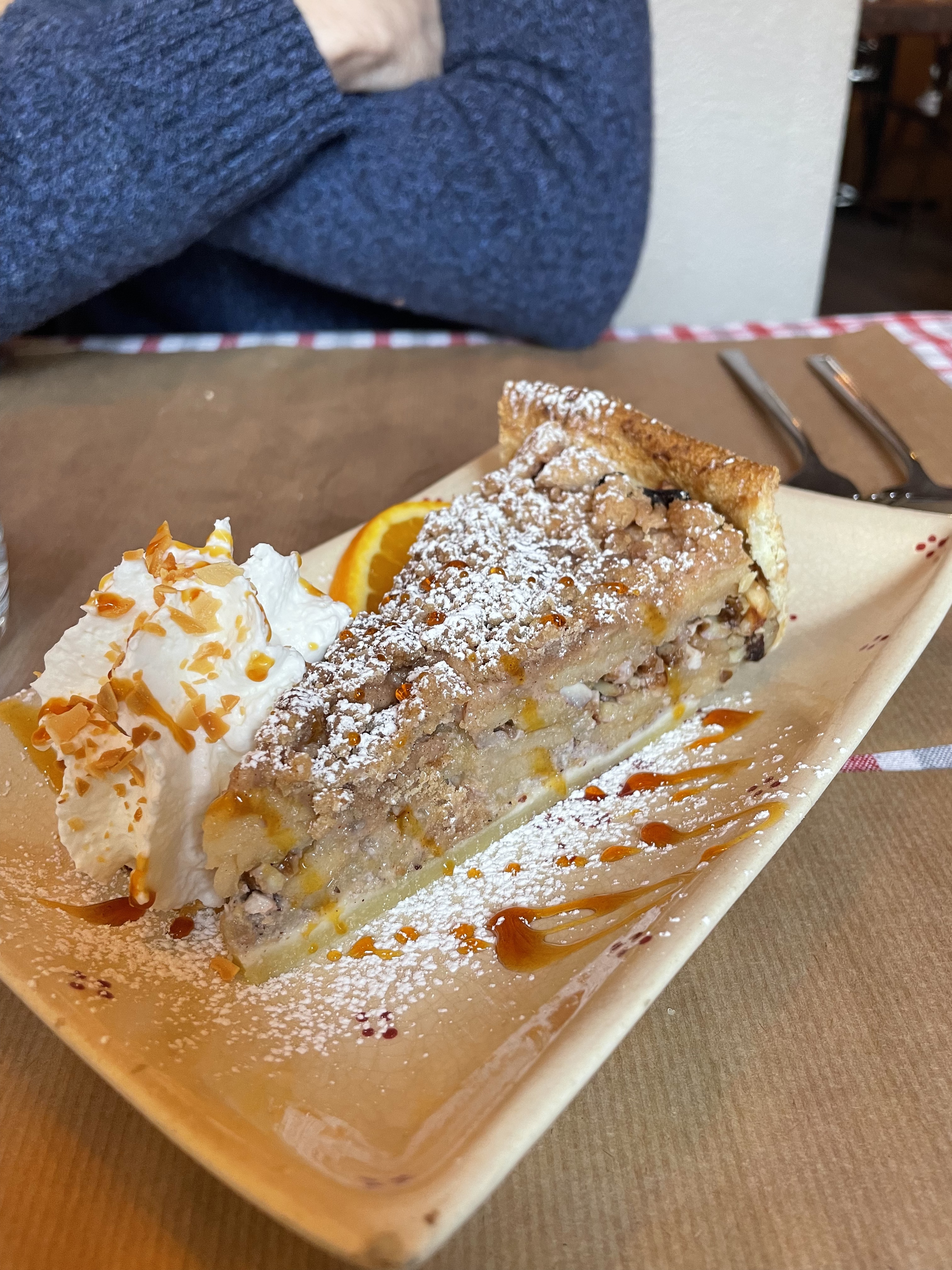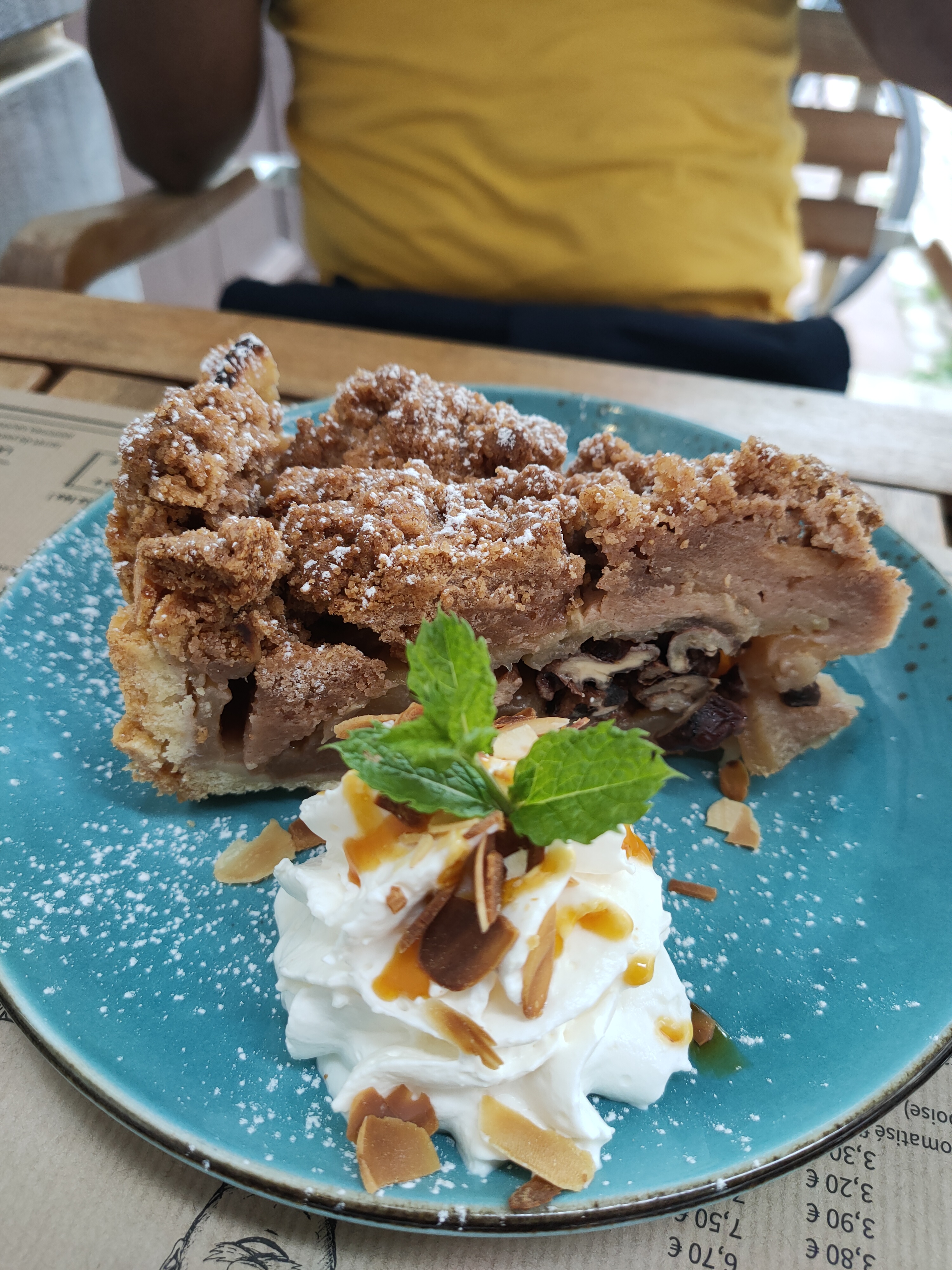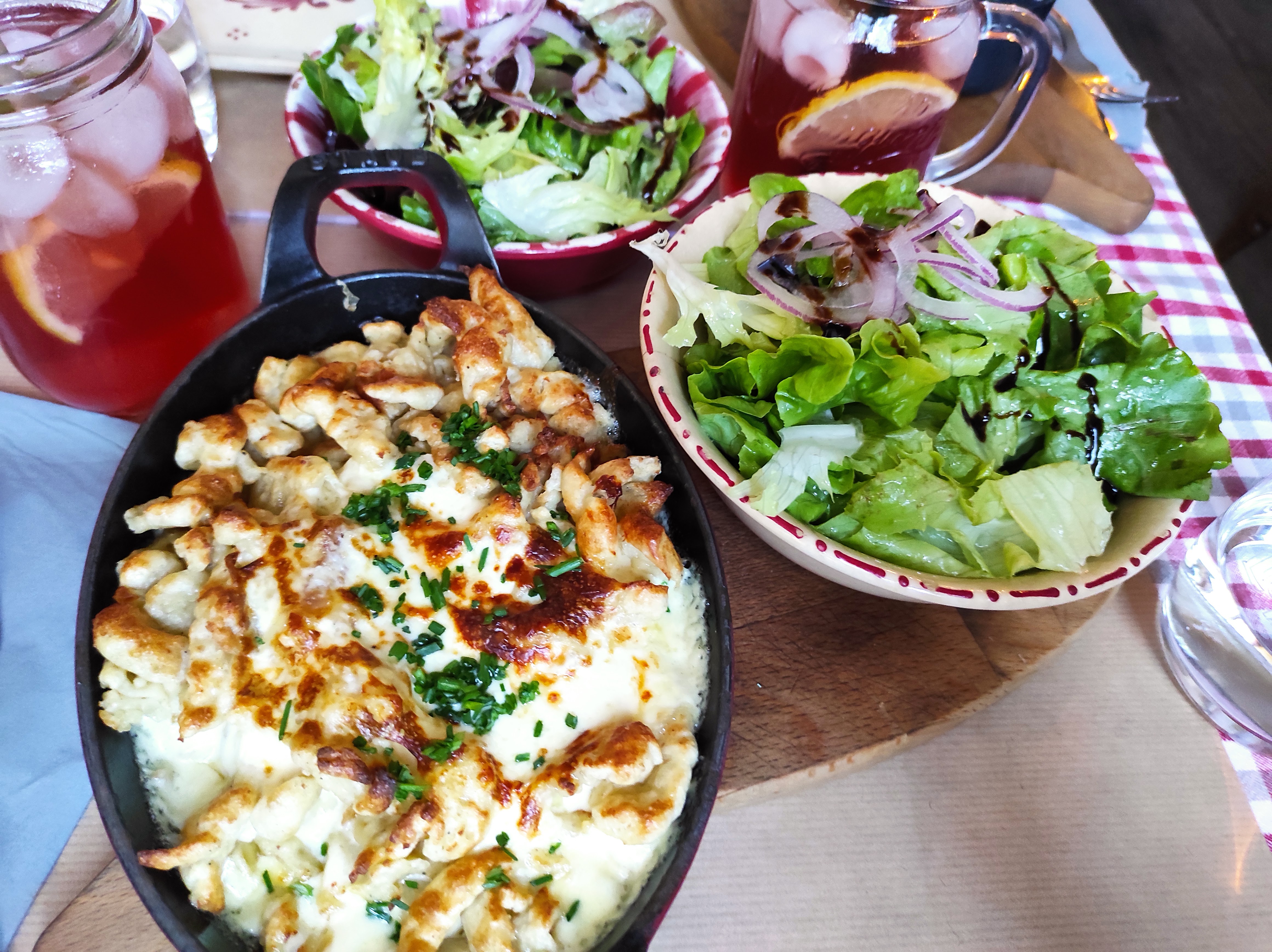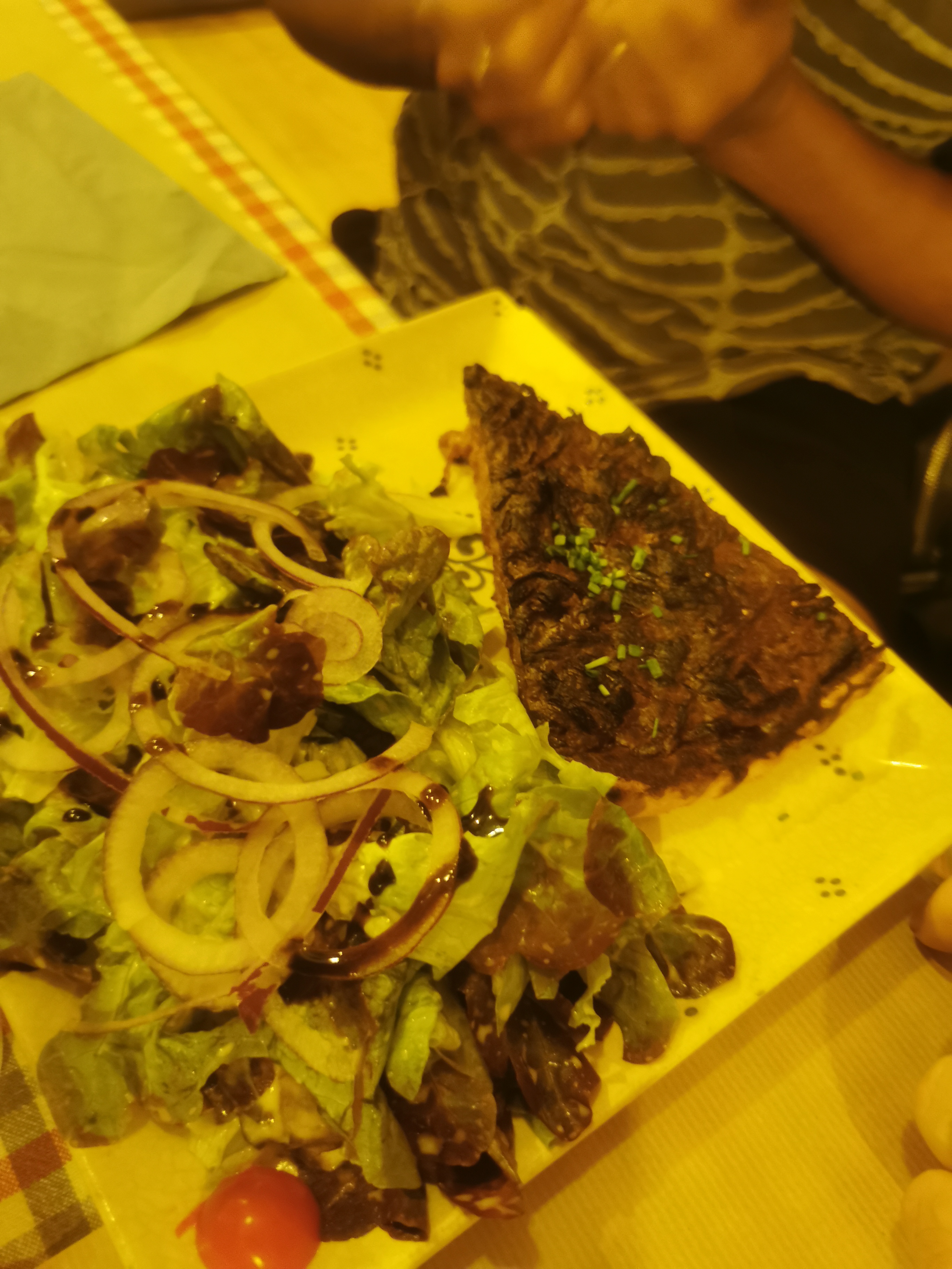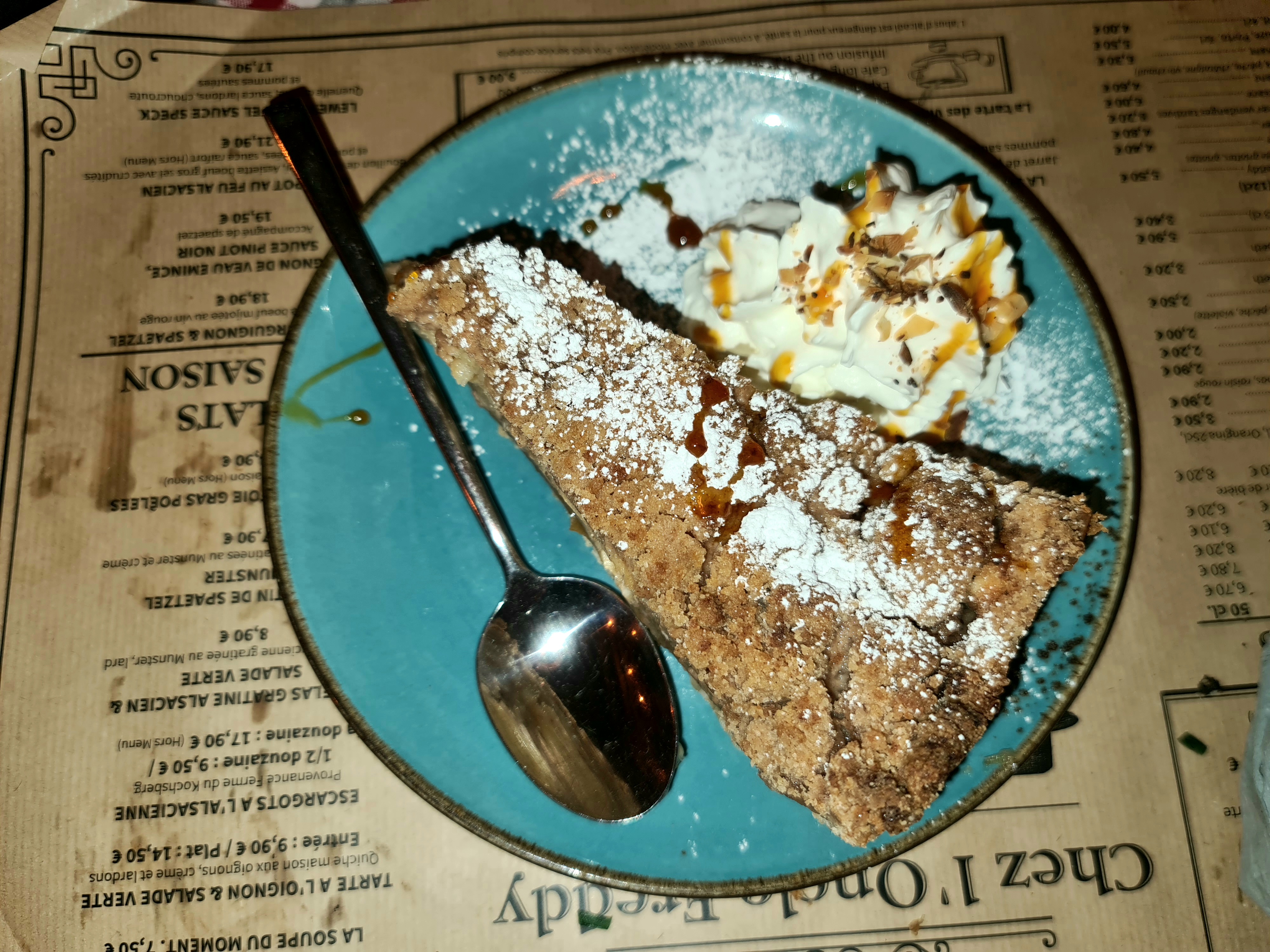 J'ai moyennement apprécié ma salade strasbourgeoise car il y avait plus de fromage que de salade verte, mais ce n'est qu'une question de goût personnel. Les serveuses étaient super sympas et très dynamiques, les tartes prises en dessert étaient excellentes et copieusement servies. J'ai vraiment aimé l'idée du dessert du moment (il semblerait que la carte des desserts change tous les jours).