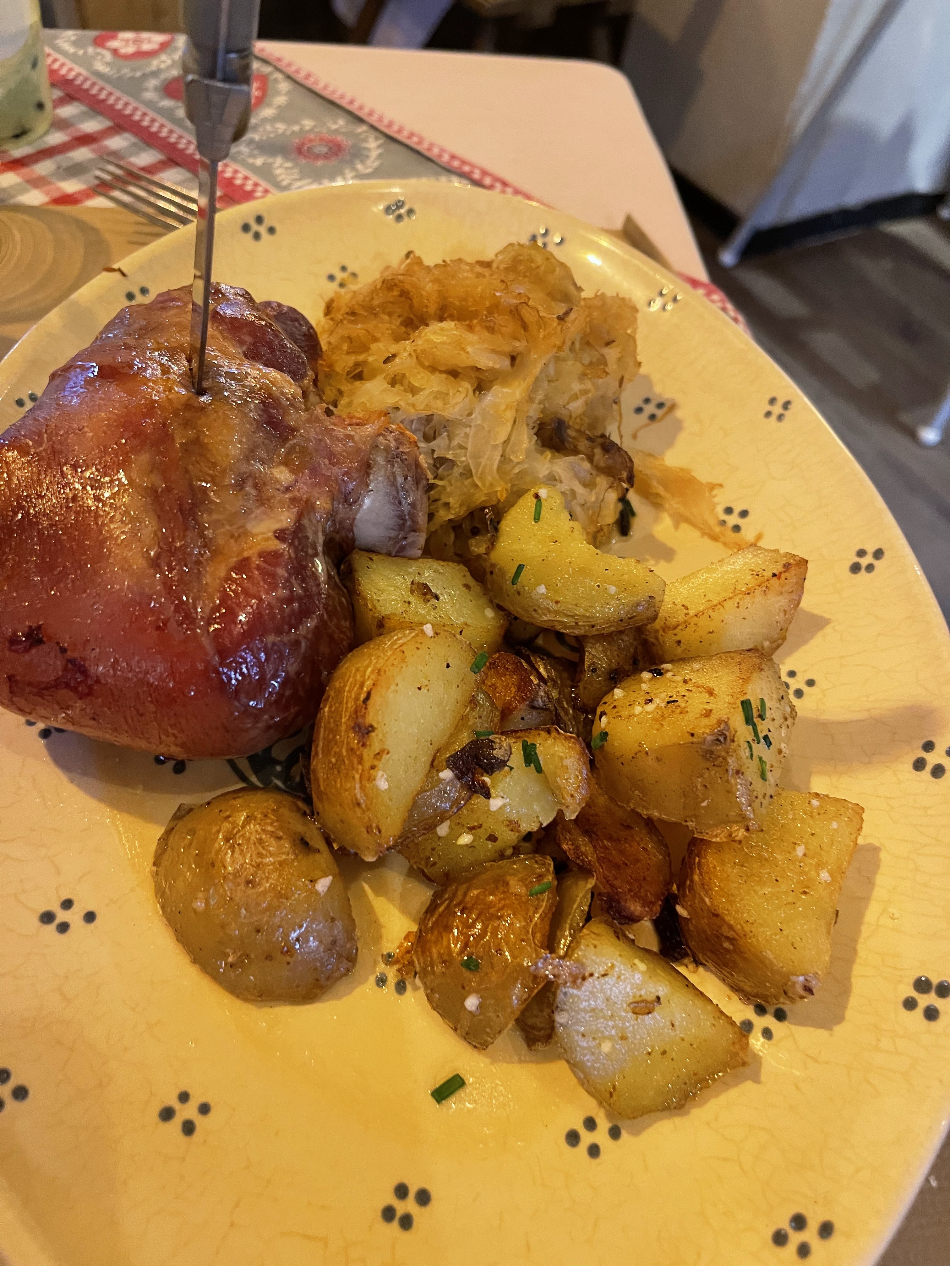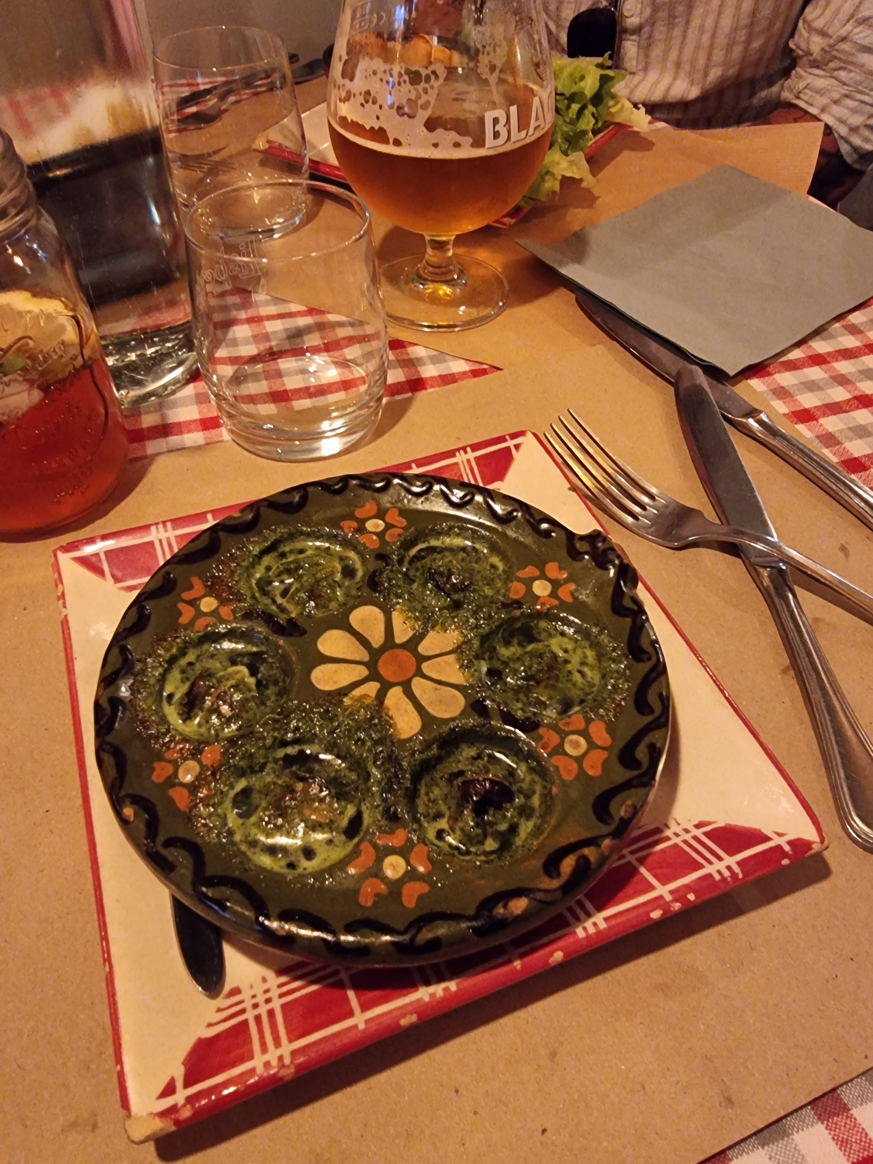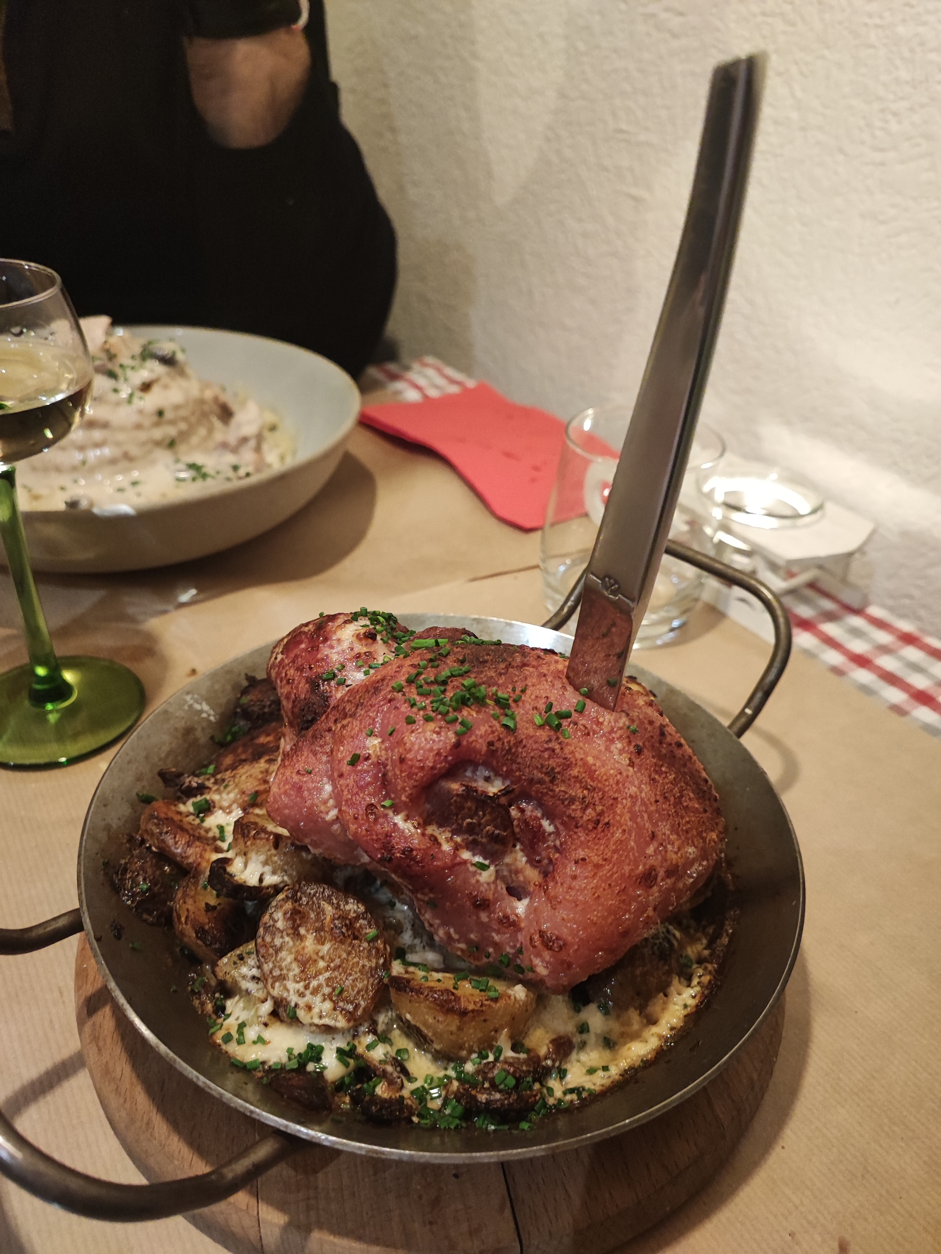 Une soirée parfaite. Nous avons débuté par leurs escargots à L'alsacienne (les meilleurs de ma vie) et ensuite leurs jarret de porc crème au munster, pommes de terre sautés. Une tuerie.... Et une bouteille de pinot noir d'Alsace à tomber et un acceuil plus que parfait. Que demander de plus.