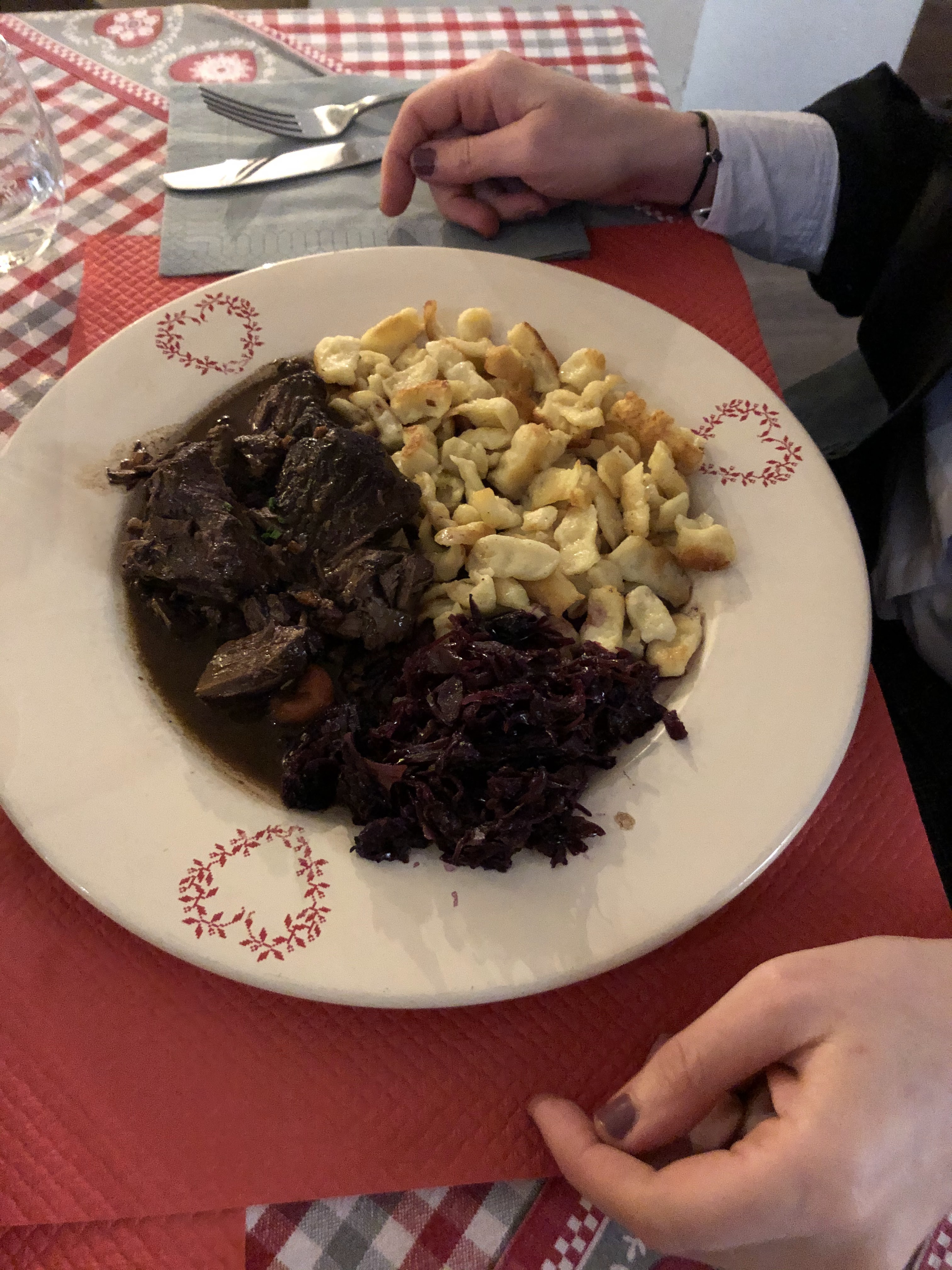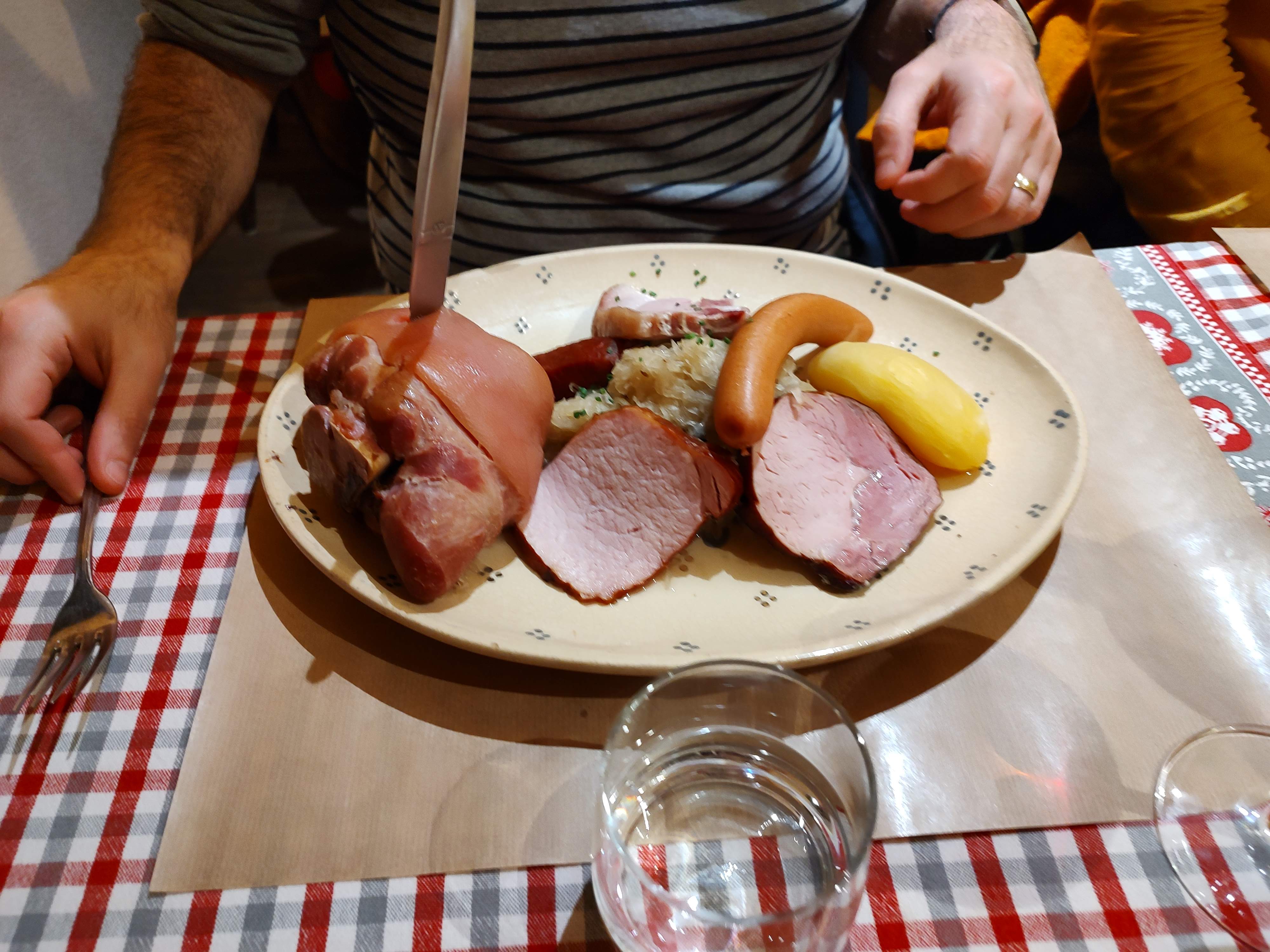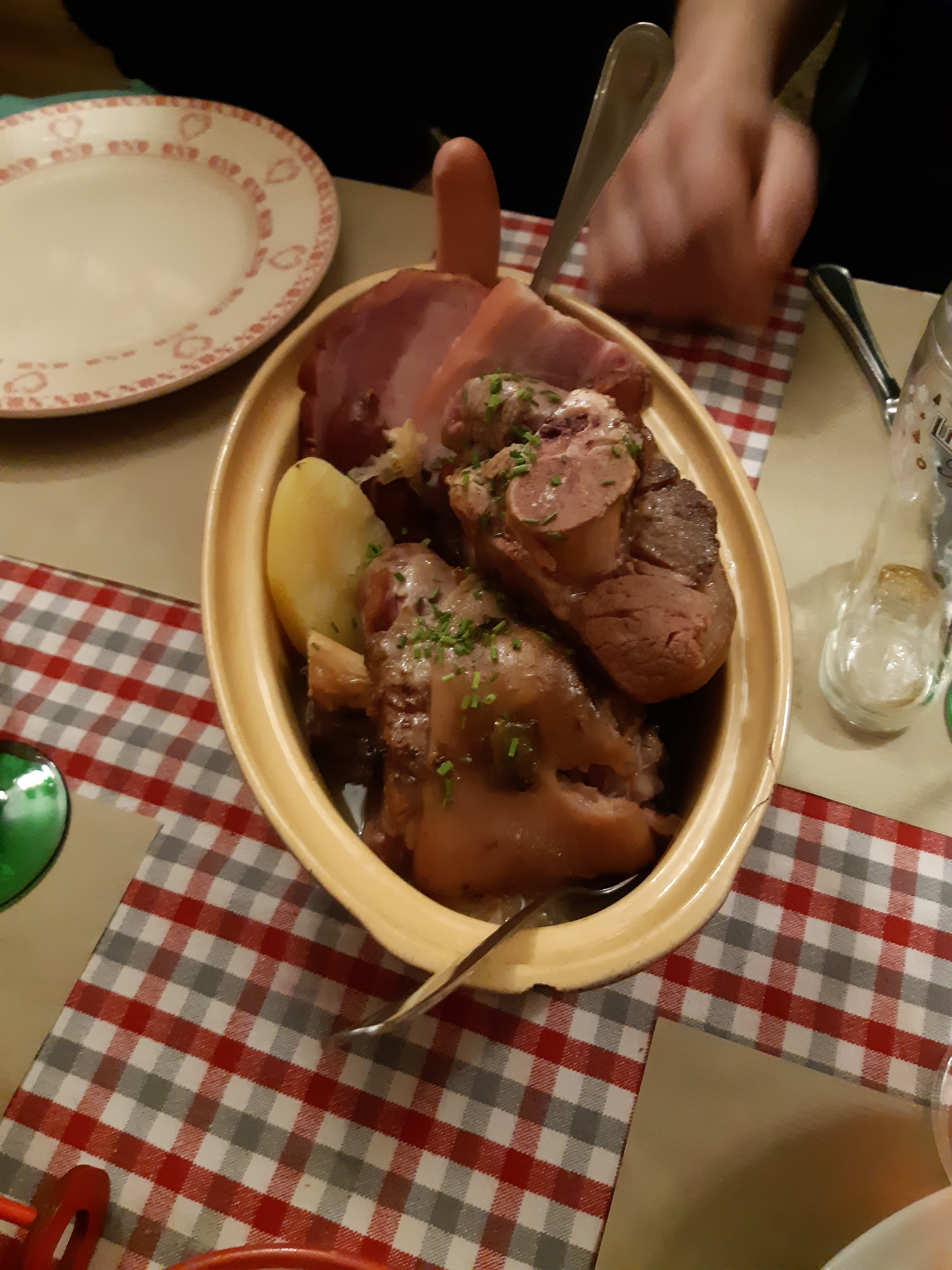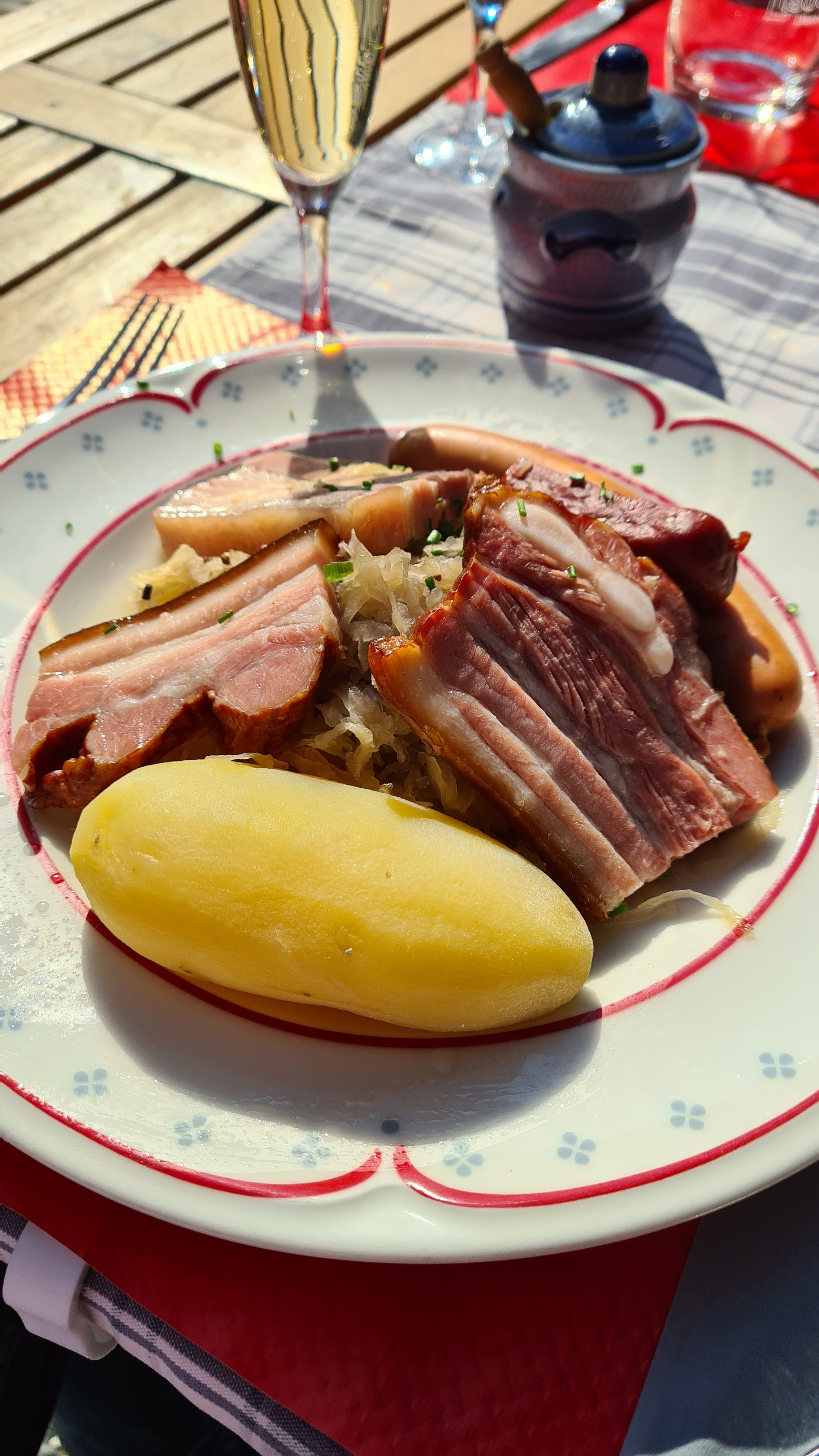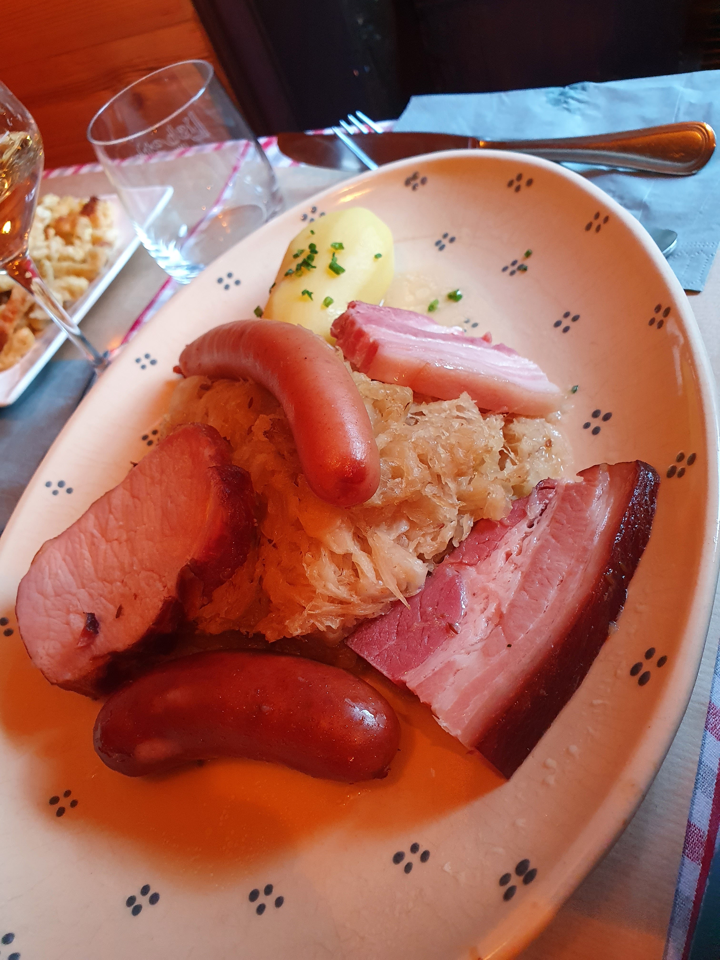 Une adresse authentique de Strasbourg, que je recommande ! Une très bonne ambiance, le service était sympathique et rapide ! Je me suis régalé avec mon Backoffen (une sorte pot au feu alsacien) accompagné d'un pinot noir 😉 Ps: réservation vivement conseillé