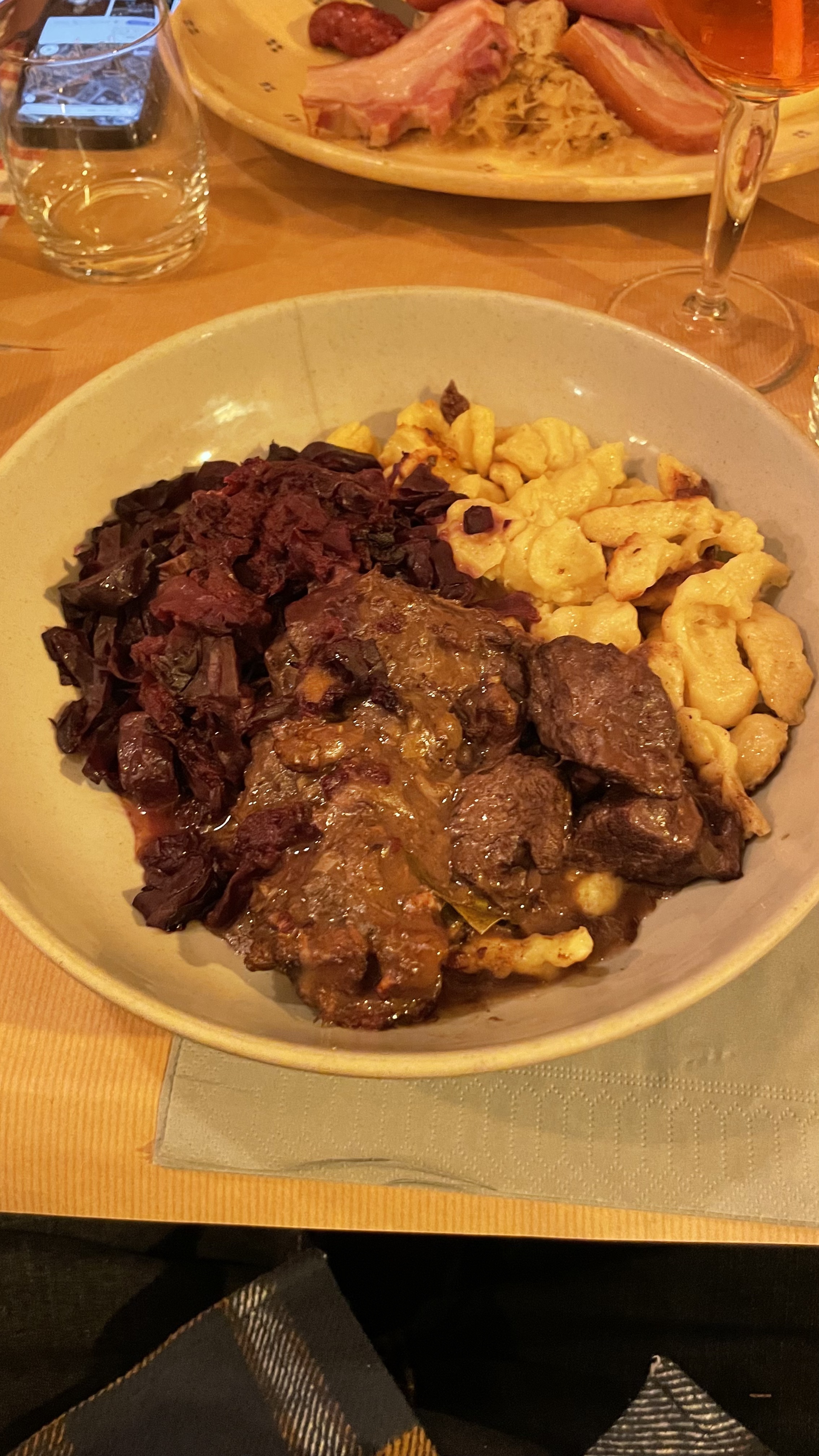 Un véritable restaurant alsacien. De la décoration à la taille des portions ! Et une service sympathique et jeune. Une belle soirée pour faire découvrir un aspect des plaisirs de la table et des verres en Alsace.