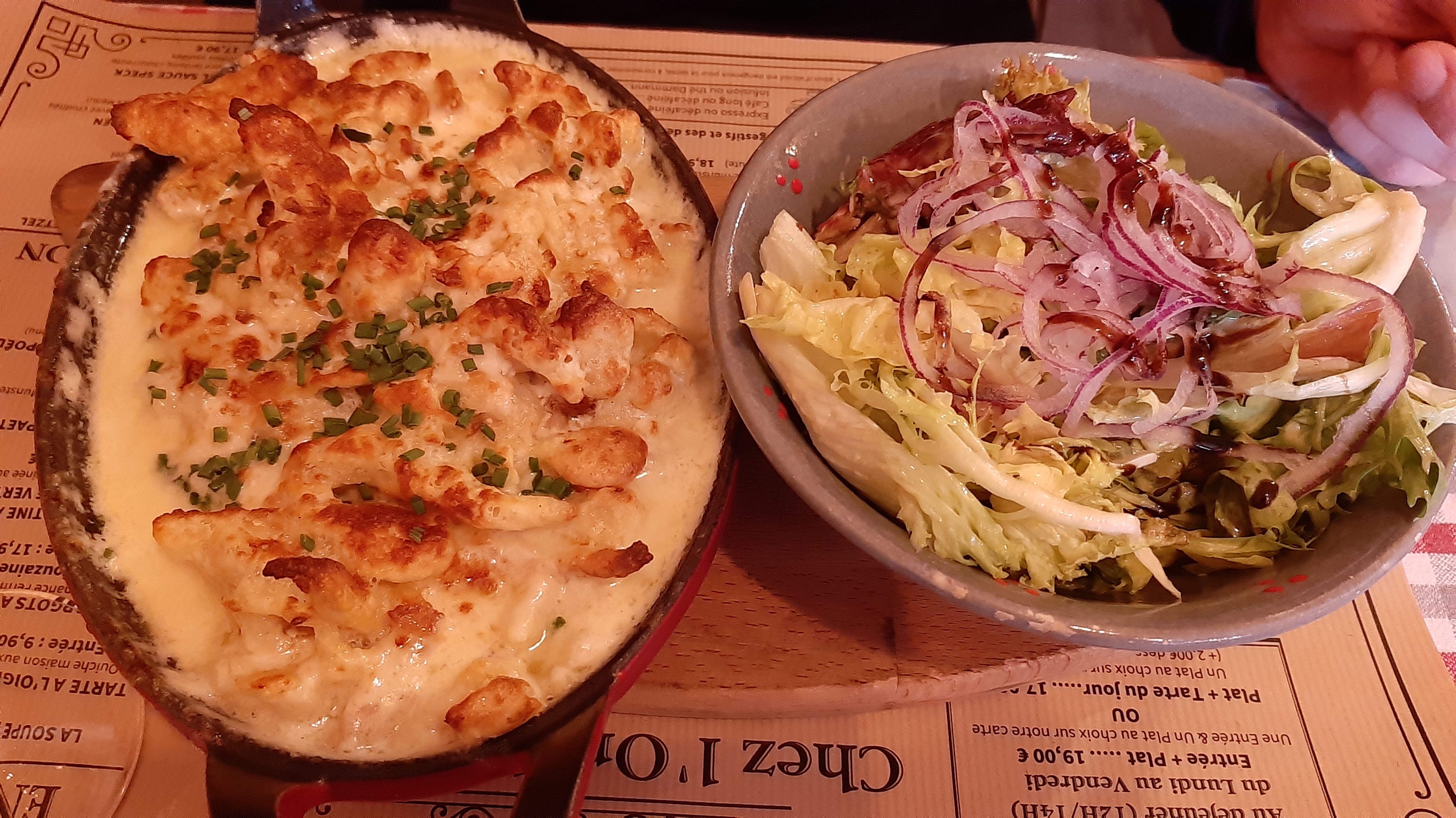 Un peu cher mais quartier du resto sympa. Soupe à l’oignon super bonne !! Je recommande! Bouché à la reine pas trop mal et tarte à la noix,pomme assez bonne Je recommande leur Brownie, également testé et super goûtu, fondant:) !!