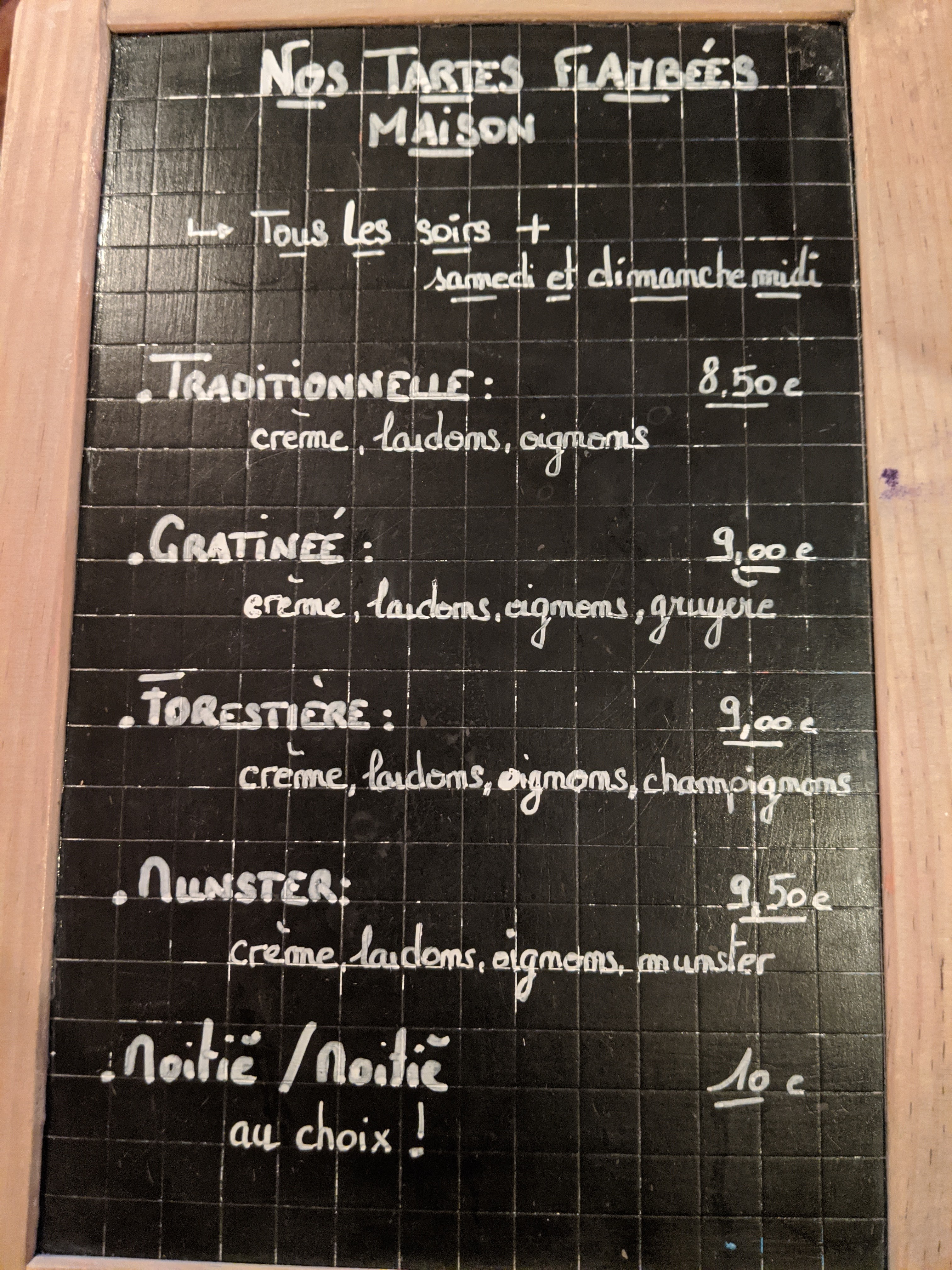 Nous avons malheureusement été déçus. Tous les plats au munster que nous avons goûté n'avaient aucun goût. La sauce munster n'en était clairement pas une. Si vous êtes amateurs de munster alors passez votre chemin. Le service était très décevant, nous étions obligés de demander plusieurs fois pour avoir quelque chose et attendre longuement avant que la table soit débarrassée. Le seul point positif est la situation du restaurant. Nous sommes peut-être mal tombés ce soir-là, mais c'était une première et une dernière pour nous.