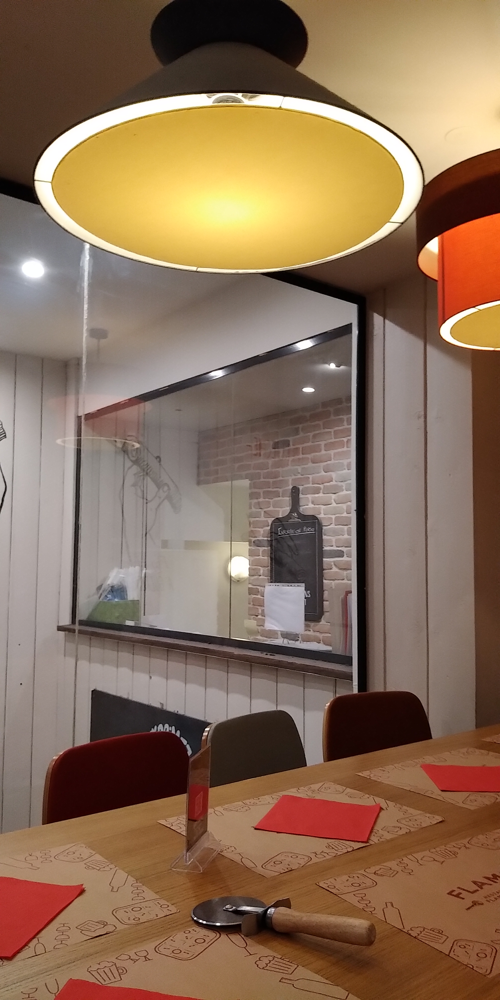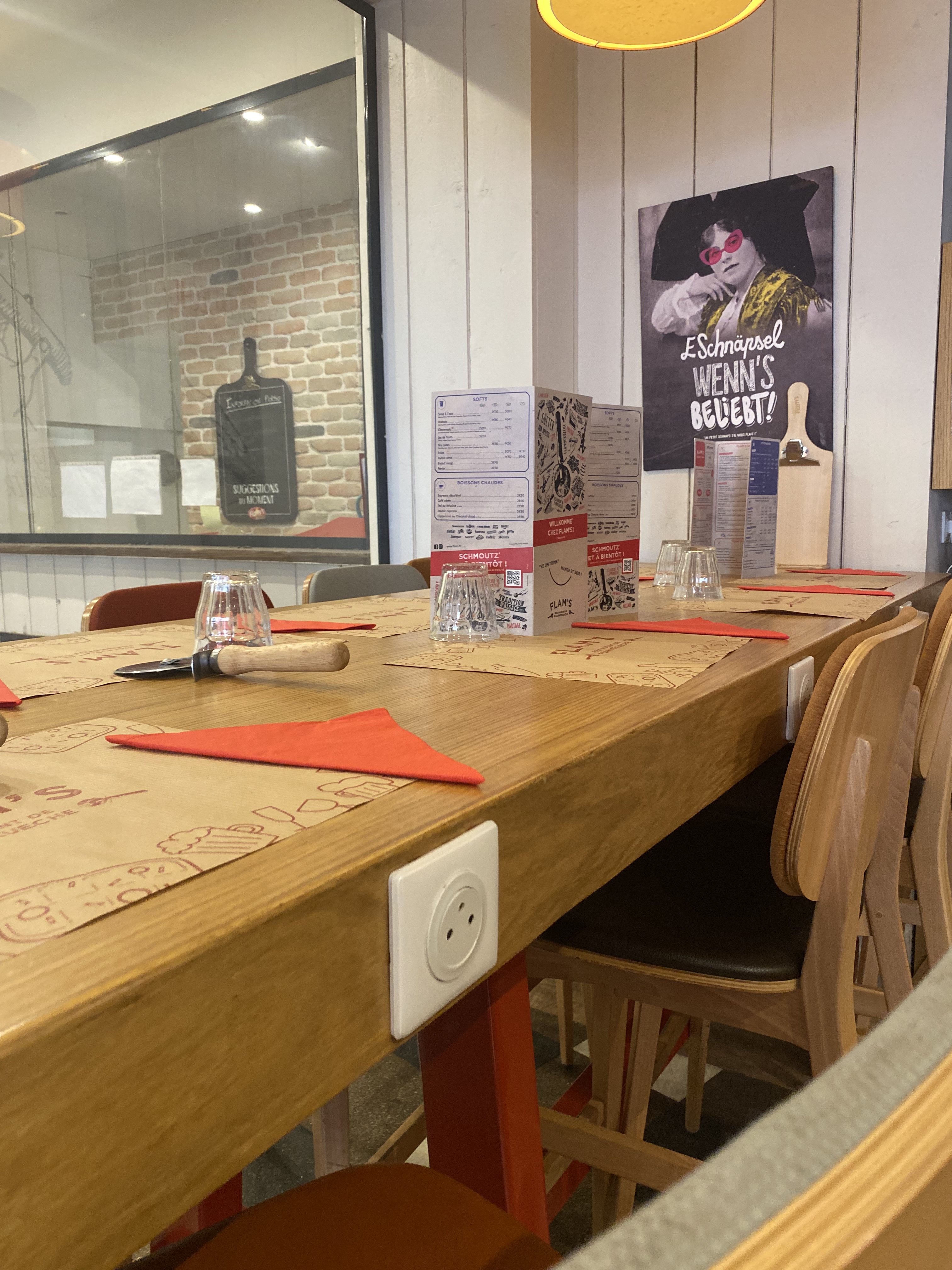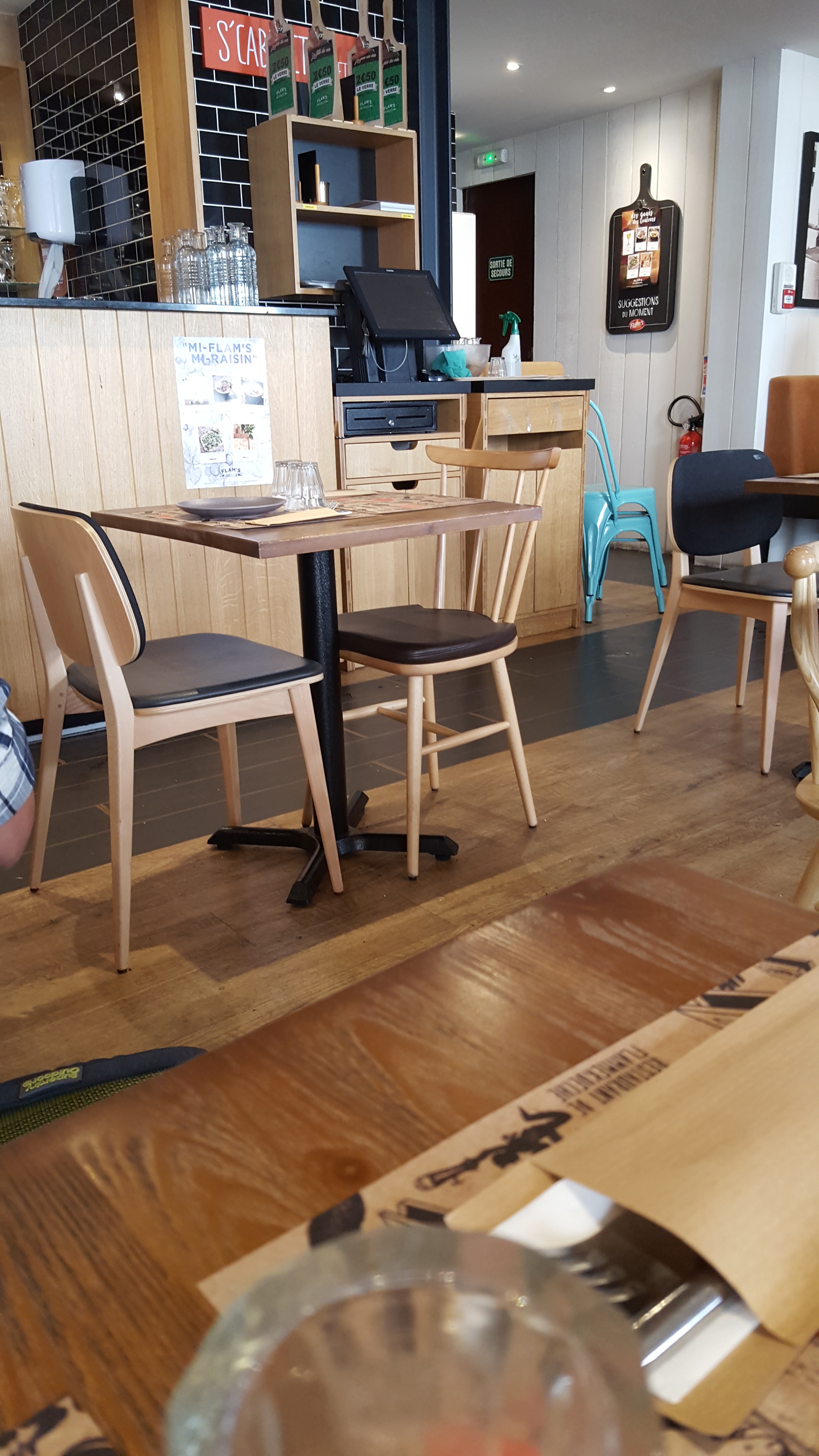 Je ne suis jamais aller à un Flam’s mais pour un premier passage c’est vraiment une bonne expérience. La serveuse blonde qui s’est occupée de nous était très souriante, aimable, elle nous expliquait le concept du restaurant. Les flammenkueche sont très bonnes, bien garnies. La formule a 14,50€ où nous pouvons avoir à volonté toutes les flam classique est super bien pour pouvoir découvrir les recettes classiques ! Service vraiment très rapide, pour la formule c’est vrai que ça s’est enchaîné très vite, voire trop vite on a pas pu savourer en prenant notre temps :/ Mais je recommande ce restaurant, c’est vraiment bien !