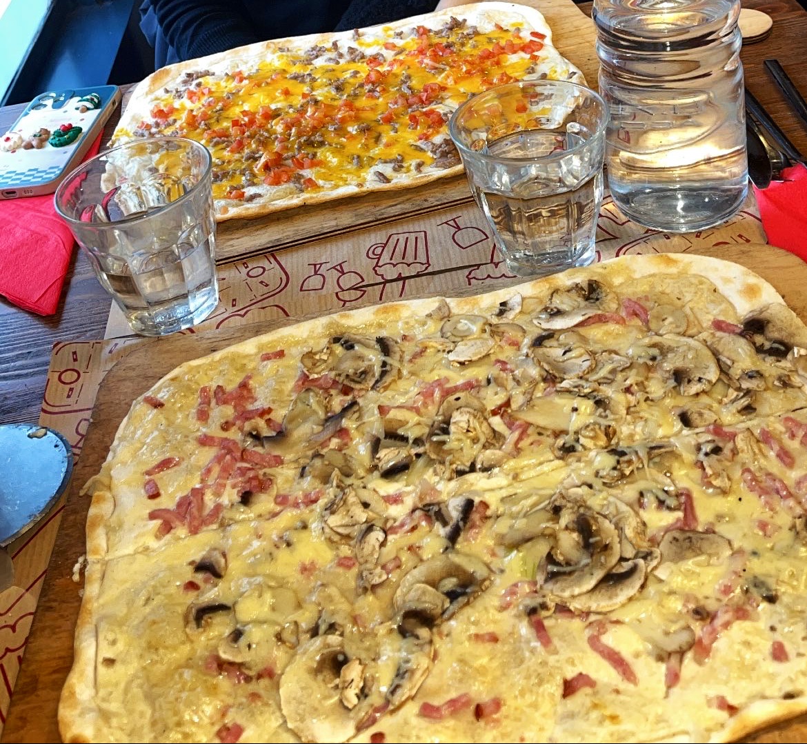 Très bon rapport qualité prix pour une formule flammenkuech à volonté. Les flammenkuech sont bien garnies et la taille est idéale pour les partager. Le restaurant propose également des boissons pour un prix raisonnable. C’est idéal pour un after work. Le service est rapide et fait avec le sourire. Le restaurant offre un cadre chaleureux cohérent avec les valeurs du restaurant.