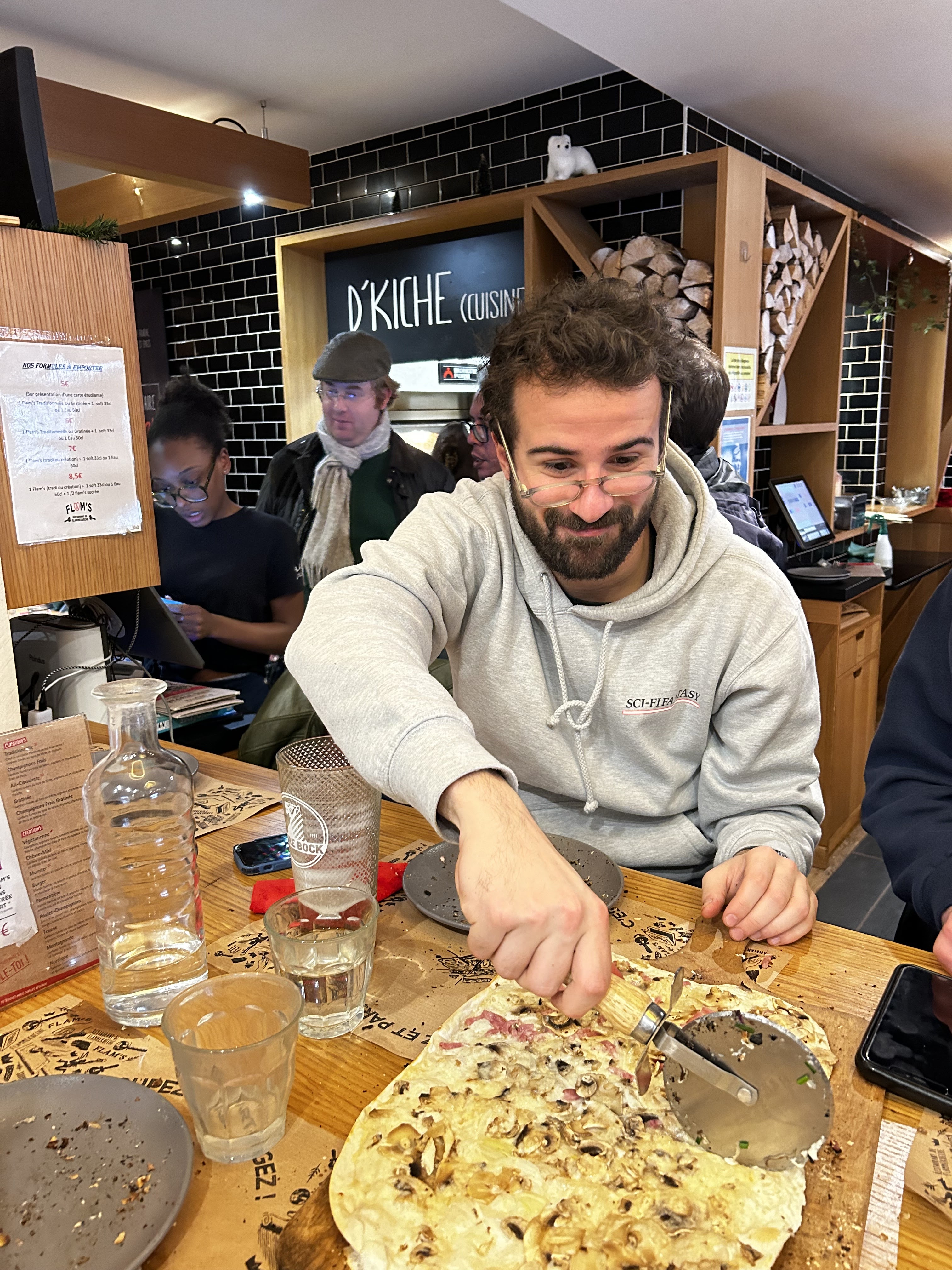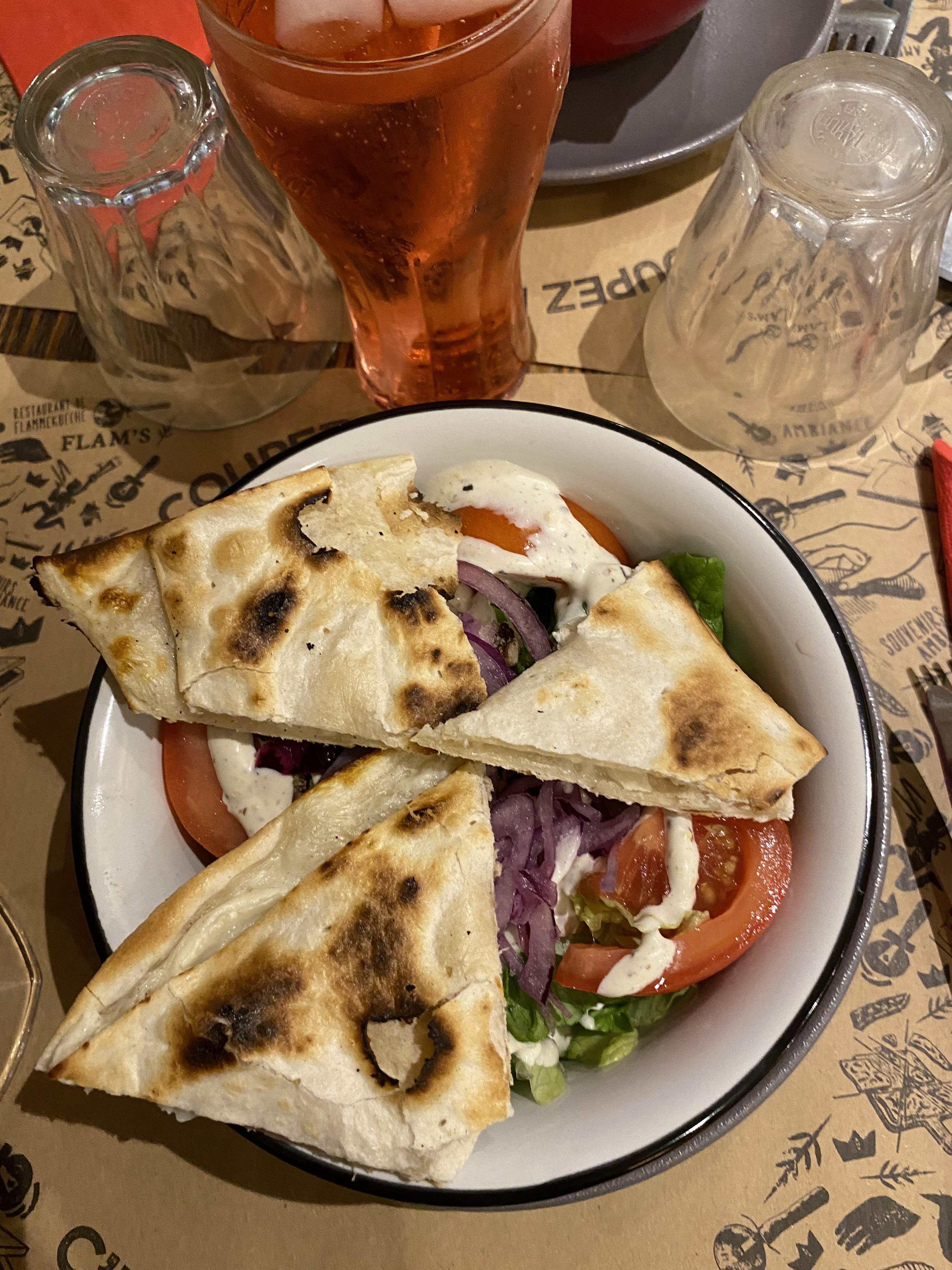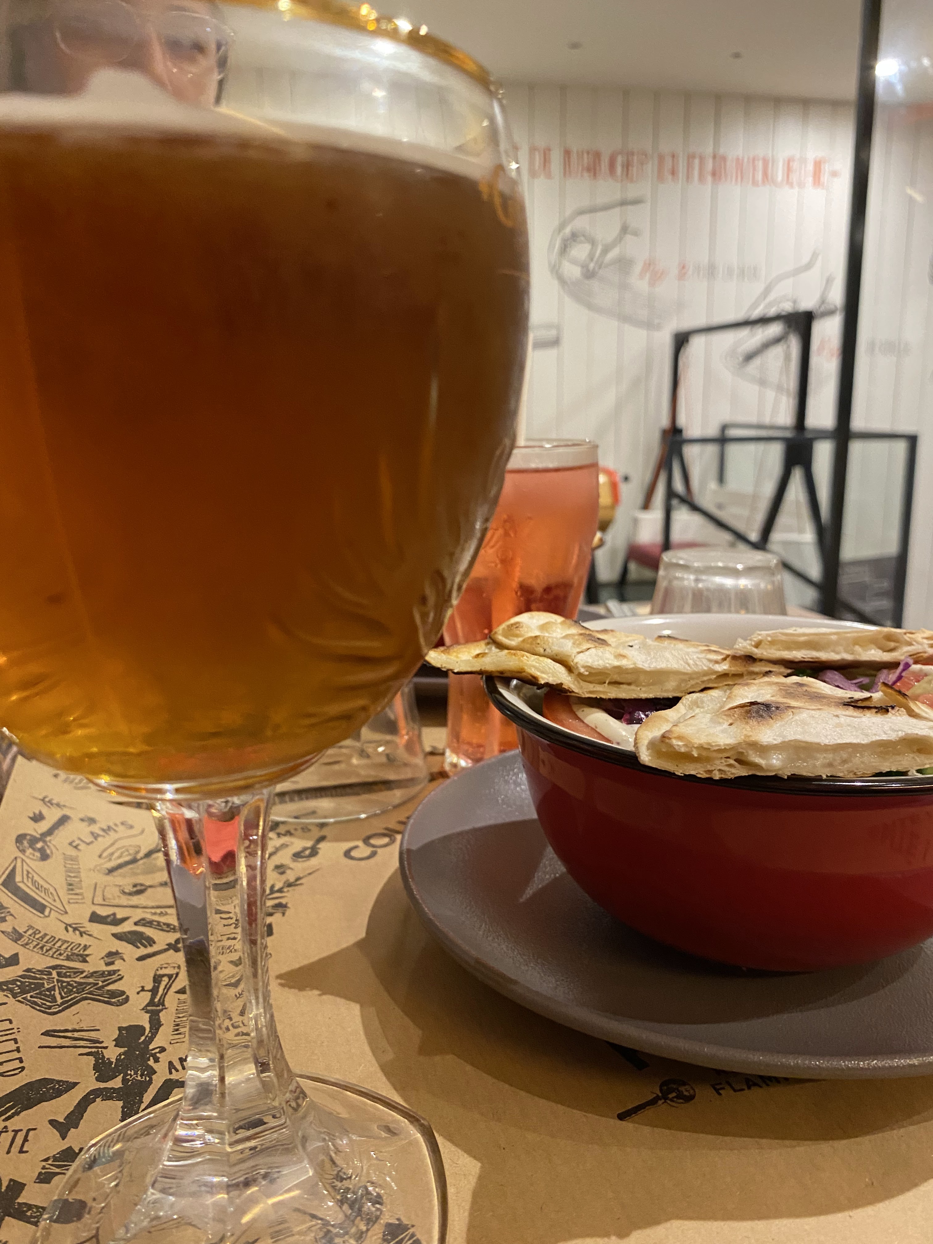 Pas exceptionnel la pâte des flamenkush n'était pas assez cuite ! Peut-être parce que nous étions nombreux et qu'il devait aller vite en cuisine ! Pas assez de garniture à mon goût ! Ça demande des améliorations je trouve!