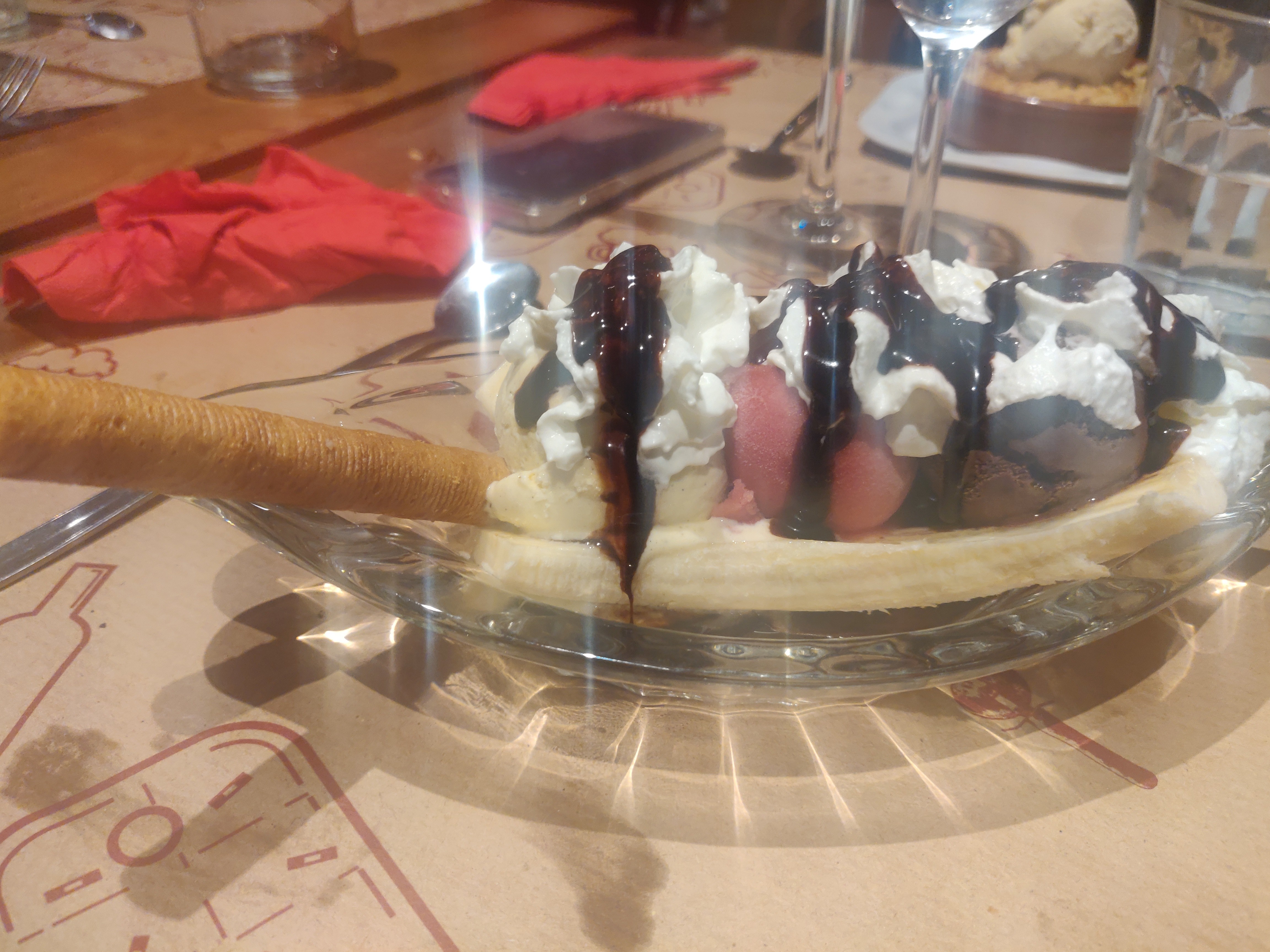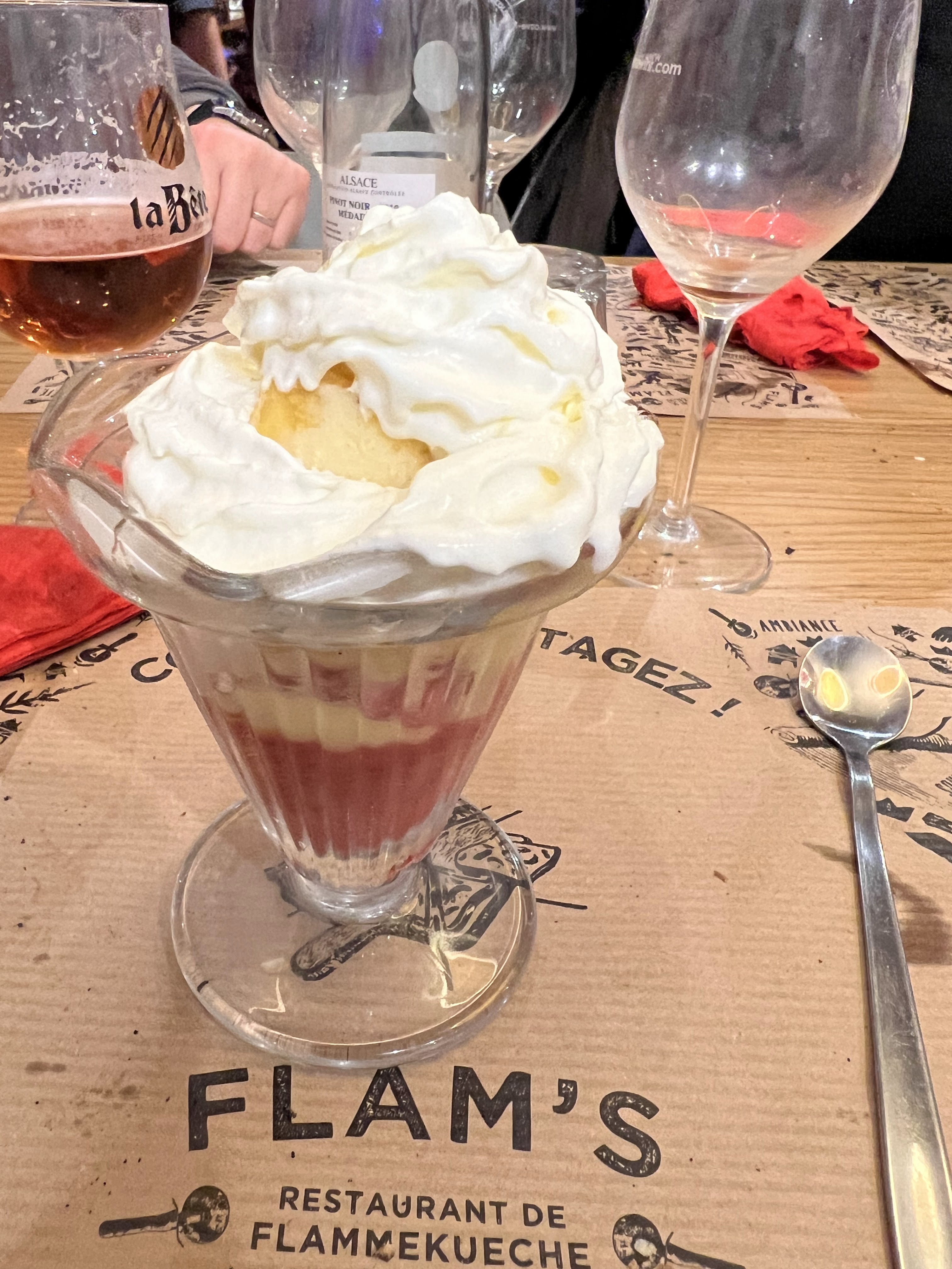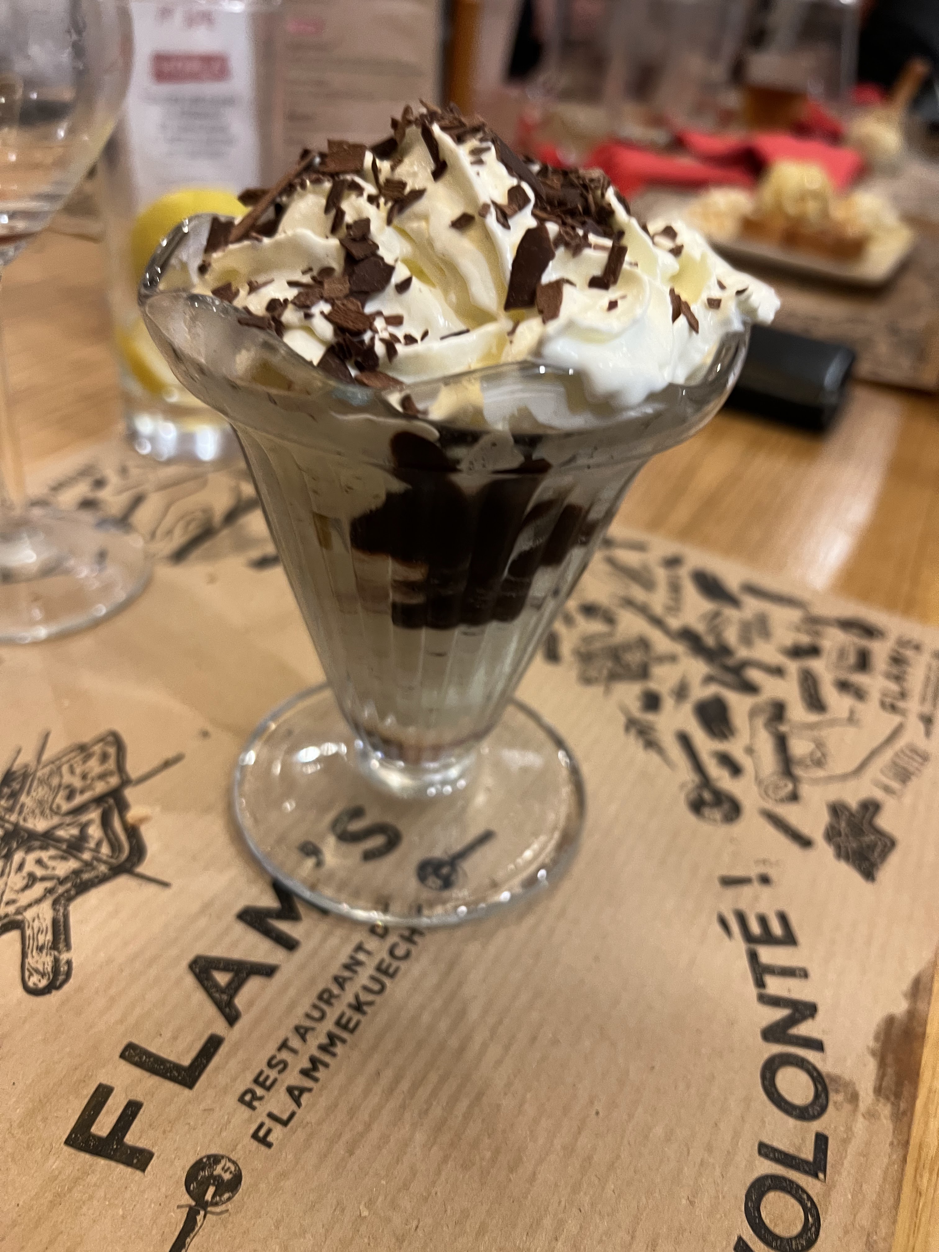 Pas exceptionnel la pâte des flamenkush n'était pas assez cuite ! Peut-être parce que nous étions nombreux et qu'il devait aller vite en cuisine ! Pas assez de garniture à mon goût ! Ça demande des améliorations je trouve!