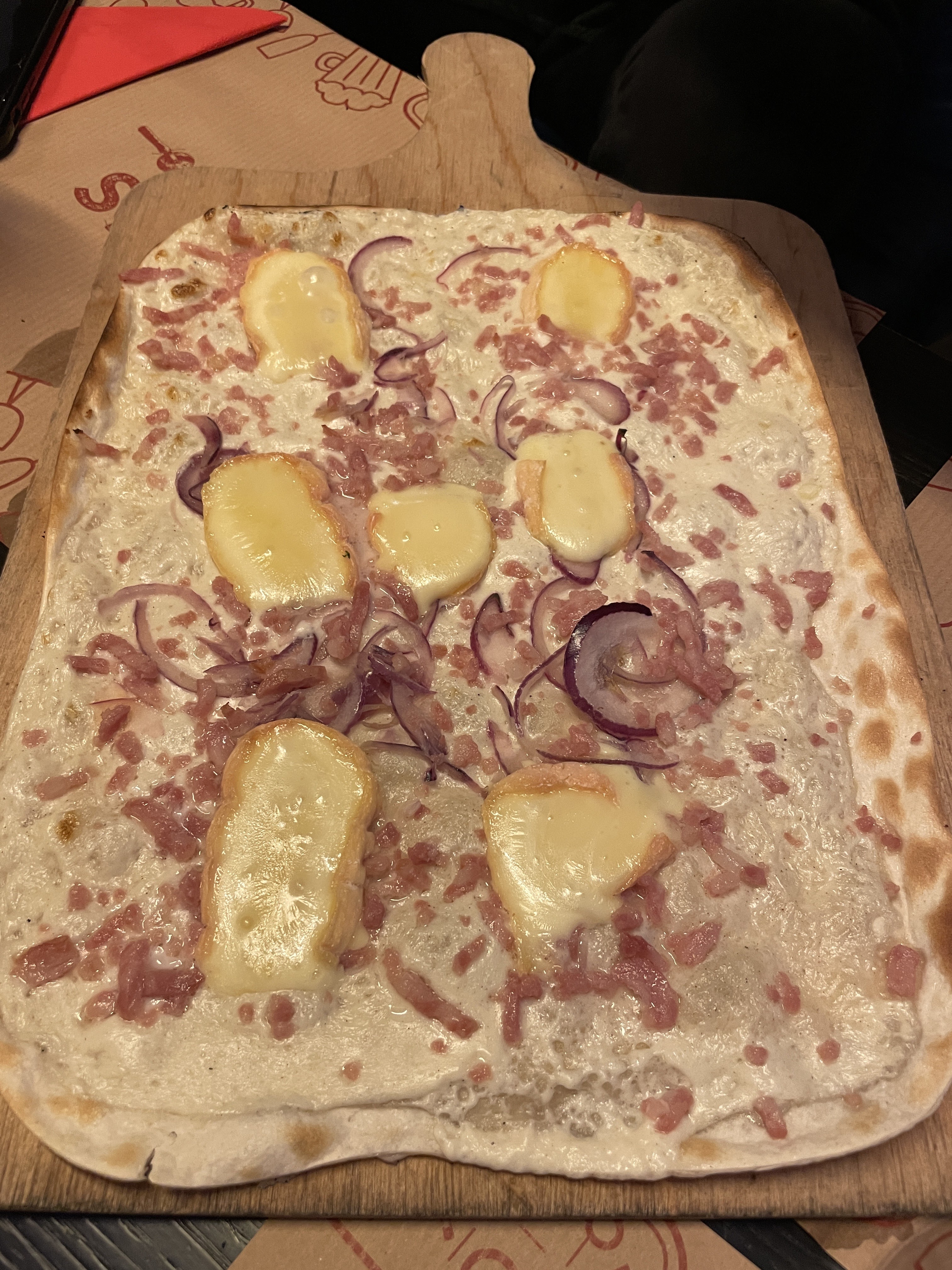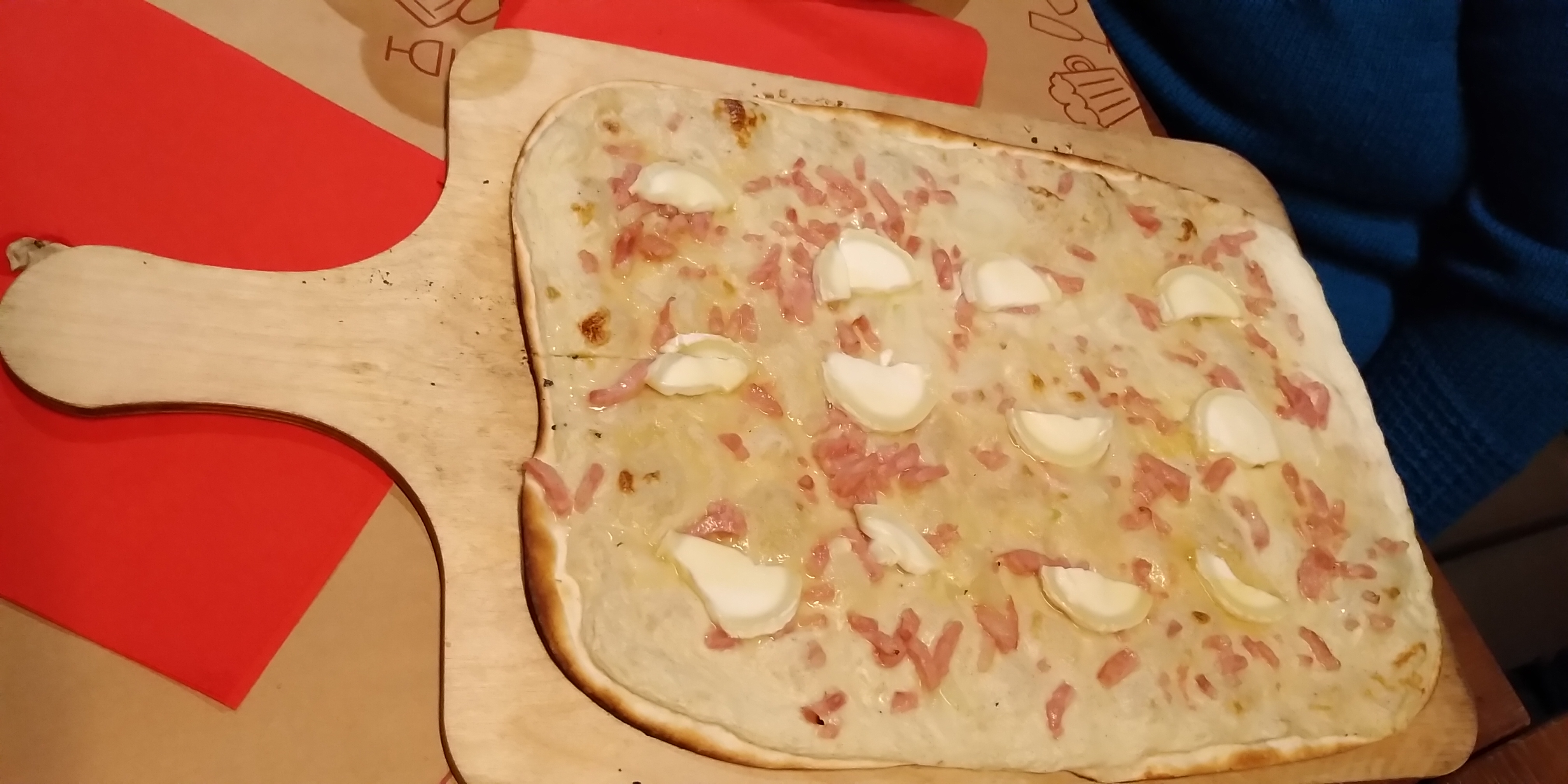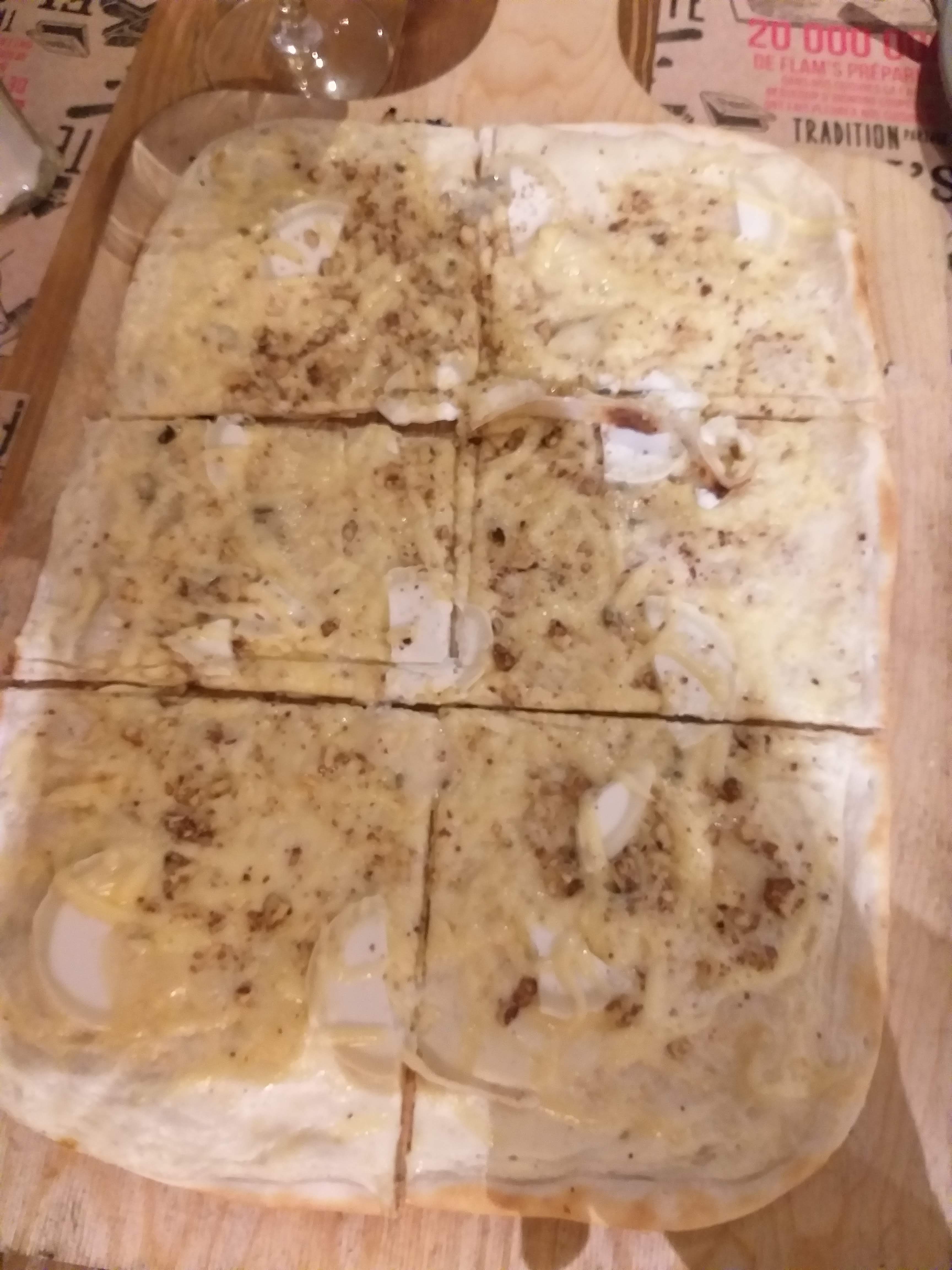 En arrivant on a été pris par une odeur nauséabonde mais le gérant nous a expliqué que cela venait du chauffage. Une fois le chauffage couper et quelques minutes de patience c'était bon. Les flams étaient très bonnes, services rapide et agréable.