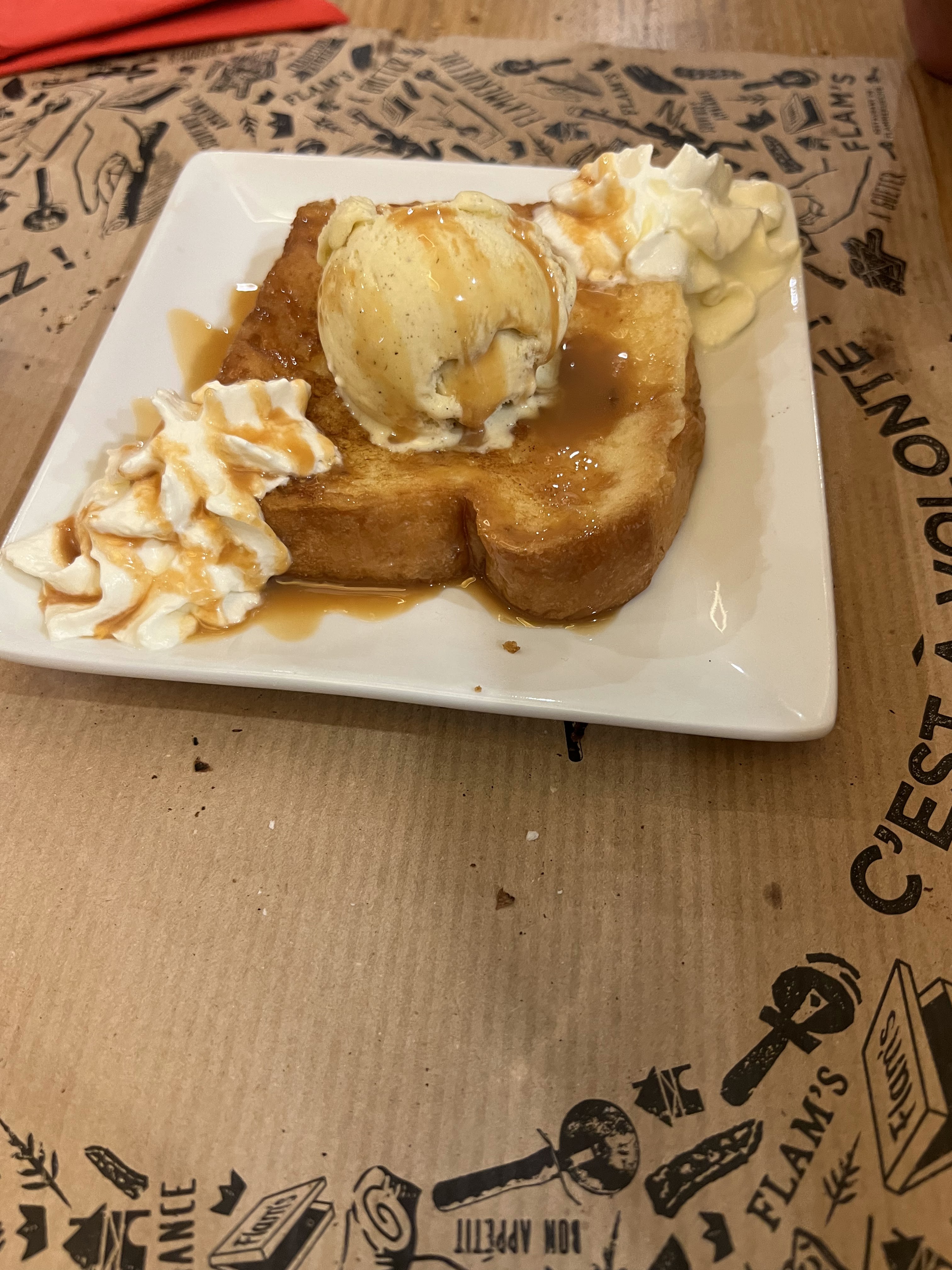 Toujours autant d'attente avant de pouvoir passer commande, puis d'être servi. C'est malheureusement une caractéristique de Flam's, dommage ! C'est compliqué avec des enfants en particulier.