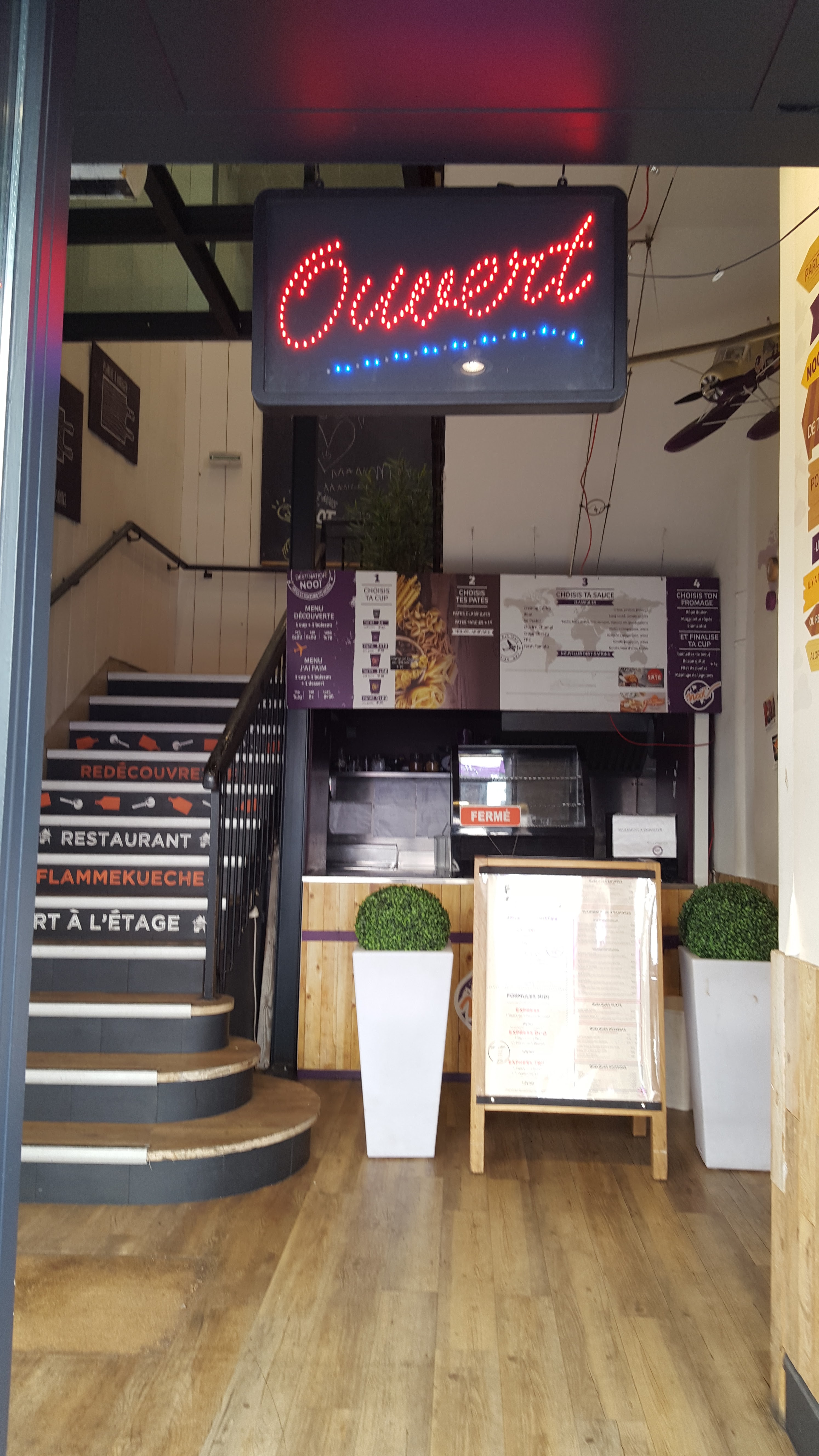 Le service n'était pas au top. La cuisson de la flams n'en parlons pas. La viande haché était pas cuite et des ingrédients manquaient dessus. Pour avoir testé dans ma ville ça n'avait rien avoir. Je ne le conseille pas vraiment