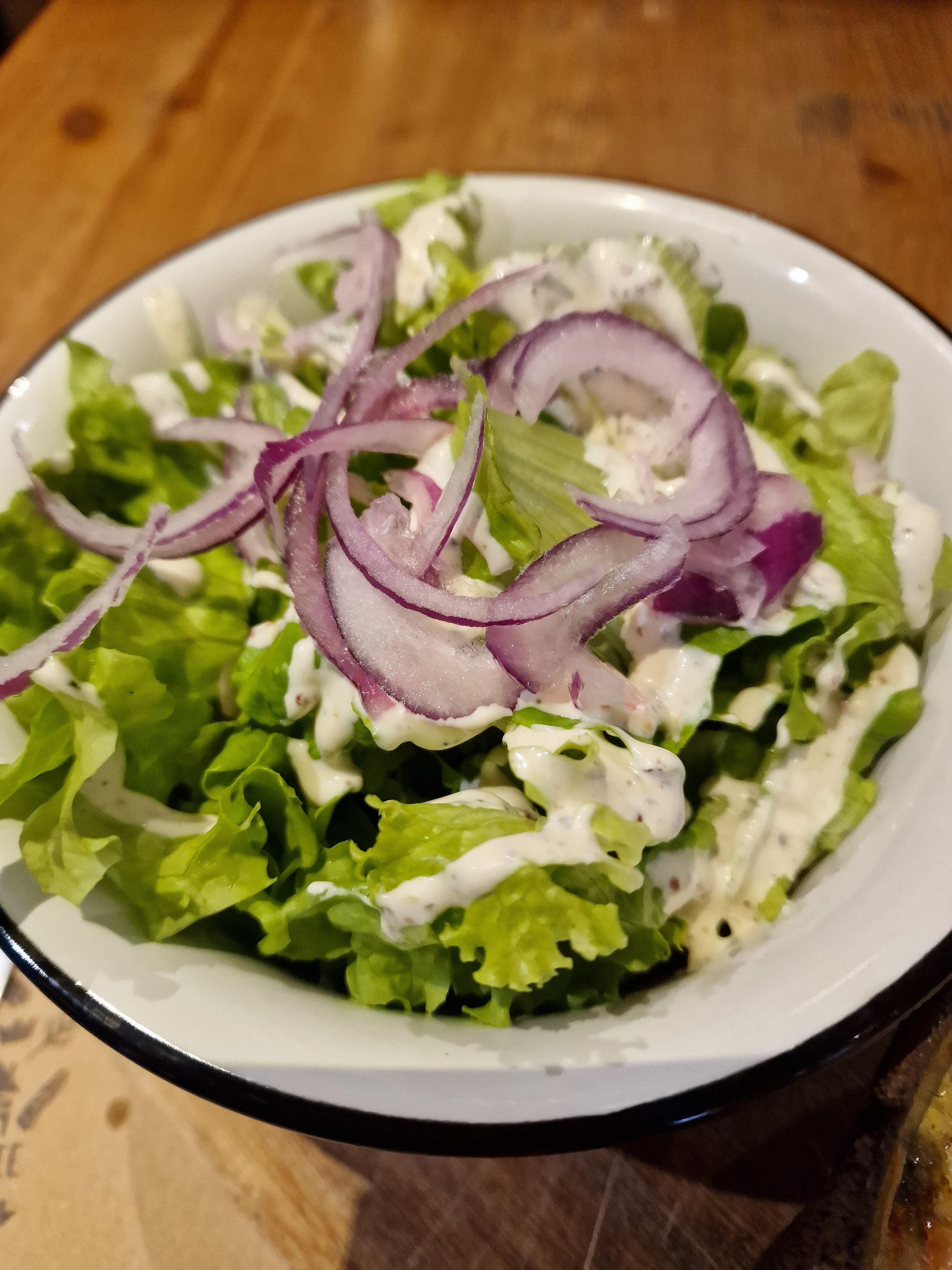 Bonjour et Merci de nous donner votre avis. Je suis navrée que vous n'ayez pas aimé la flammekuesh sachez que l'on propose d'autres plats Si vous avez l'occasion de revenir.Les salades d'accompagnement sont disponibles et indiqués sur la carte à partir de 1€50. Merci pour vos compliments sur l'équipe je ne manquerais pas de leur transmettre vos encouragements. Je vous souhaite une excellente journée. Cordialement. La direction.