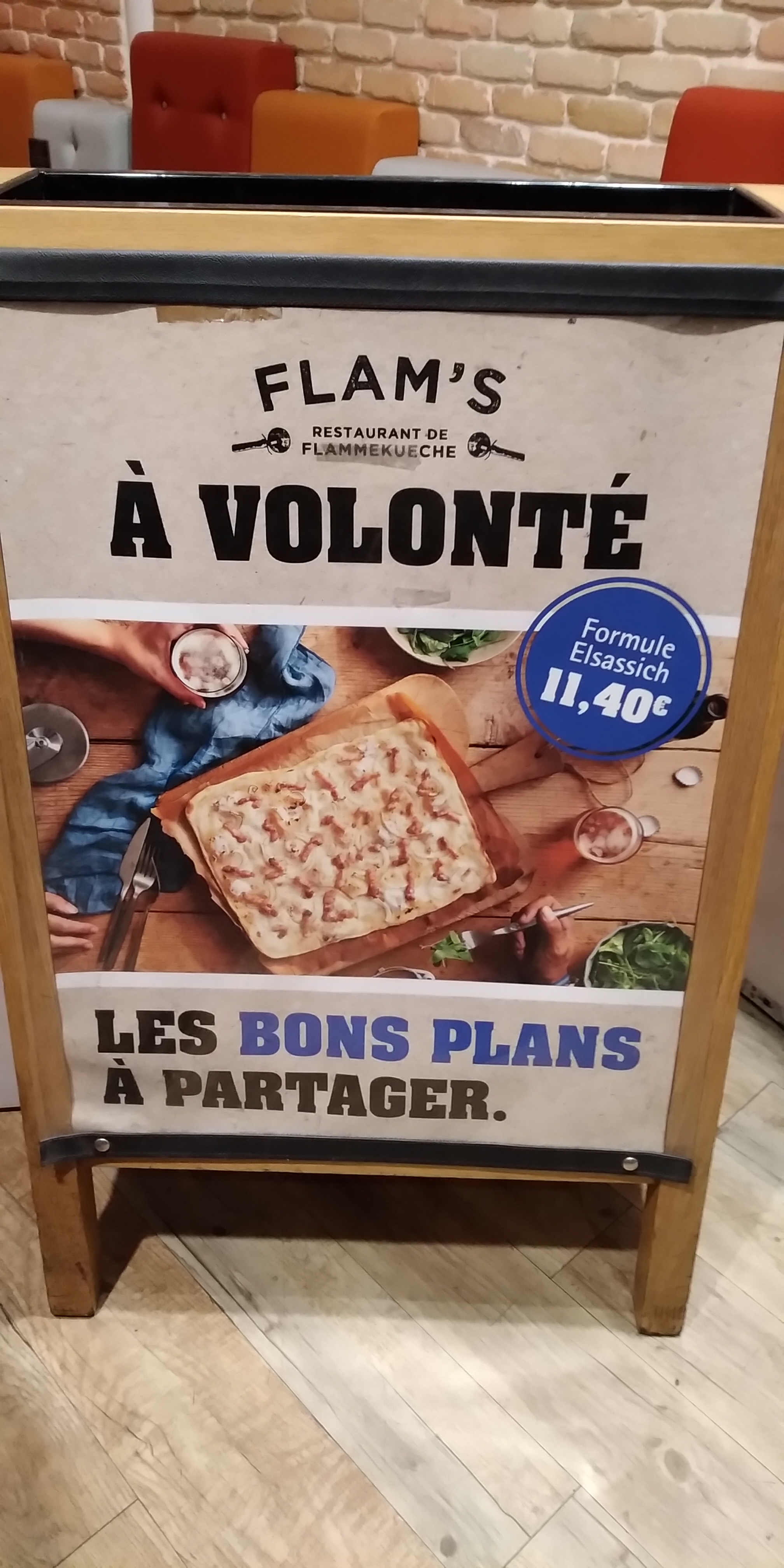 Ce restaurant est génial! Pour ma part, on y est allé à deux en soirée et on a été super bien accueilli et bien servi durant toute la soirée. Il y a des menus Flam's à volonté certains jours, et vu la pluralité des choix possibles, et de composition des Flam's, vous y passerez un superbe moment.