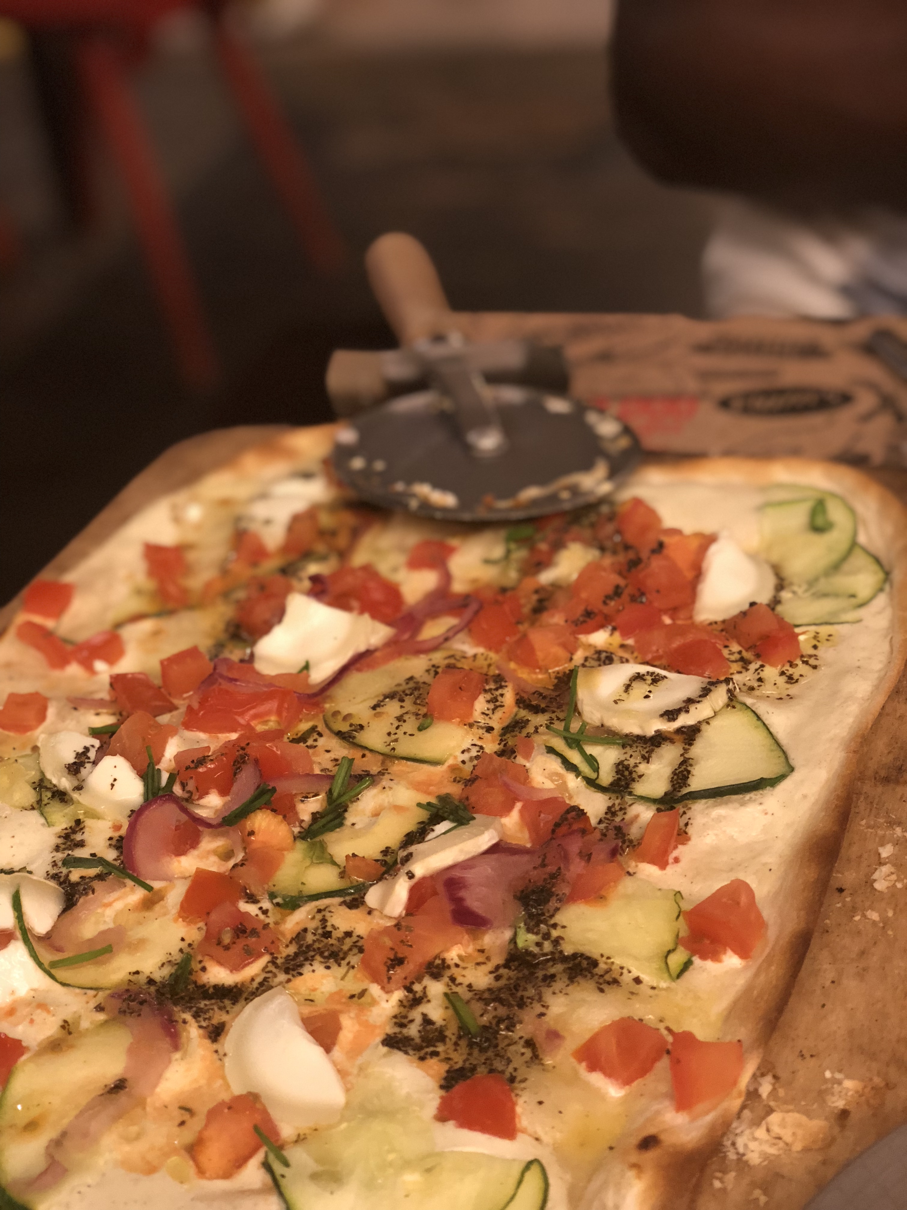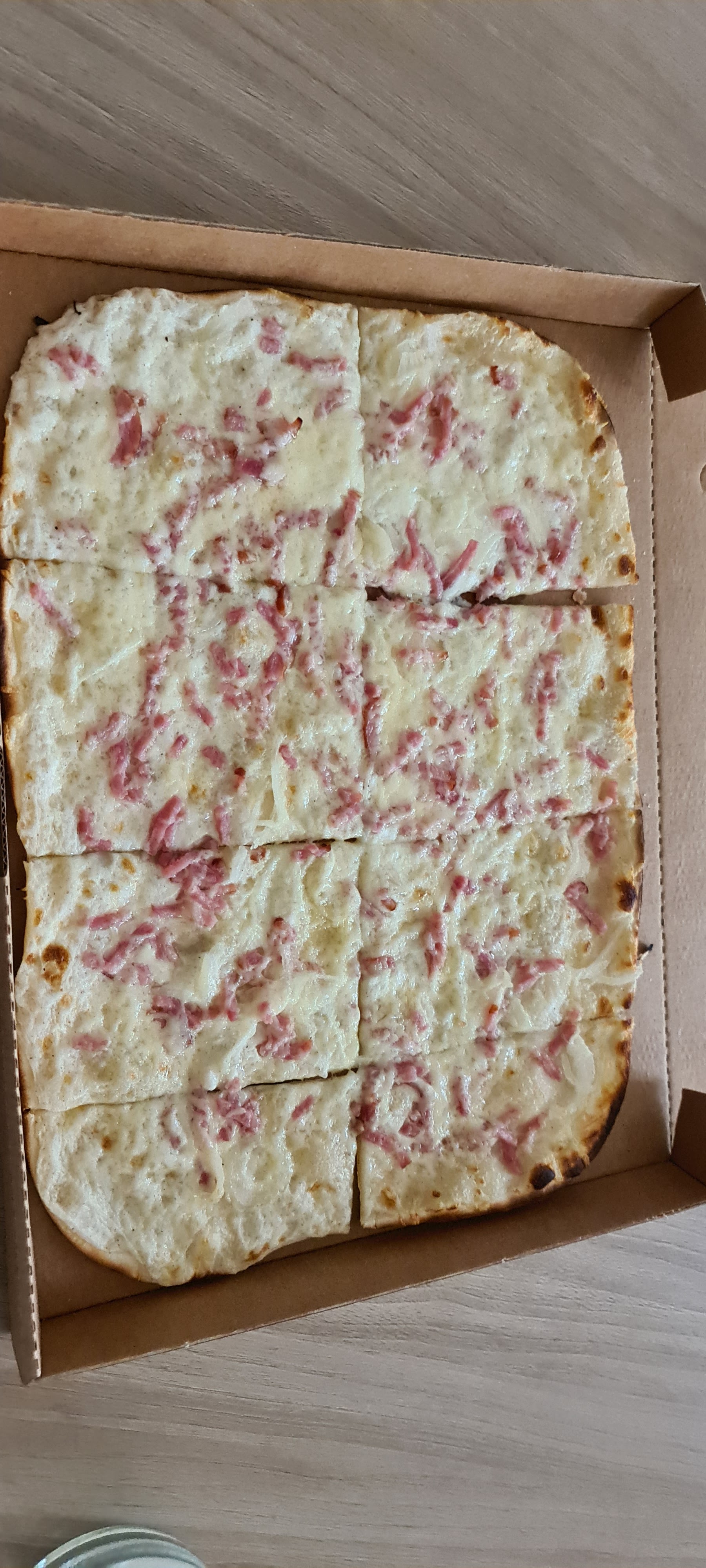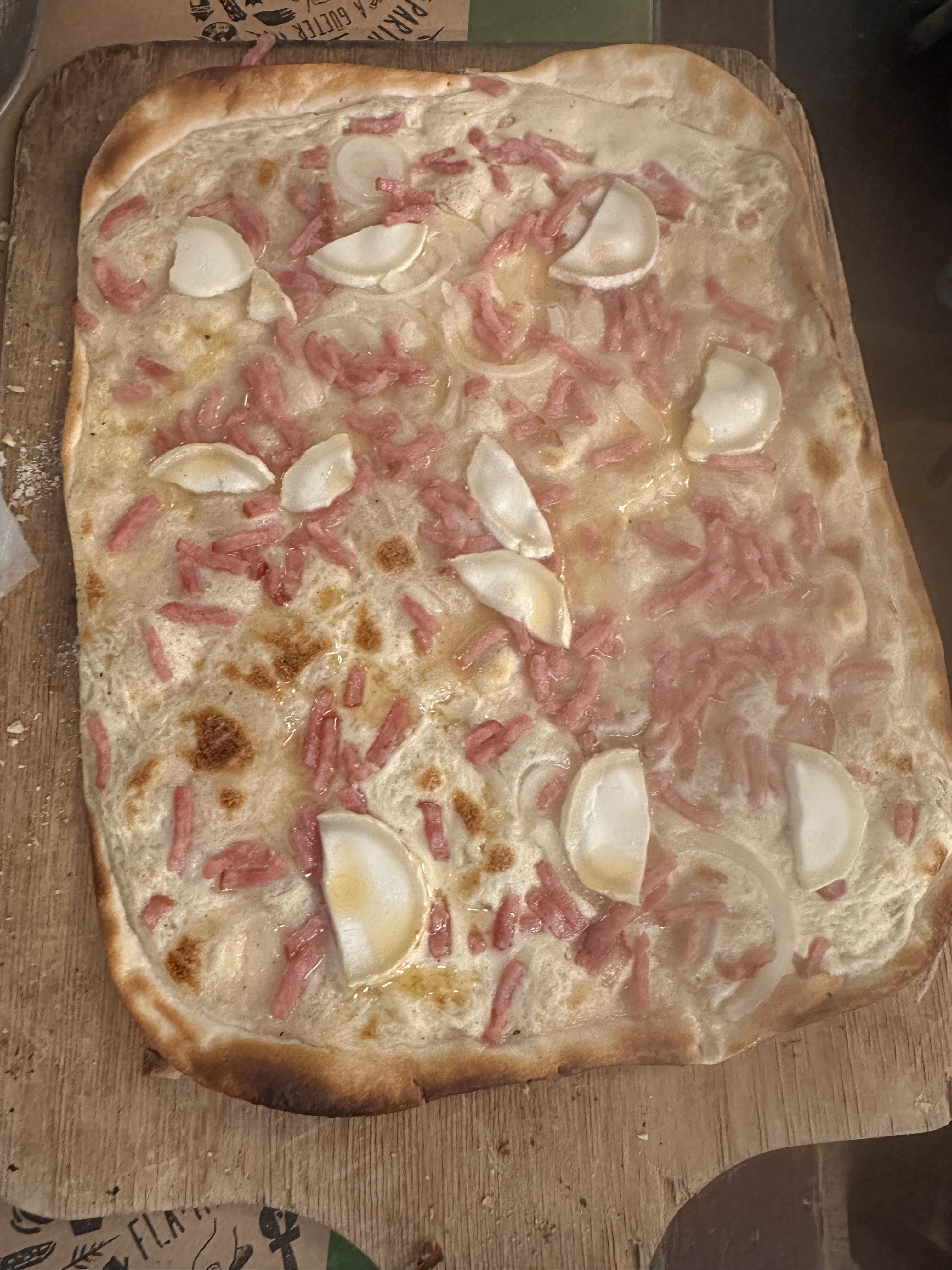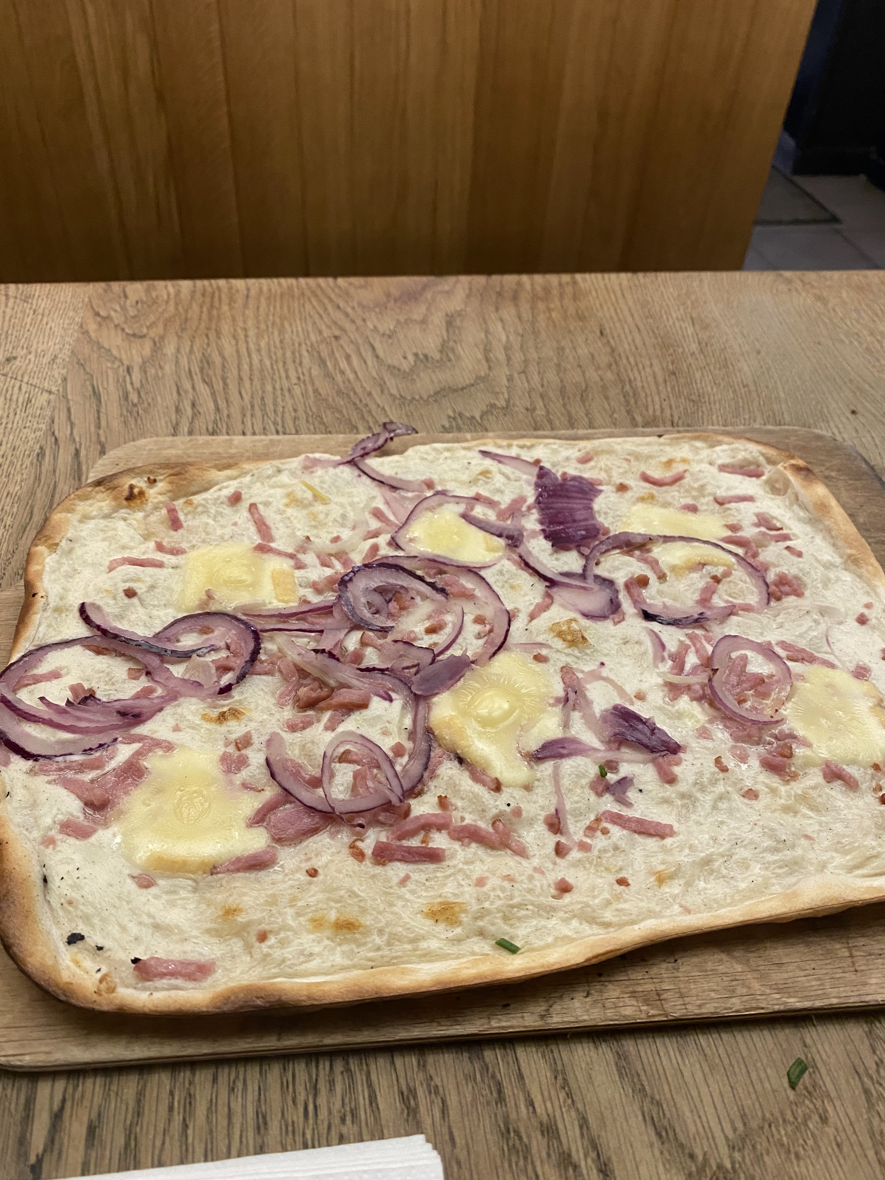 Bonne flammekueche :) Vous pouvez optez pour 2 menus, mais les flammekueches spécial valent quand même le coup d’être tester ! Néanmoins, je trouvais qu’elle était trop cuite, ce qui rendait certains côté un peu cramé.
