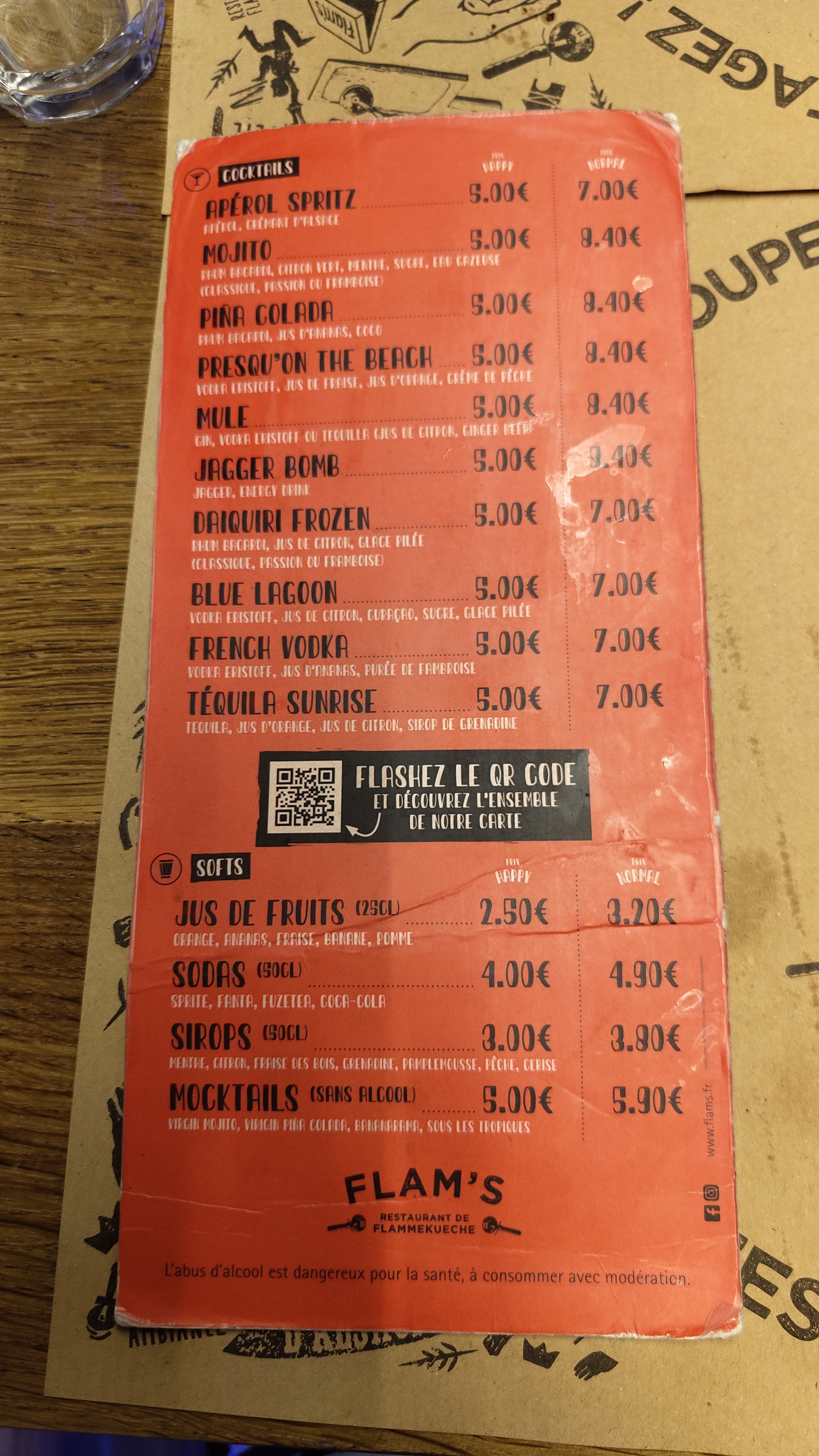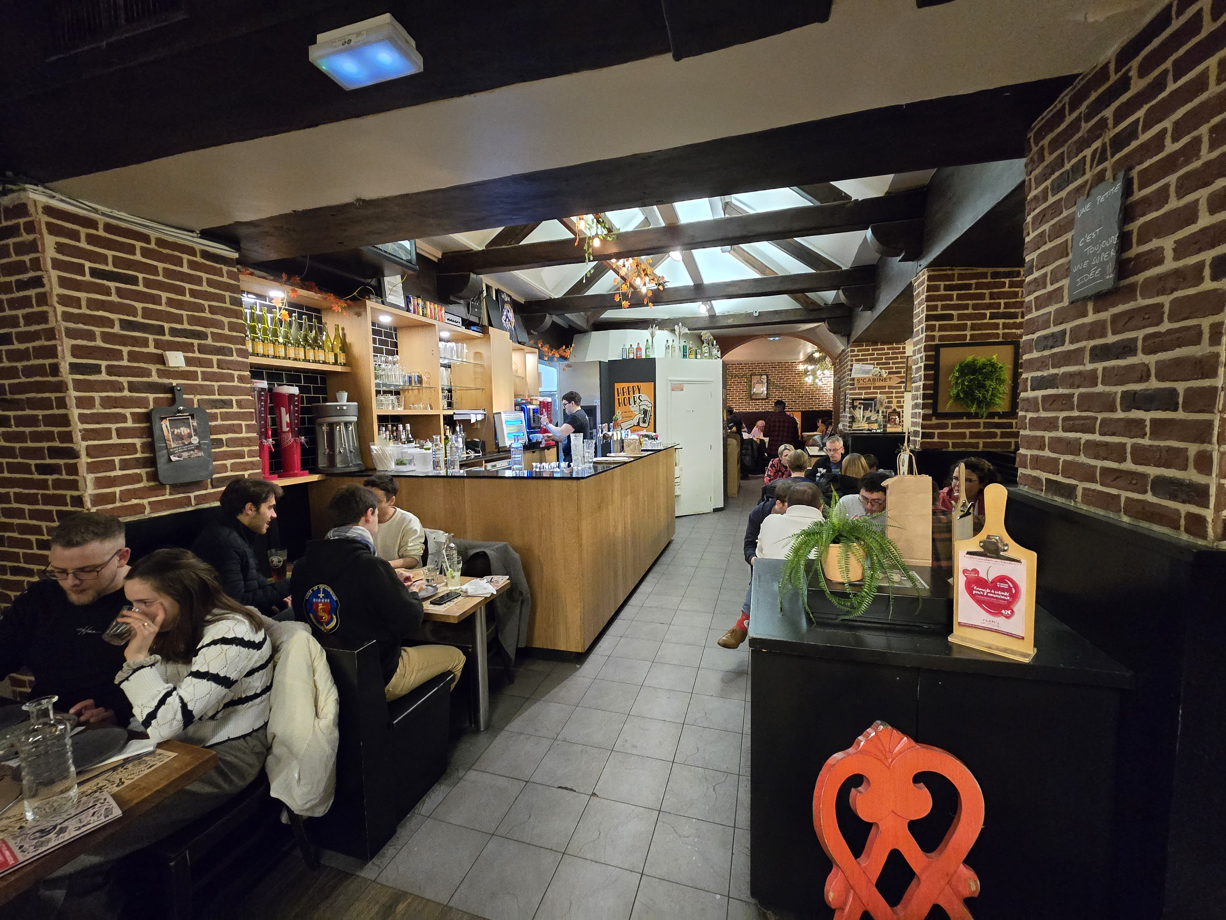 Je suis venue boire un verre avec une amie au Flam’s ce soir car tous les bar du coin étaient occupés. Je suis ravie de mon expérience ! La pinte est à 4€ jusqu’à 20h, ce qui est un beau prix pour le coin et le staff est très accueillant. Je vous recommande ce lieu !