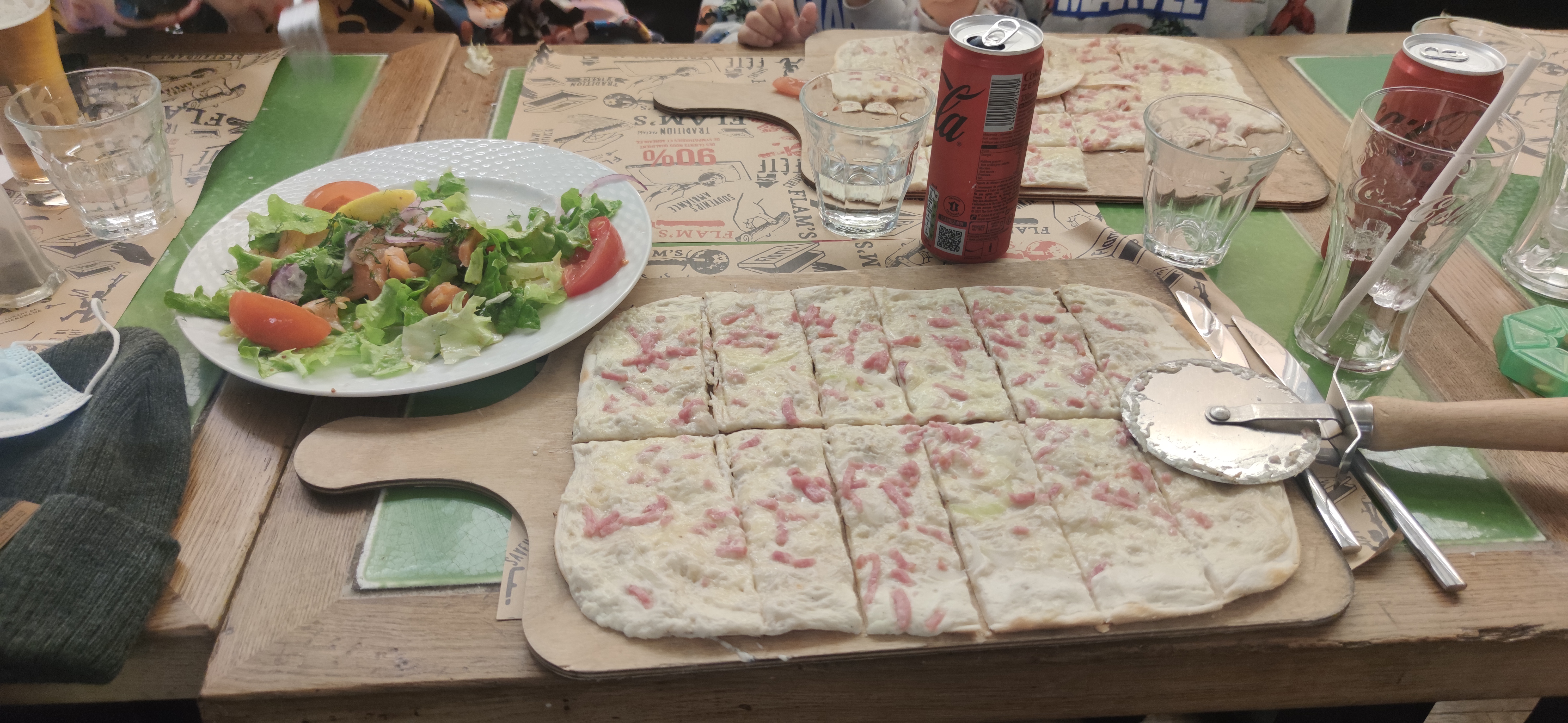 On a passé un bon moment et on s’est régalé! Je recommande. Je déconseille les flams sucrés au chocolat, on a pas du tout aimé le mélange, c’est vite devenu écœurant. S’appliquer dans la répartition des ingrédients serait top… retrouver des lamelles d’oignon concentré dans un meme endroit et devoir les repartir nous meme