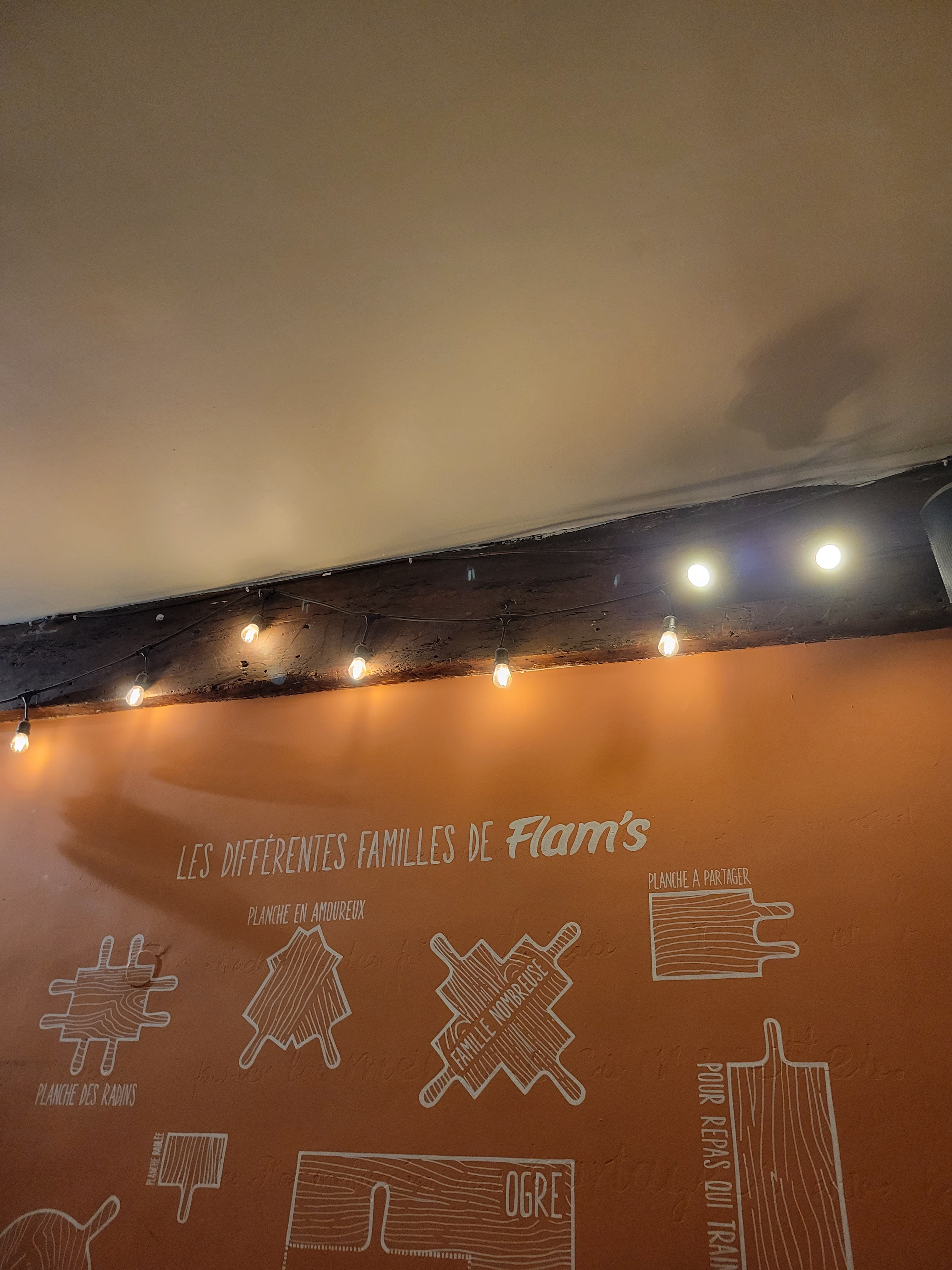 Nous avons décidé de tenter le Flam's pour le réveillon du 1er janvier 2024 en famille. Nous étions 10 personnes et avons fait le choix de tous prendre la formule à volonté. Toutes les flams sont bonnes, mais c'est une affaire de goût. Nous étions situés dans la salle au sous-sol, le lieu est très sympa même si un peu bruyant. Le service était attentionné avec le sourire. Merci à vous 😀