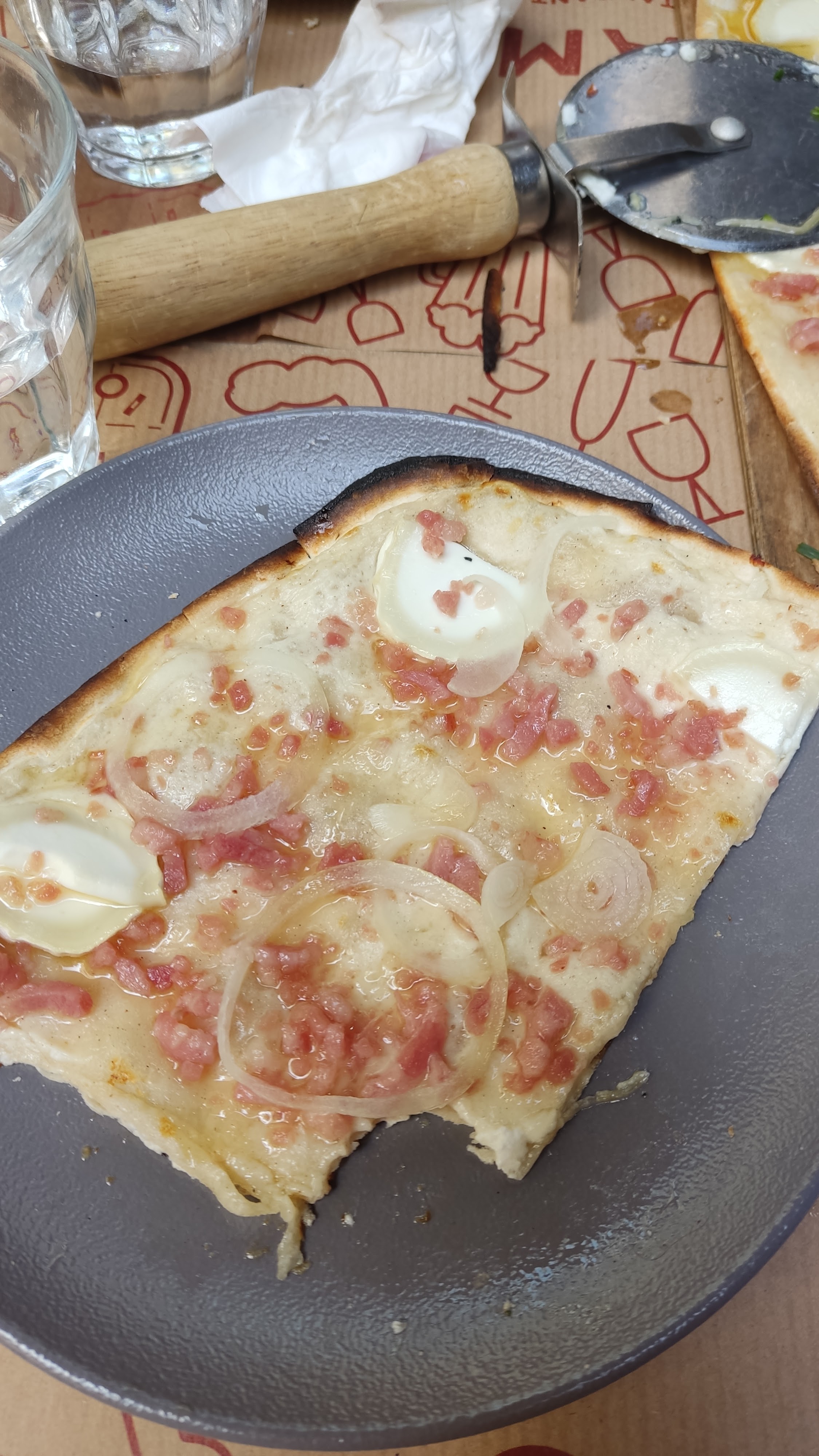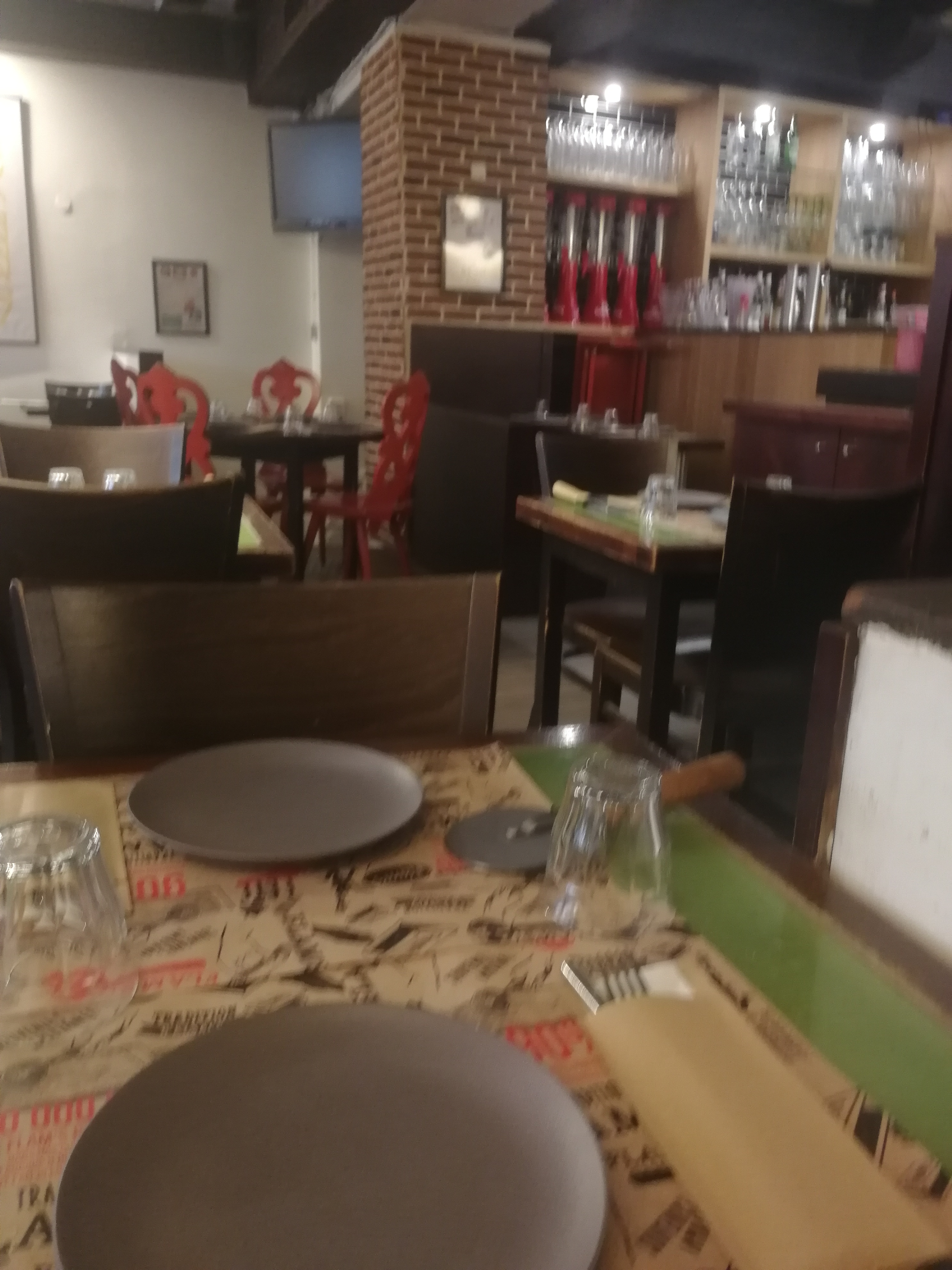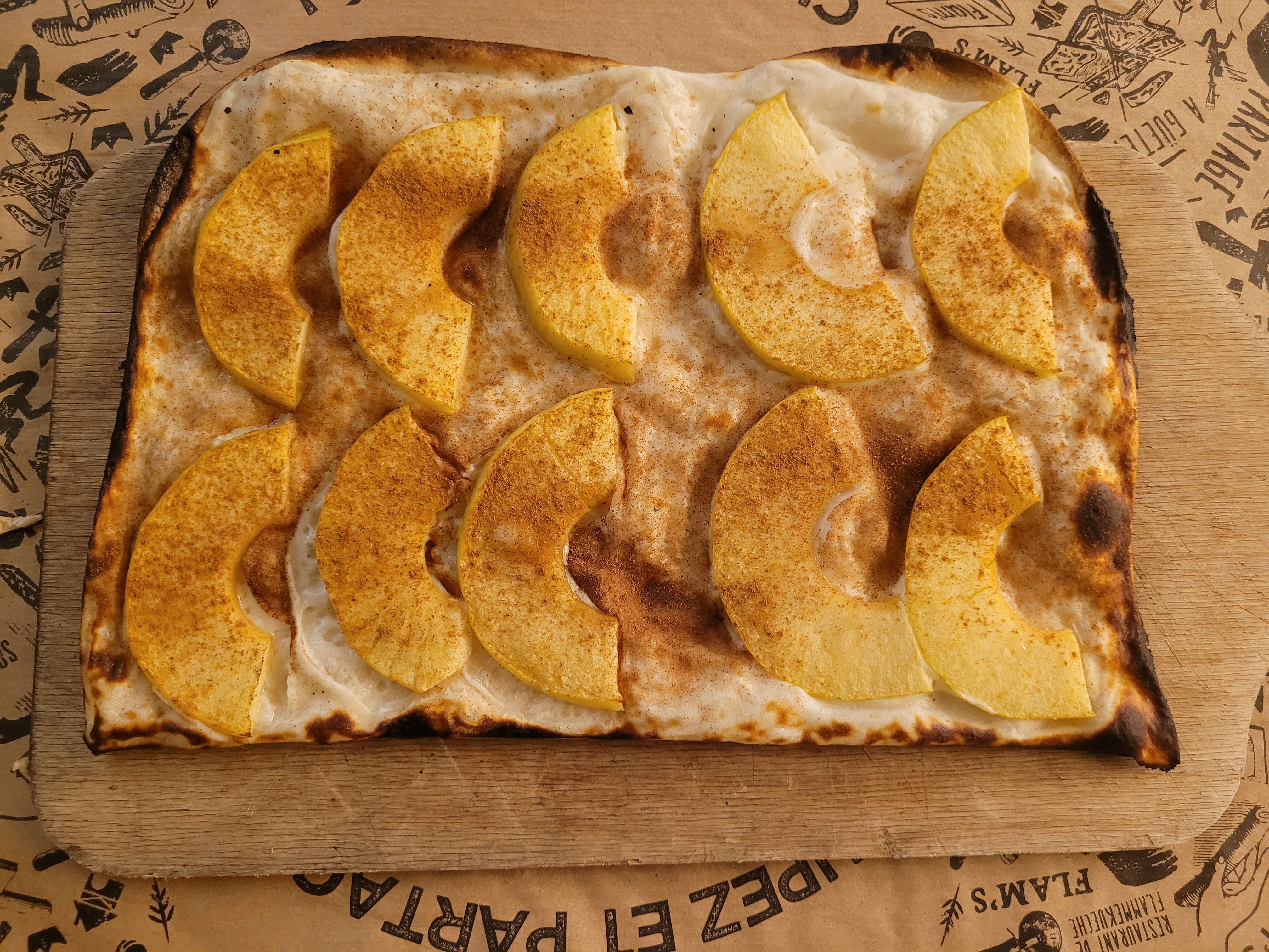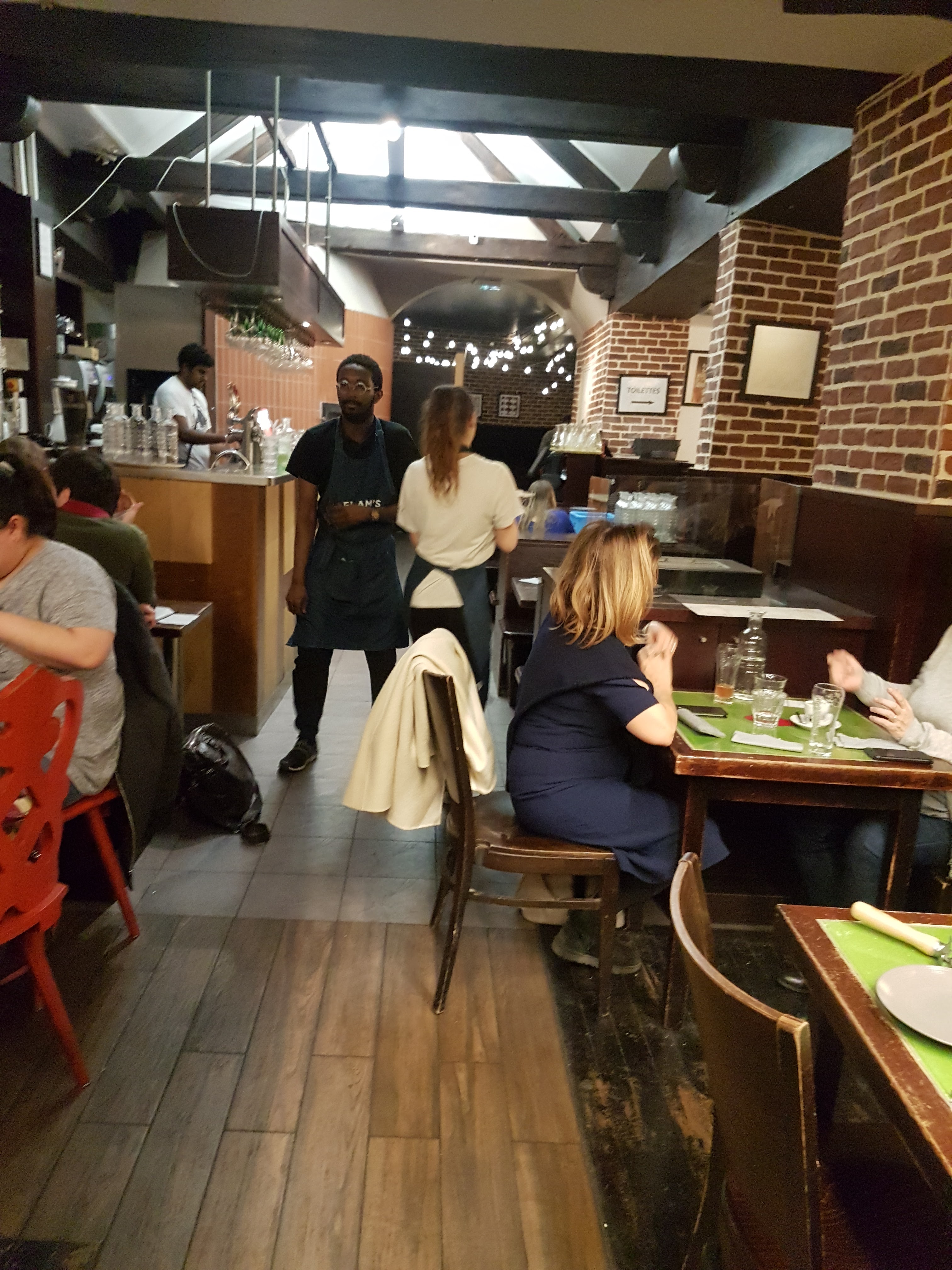 Les flams sont vraiment très bonnes et il y en a pour tous les goûts. Nous avons eu un serveur super aimable qui a rendu le repas encore meilleur ! Petit point négatif, au fond du sous sol en me trompant de côté pour aller aux wc, j’ai aperçu un rat ou une souris. Heureusement, loin des cuisines.