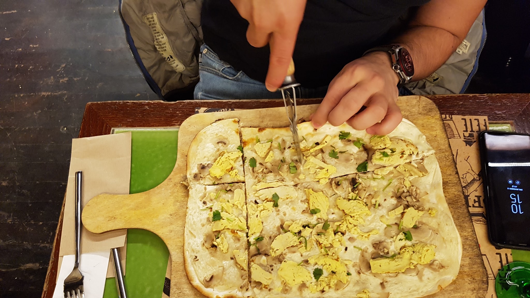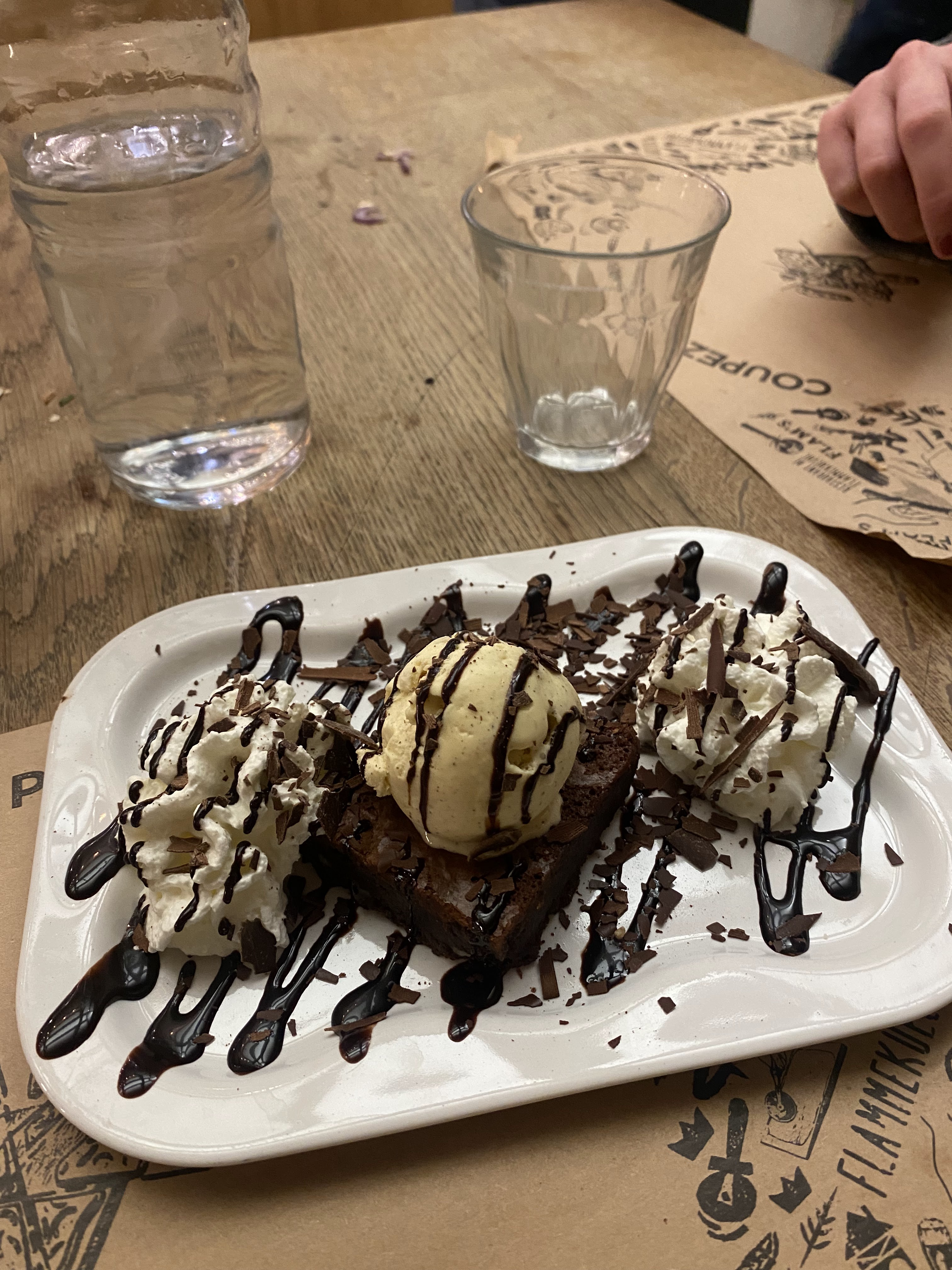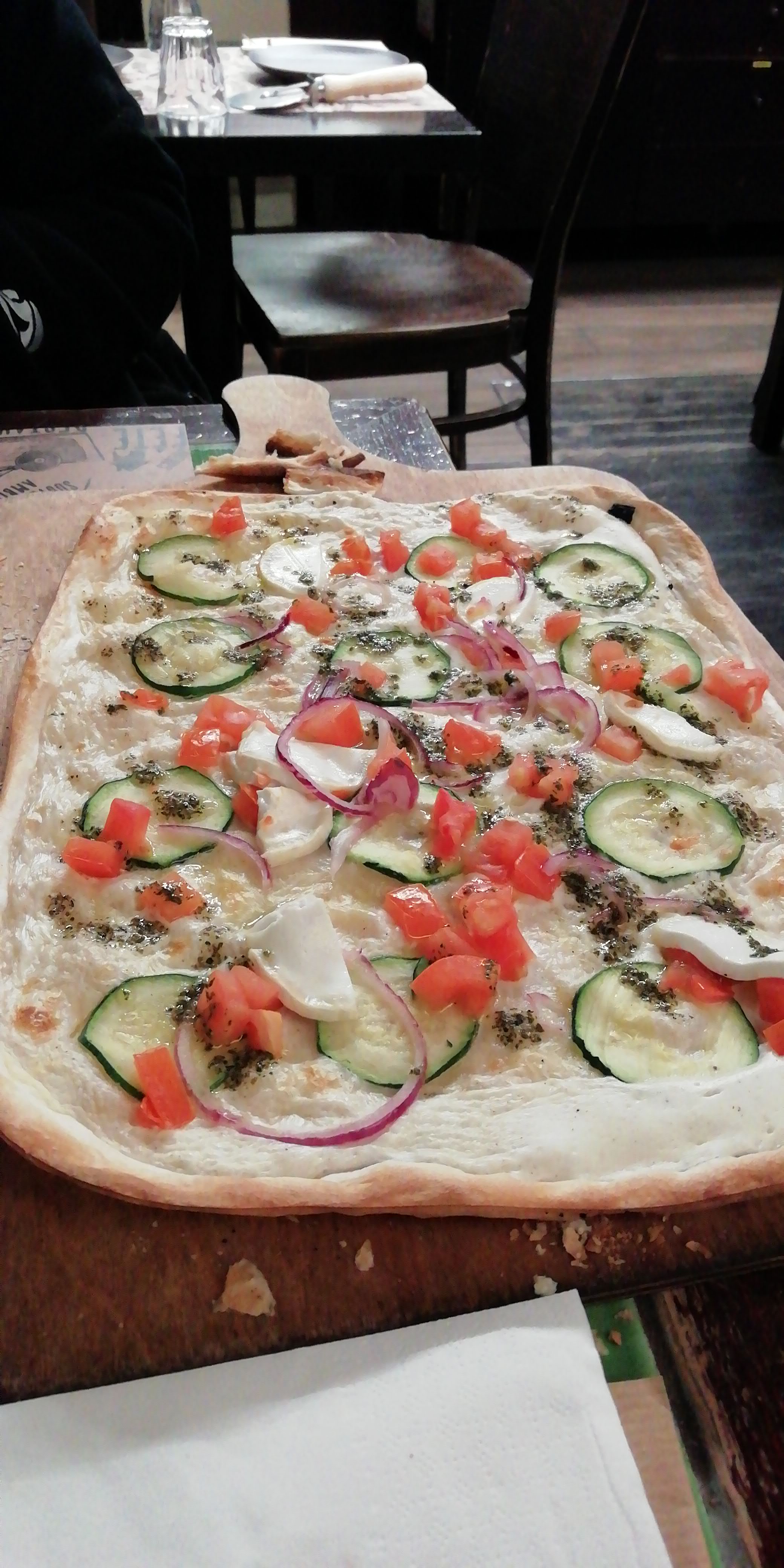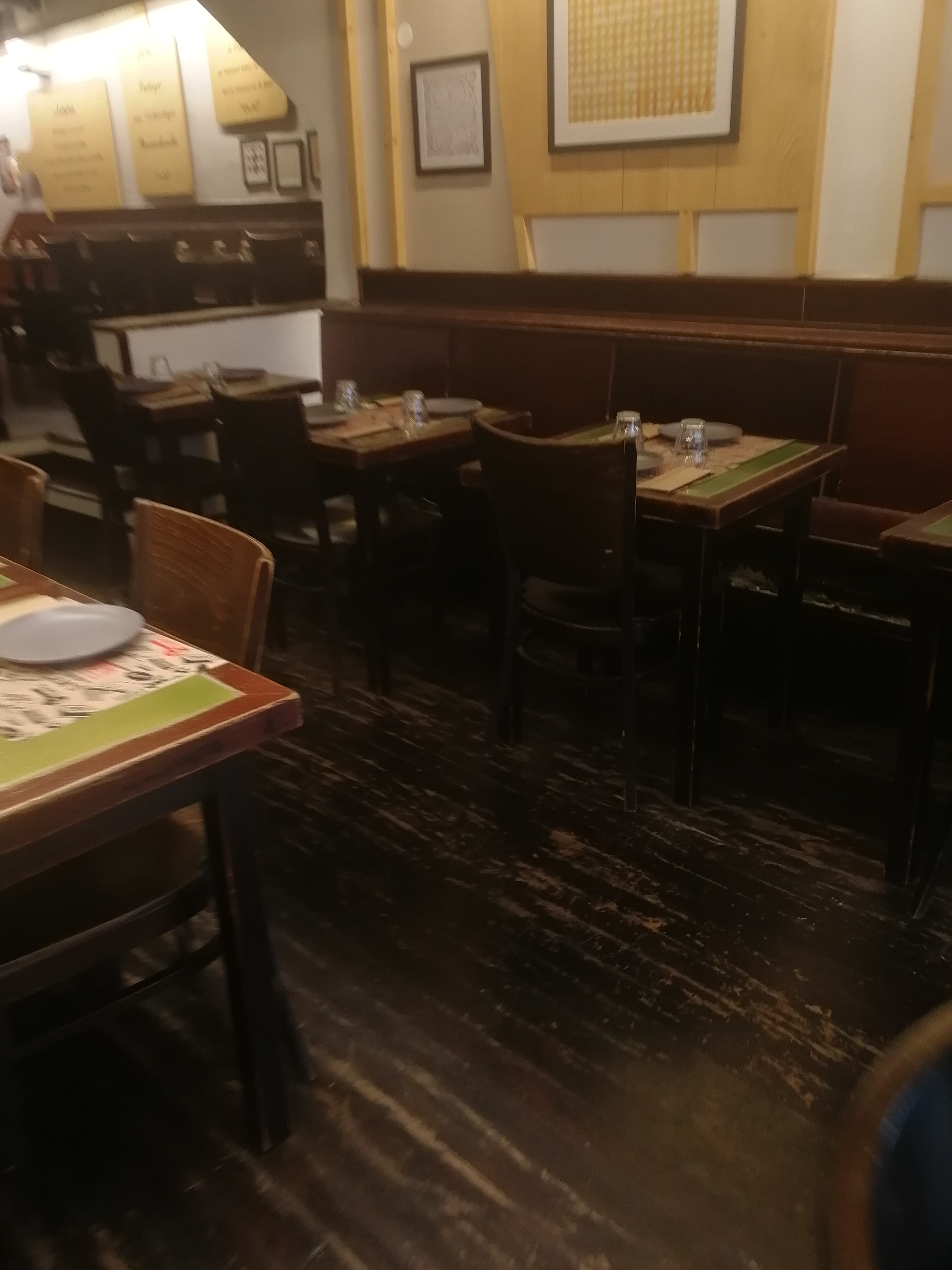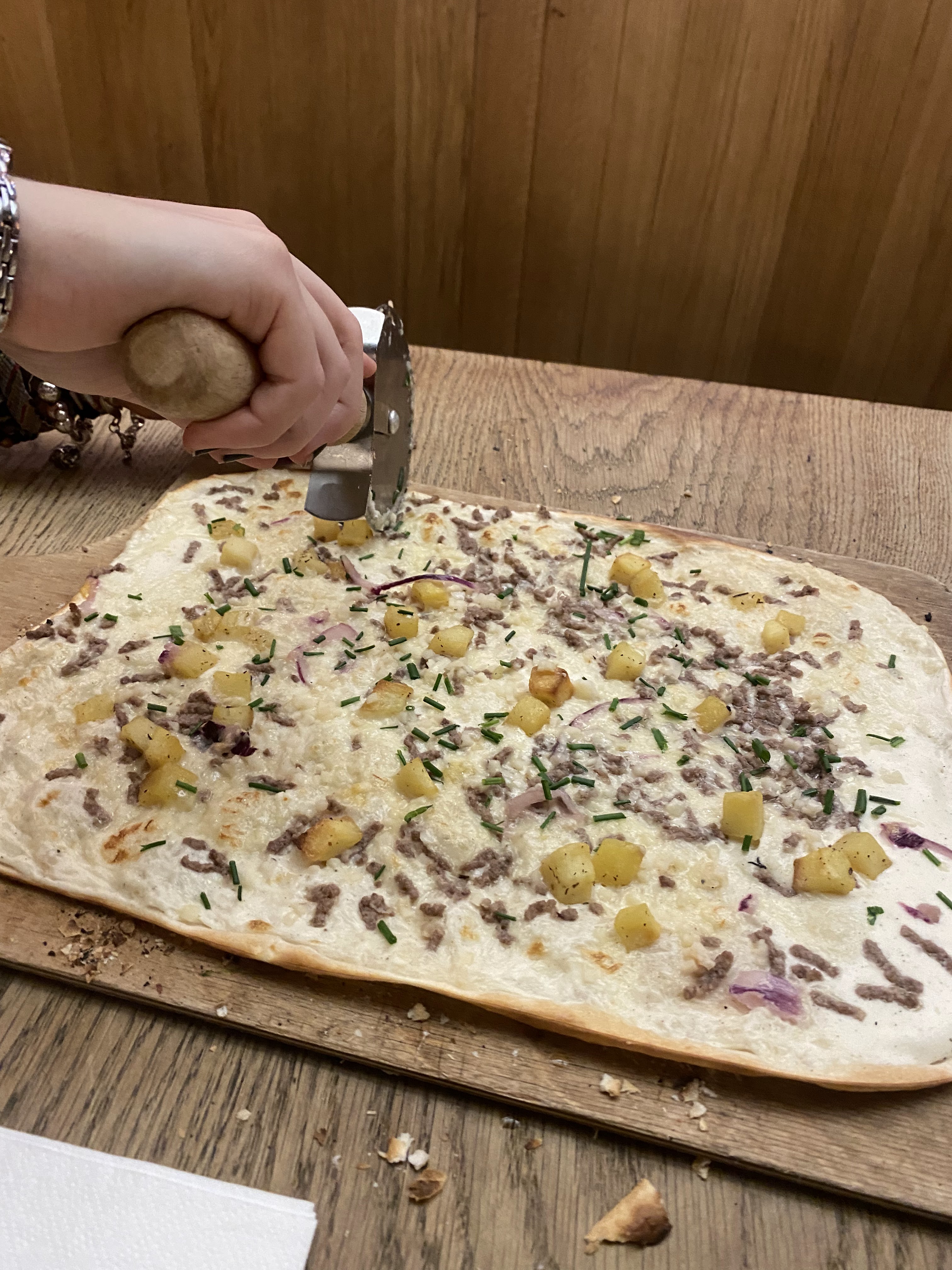Les flams sont vraiment très bonnes et il y en a pour tous les goûts. Nous avons eu un serveur super aimable qui a rendu le repas encore meilleur ! Petit point négatif, au fond du sous sol en me trompant de côté pour aller aux wc, j’ai aperçu un rat ou une souris. Heureusement, loin des cuisines.