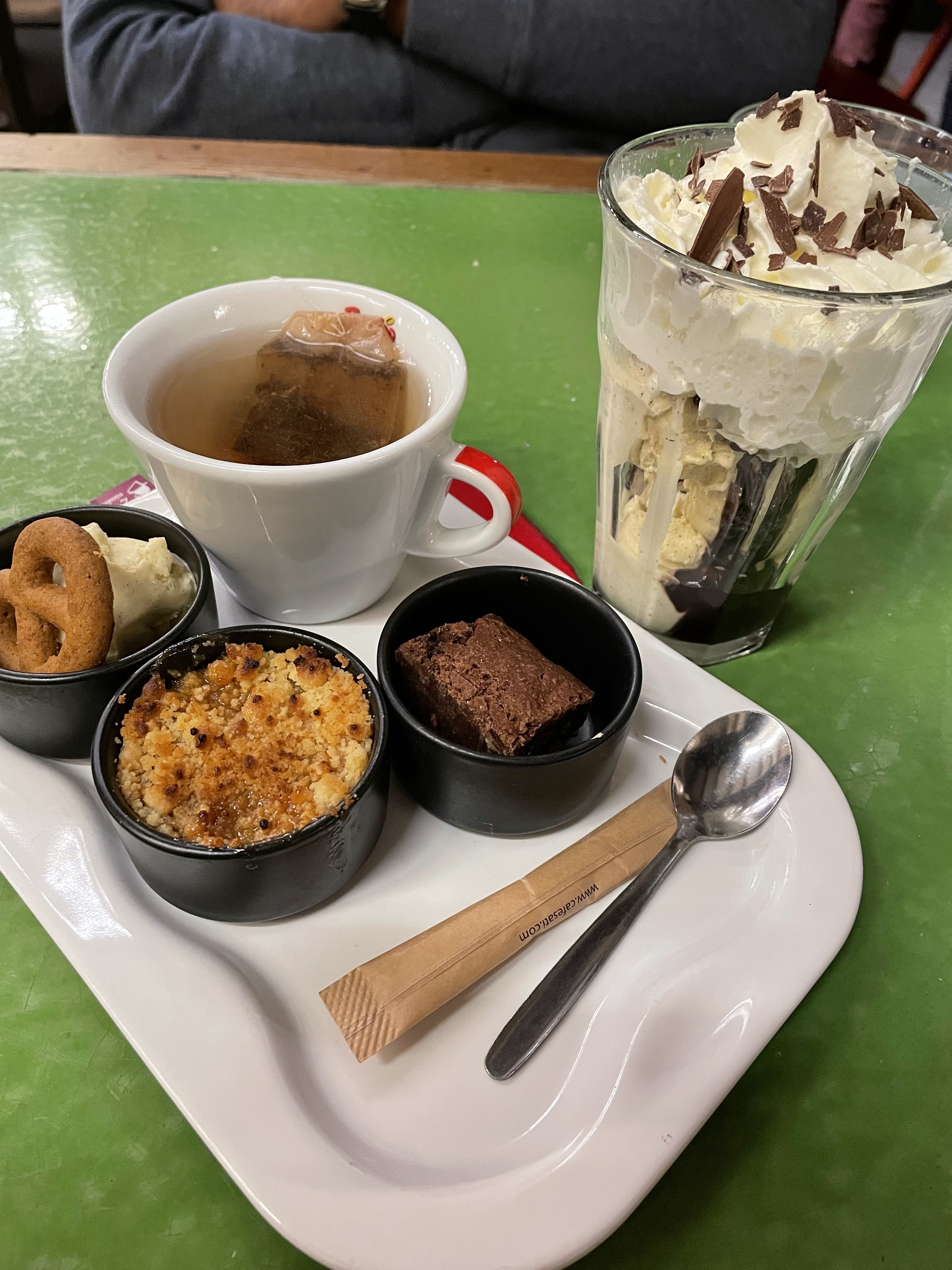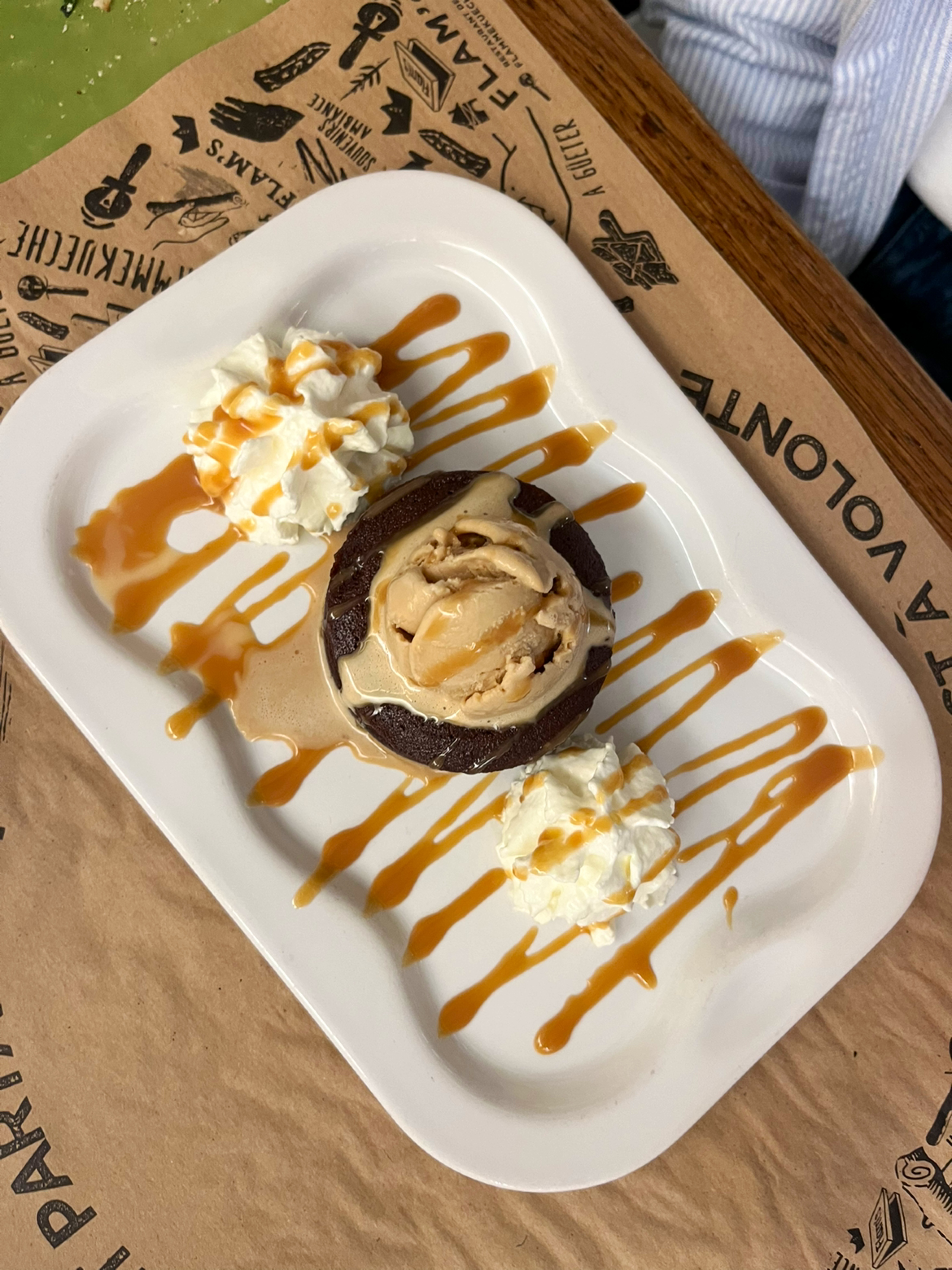 J'ai adoré le concept de ce restaurant. Vous pouvez choisir et tester une infinité de Flams avec les formules proposées. Chaque Flam a un goût unique et différent. Et pour finir et puisqu'on a trop mangé on a commandé du café et du thé gourmands et on était surpris par la qualité et le goût délicieux des mini brownies et crumbles.