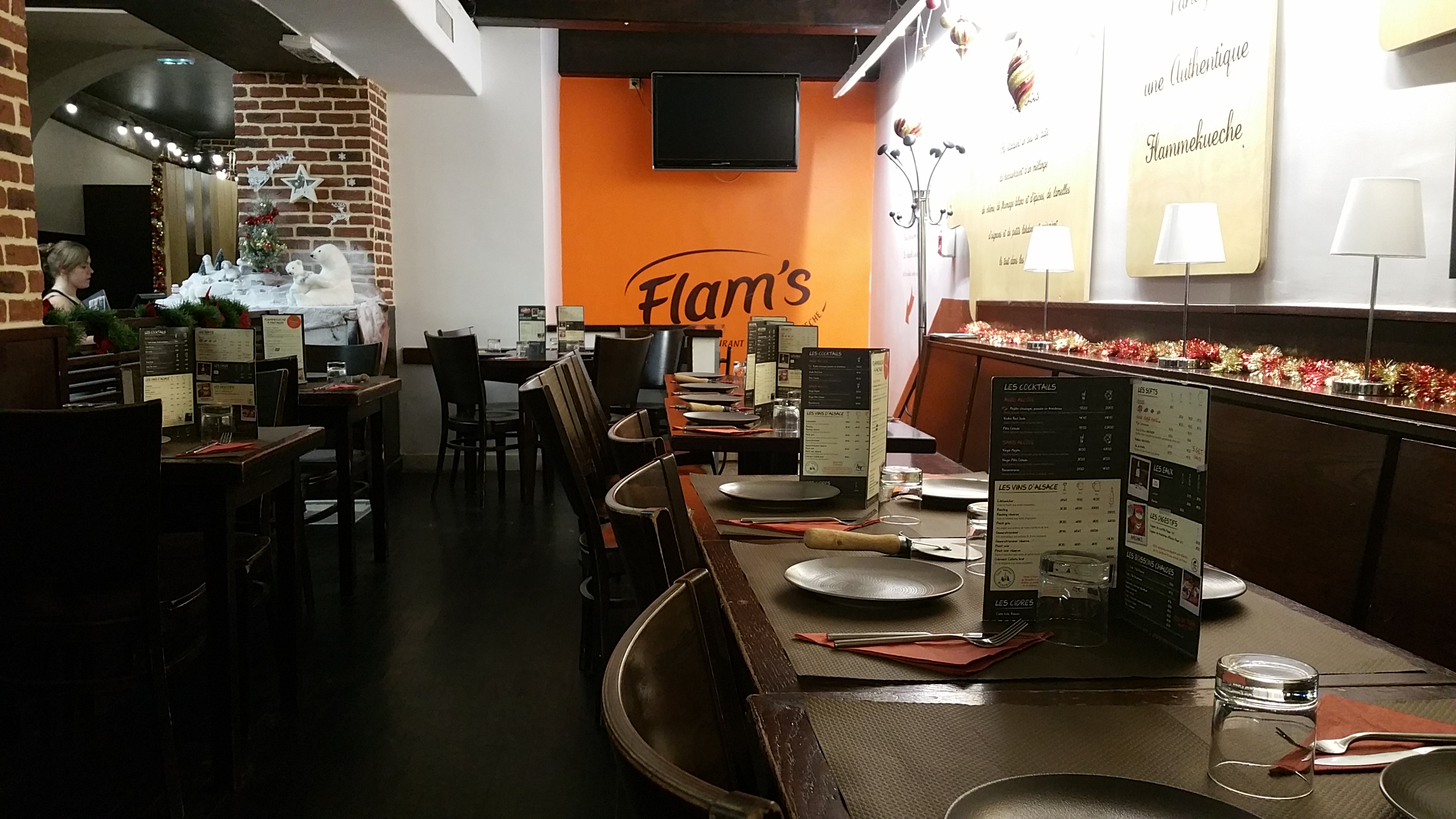 C’est un restaurant ou vous disposez une formule de Flam à volonté ce qui est extrêmement attractif ! Je regrette qu’on ne sente pas vraiment la viande (poulet, bœuf) sur les Flam’s. Par contre toute la carte « classique » est très réussie.