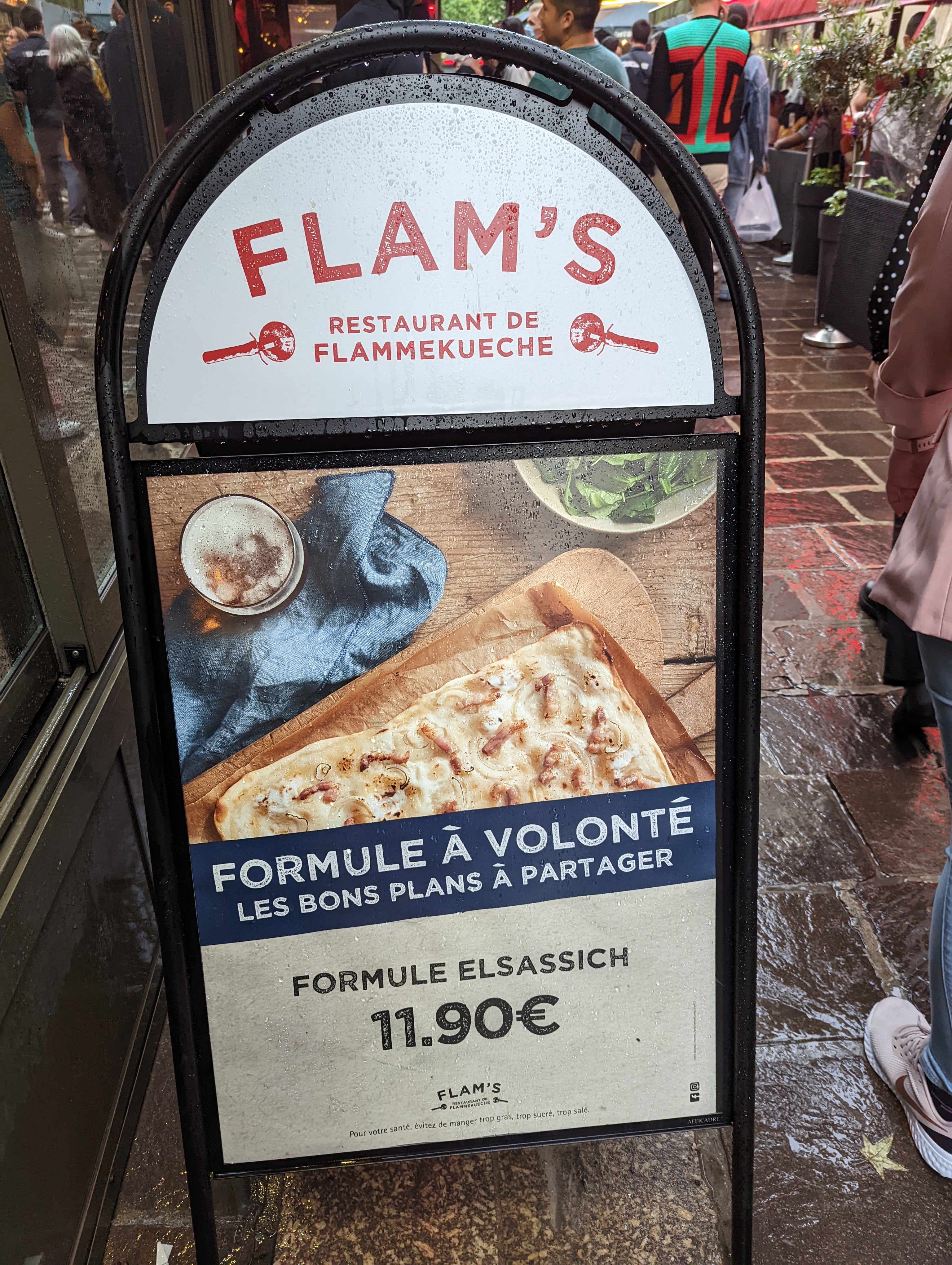 J'ai découvert flam's il y a un an, celui de Saint Lazare et récemment j'ai vu que j'en avais un près du boulot. J'y vais quelques fois. J'ai testé la formule à volonté, elle convient aux gros mangeurs elle est valable sur les flam traditionnels. Et coûte 10,90.
