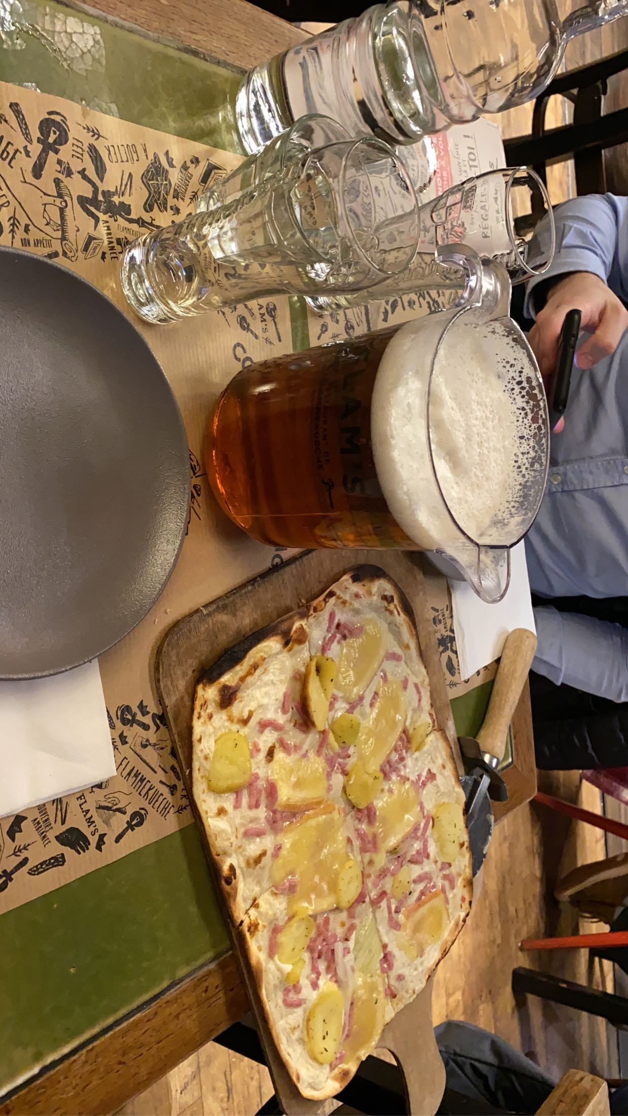 L’ambiance était super , Loïc notre serveur s’est merveilleusement occupé de nous il est formidable Super soirée flammekeuche